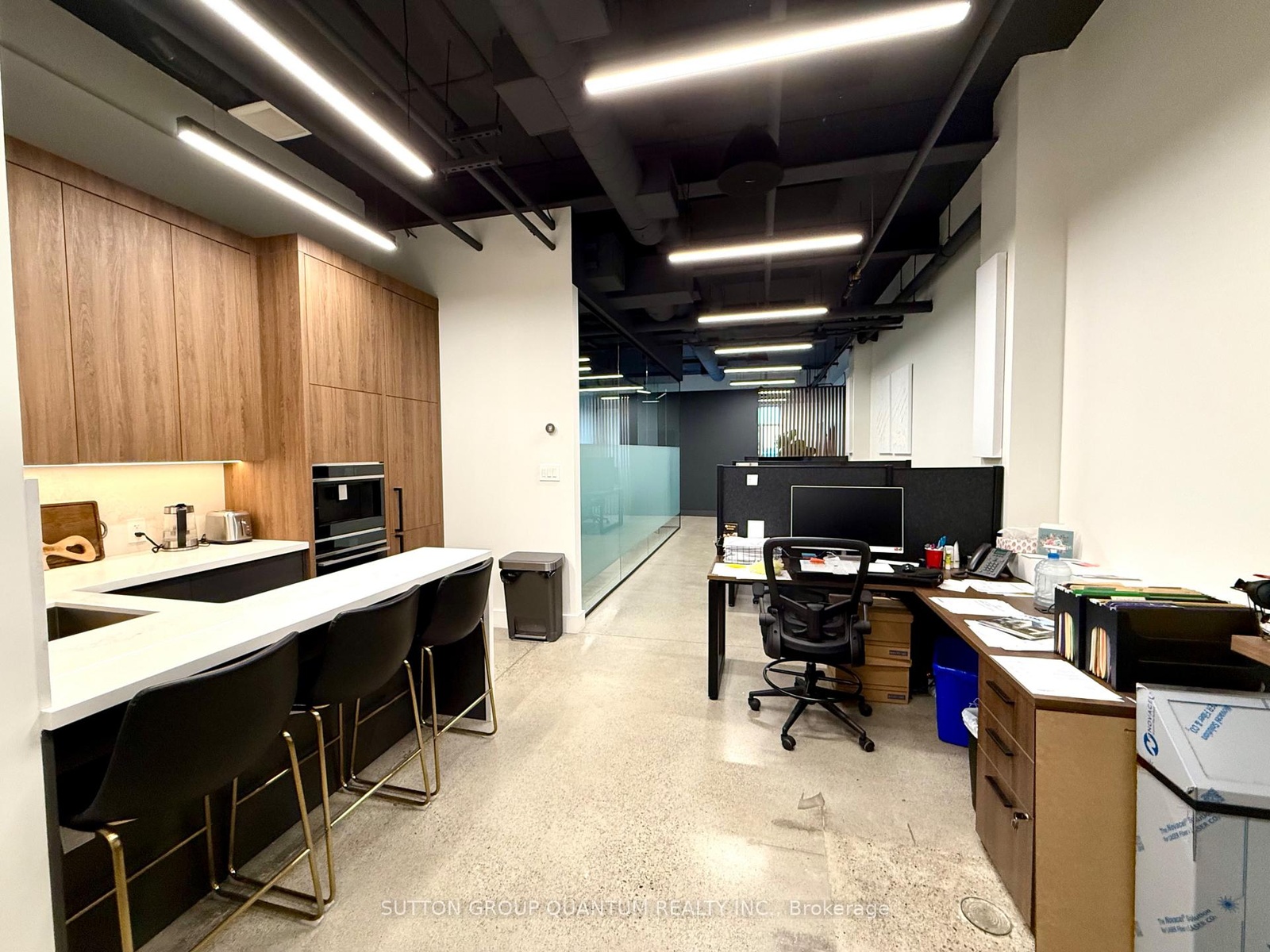 DescriptionHere is your opportunity to own a main-floor commercial unit in Oakville! This 1,430 sq. ft. office space is meticulously finished, maximizing every square inch for functionality and style. The layout features a welcoming reception area, a boardroom, open office desk space, a kitchen, a full bathroom, and a storage/mechanical room.Located in a modern plaza with ample parkingright at the Oakville/Burlington border. The property offers flexible zoning that accommodates institutions, banks, law firms, accountants, insurance firms, immigration services, tutorial centers, design and display centers, and other professional offices. (Non-retail, non-automotive, and non-food uses.)The building also provides shared access to a 416 sq. ft. boardroom, a common kitchen, and washrooms. The unit itself comes equipped with an alarm system, security cameras and equipment, a built-in sound system, all electric light fixtures, a kitchen fridge, coffee maker, speed oven, dishwasher, HVAC equipment, and a tankless water heater.Burloak Marketplace development includes major anchors such as Food Basics and Shoppers Drug Mart, offering added convenience and visibility. Plus ample parking for staff and clients!Amenities- Available
