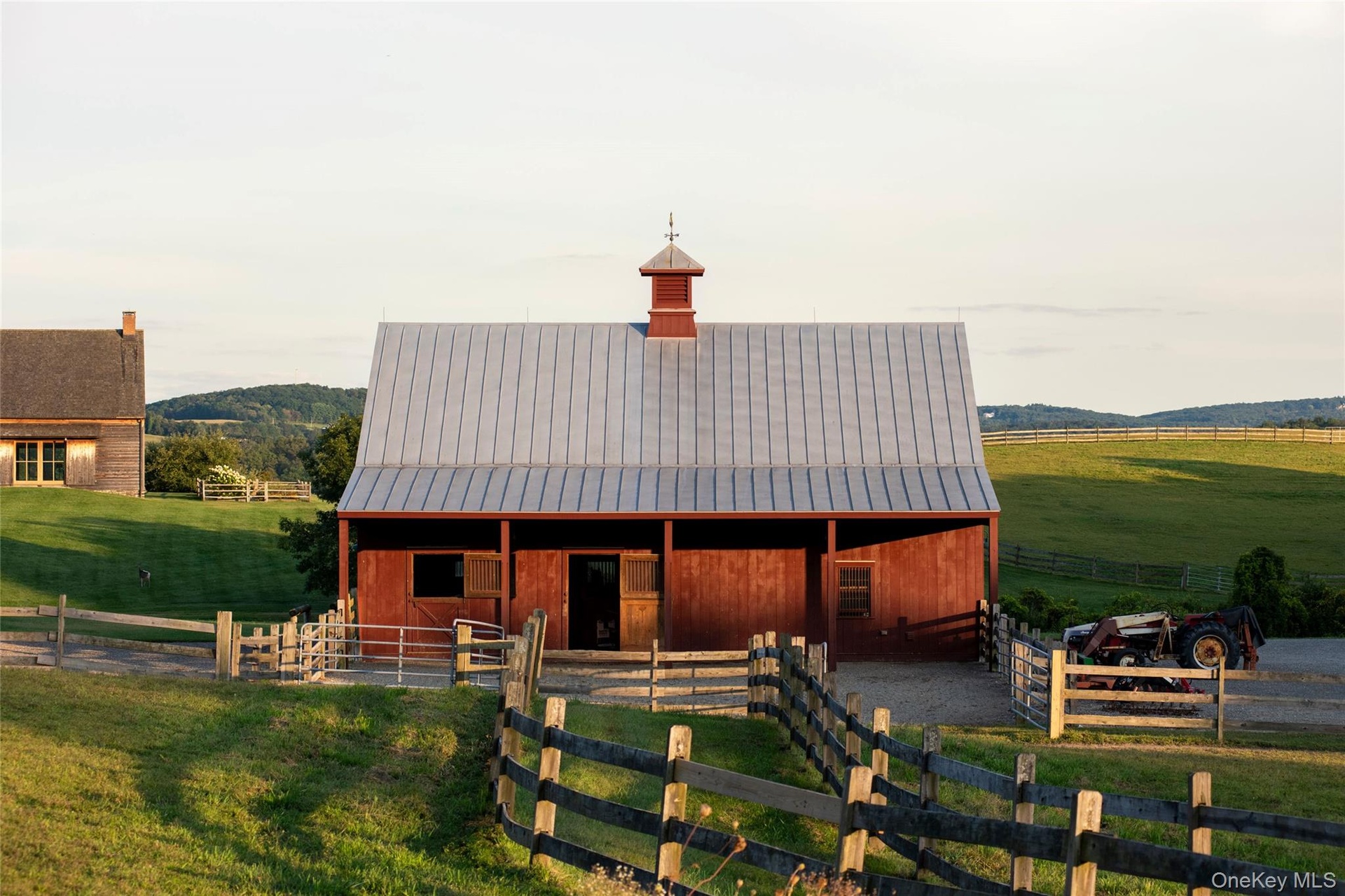 Set among the beautiful rolling hills on 203 acres is this private estate that takes you back in time. The farm was built in 2008 around a c.1754 Dutch barn that was dismantled from upstate NY and transformed into an incredible great room with 34' soaring ceilings, a brick fireplace and two huge French doors to take in the view. Designed by Cynthia Filkoff with 6,340 square feet, the main house offers five bedrooms and three and one half baths. The home feels centuries old, with the wide board floors and plaster walls throughout, while providing the modern conveniences, like the geothermal heating and cooling system and the automatic generator. Every room is a piece of art and history; comfortable, primitive and functional. Adding to the list of amenities is a two-car garage with loft; three bedroom caretaker’s house; and equestrian facilities including a five stall barn, equipment barn, outdoor riding ring and six paddocks. The expansive property has trails throughout and was placed in the Dutchess Land Conservancy for love of the land. A once in a lifetime opportunity to purchase this private country estate. Just minutes to Pine Plains, and two hours to NYC. Additional Information: Amenities:Soaking Tub,ParkingFeatures:2 Car Detached,