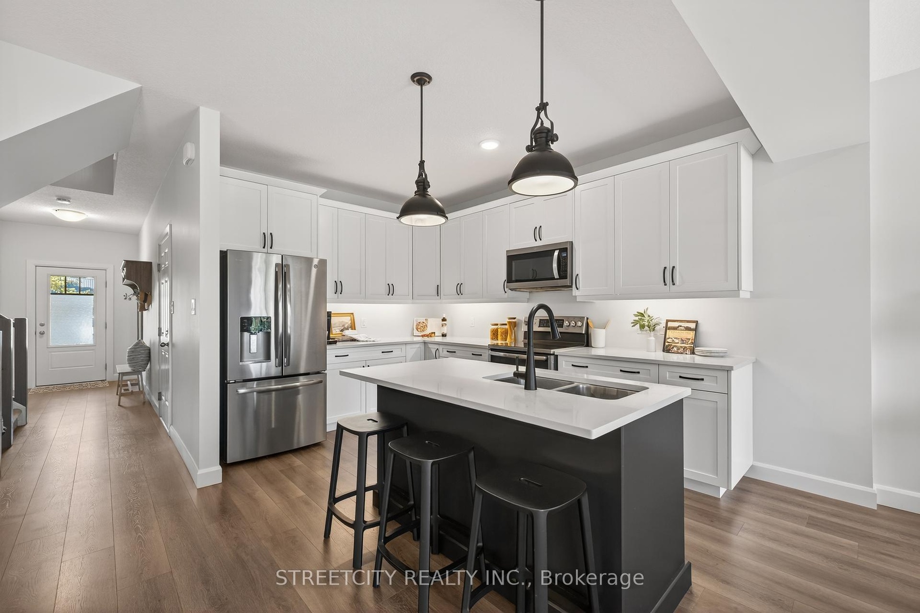 DescriptionWelcome to Unit 37-2491 Tokala Trail a spectacular pond-view condo that backs onto water in sought-after North London. Offering 3 bedrooms plus an office nook, 2.5 bathrooms, and a finished lower level, this home is designed for both comfort and style. Overlooking a beautiful pond, the property provides rare privacy and a natural backdrop right in the city, with the added benefit of being directly across from visitor parking. The main floors open-concept layout is perfect for modern living, anchored by a stunning fireplace that creates a warm, inviting atmosphere. Upstairs, a versatile loft makes the ideal home office, study space, or creative retreat all framed by peaceful pond views. The kitchen is a true centerpiece, featuring timeless white cabinetry, a bold black island, and elegant quartz countertops. The finished basement expands your living space with endless possibilities from a media room to a home gym or a private getaway. This home is a true show stopper, combining elegance, privacy, and natural beauty with an unbeatable North London location. Don't miss the opportunity to make it yours!Amenities- Auto Garage Door Remote