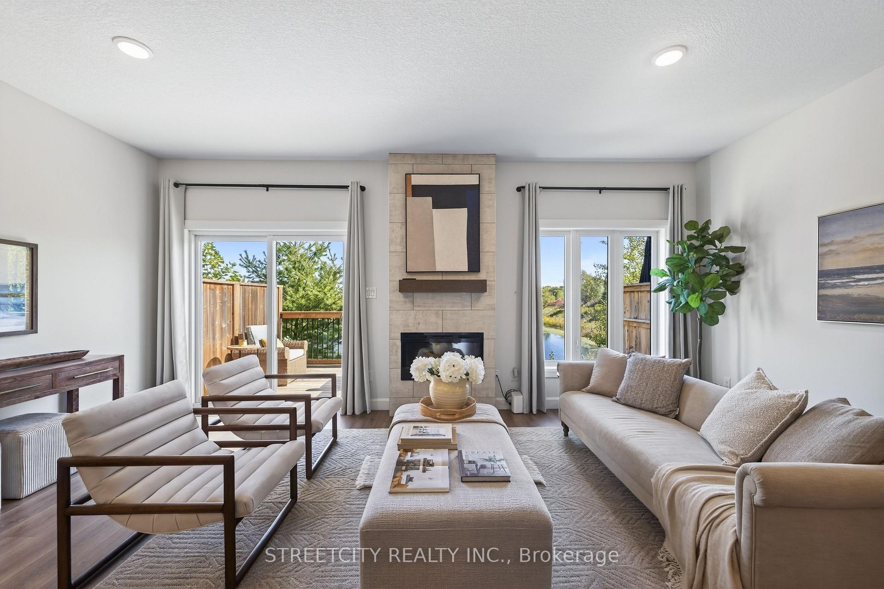 Welcome to Unit 37-2491 Tokala Trail a spectacular pond-view condo that backs onto water in sought-after North London. Offering 3 bedrooms plus an office nook, 2.5 bathrooms, and a finished lower level, this home is designed for both comfort and style. Overlooking a beautiful pond, the property provides rare privacy and a natural backdrop right in the city, with the added benefit of being directly across from visitor parking. The main floors open-concept layout is perfect for modern living, anchored by a stunning fireplace that creates a warm, inviting atmosphere. Upstairs, a versatile loft makes the ideal home office, study space, or creative retreat all framed by peaceful pond views. The kitchen is a true centerpiece, featuring timeless white cabinetry, a bold black island, and elegant quartz countertops. The finished basement expands your living space with endless possibilities from a media room to a home gym or a private getaway. This home is a true show stopper, combining elegance, privacy, and natural beauty with an unbeatable North London location. Don't miss the opportunity to make it yours!