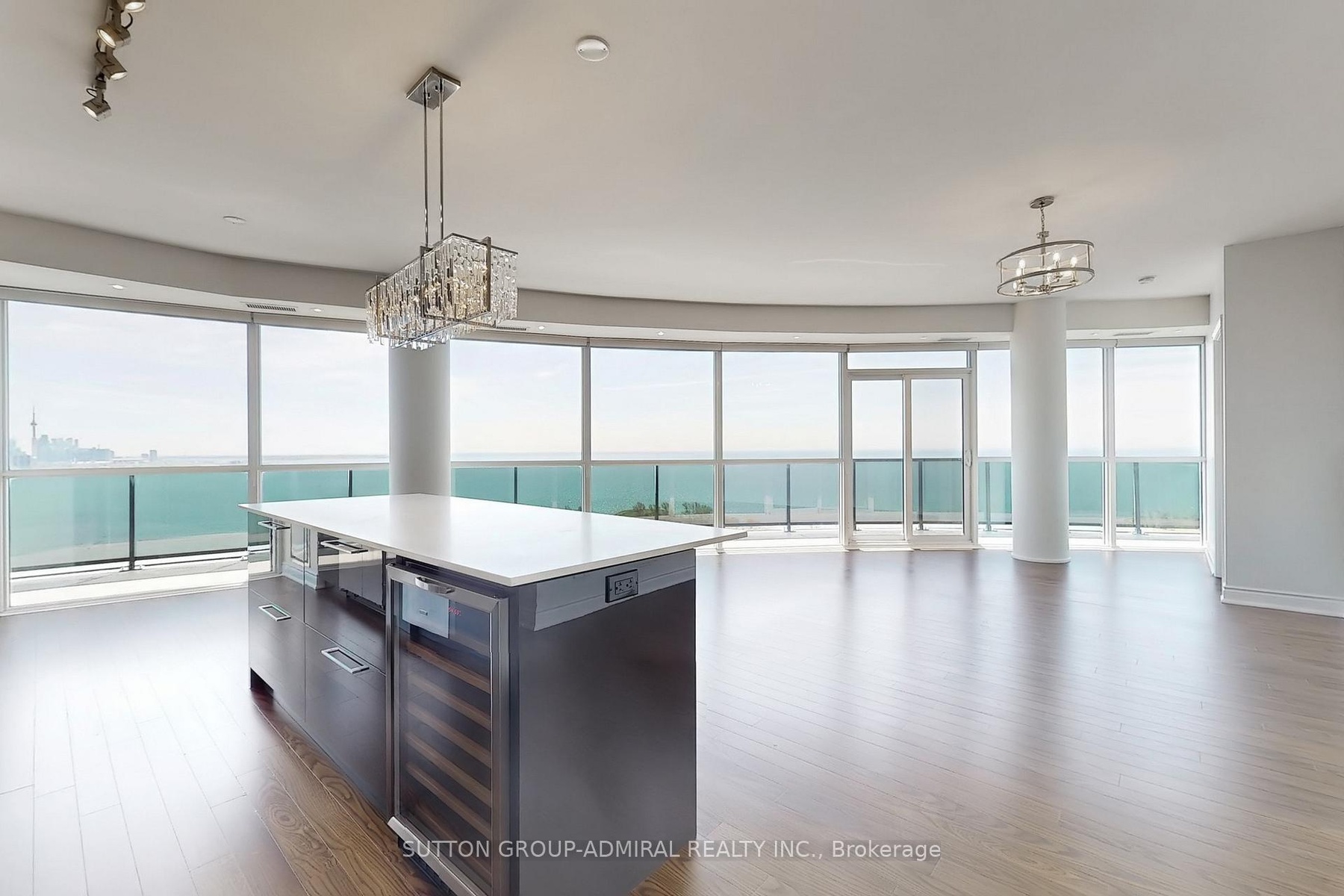 Located at Toronto's prestigious Humber Bay Shores waterfront community!This suite offers a massive 1,650 Sq.ft. of living space (1405 interior + 245 exterior) This large 2 bedroom plus den features Unobstructed Panoramic 180 Degree views of the Lake, parks, the city and downtown. Featuring a Full size kitchen, full size ensuite laundry room, an extra large locker and plenty of closet space, you wont have any trouble fitting in here. Convenient parking spot close to the elevator and prepped to instal an EV charger. Wake up and watch the sun rise from your huge 245 sq.ft wrap around balcony with 3 seperate walkouts!