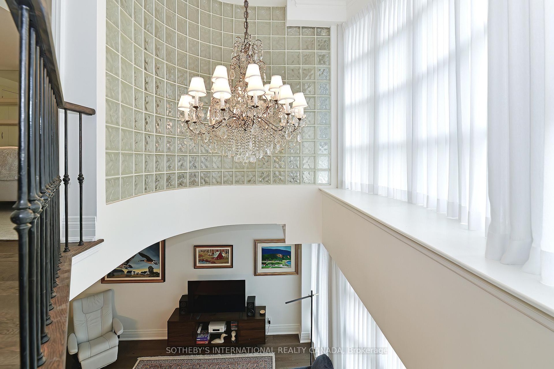 Chic and sophisticated 2-storey condo/loft; 1276sf of luxurious living space; terrific floor plan; renovated - new hardwood floors; staircase refinished; all marble has been refinished throughout, new drapes and remote control blinds; new top-quality broadloom in bedroom; large rooms; kitchen has gas cooking; stainless steel appliances; overlooks living/dining room combo; spiral staircase to a bright and spacious den (fits a pull out couch or Murphy bed); master suite has an extra-large walk-in closet as well as a double, huge ensuite with whirlpool tub and separate shower; lots of storage; locker; parking; great building amenities including indoor pool; concierge services; steps to Yonge subway, shops, restaurants, entertainment; ravine system.