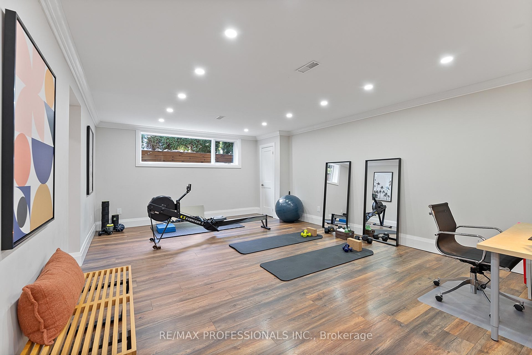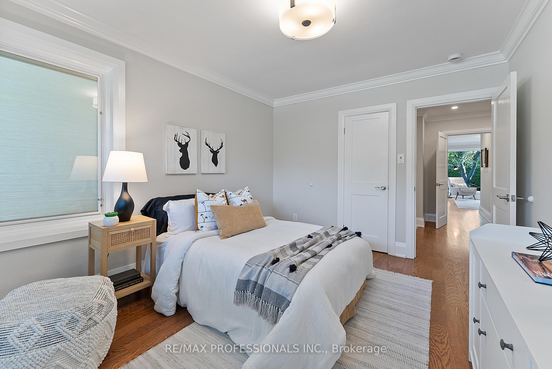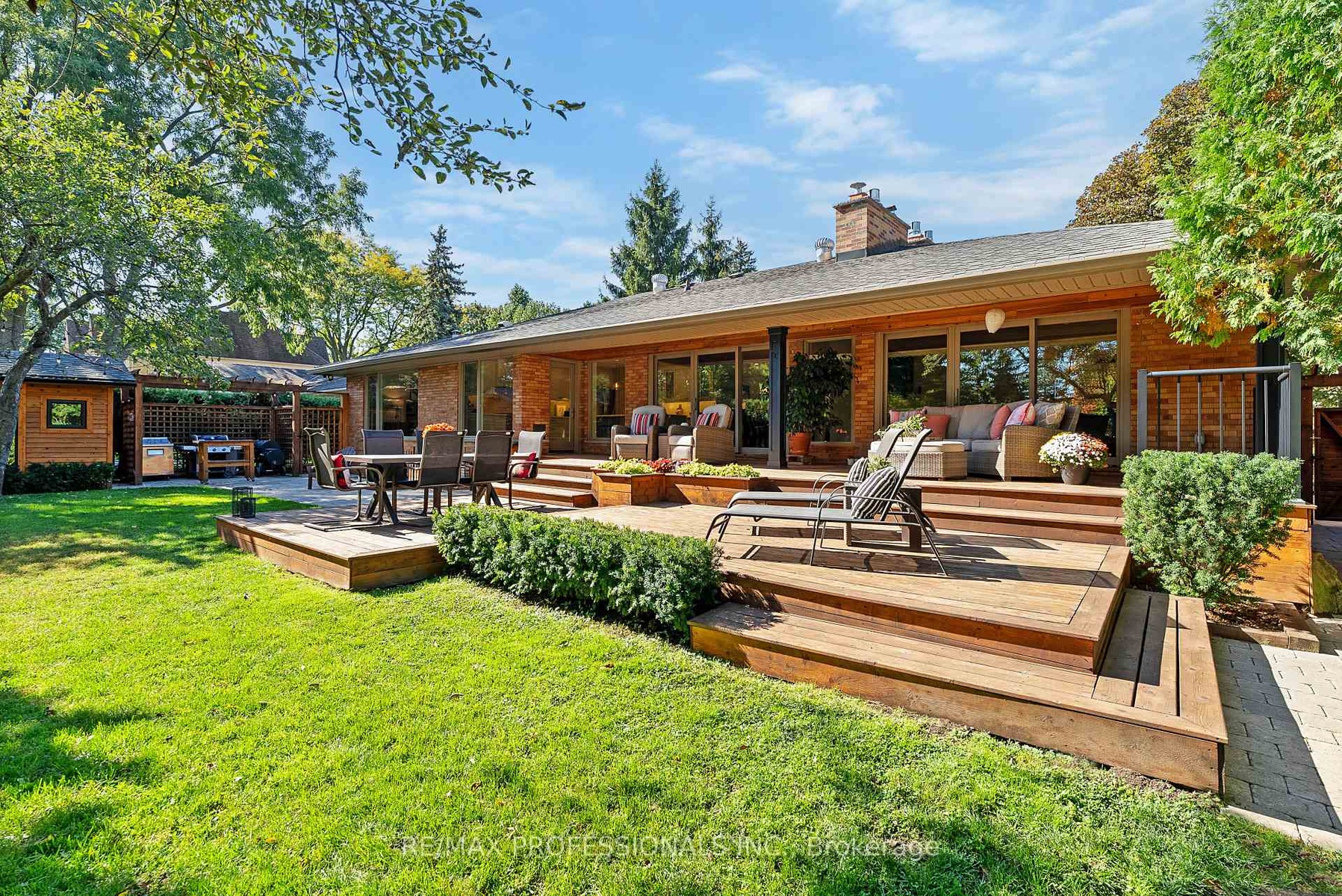 DescriptionWelcome to 19 Palace Arch Drive, a turnkey ranch bungalow in prestigious Princess Anne Manor, situated on a premium 80 x 137 lot backing onto the clubhouse of renowned St. Georges Golf Club. Offering over 4,456 sf of finished living space (2,346 sf above grade), this home has been meticulously renovated with high-end finishes. The main level features a foyer with heated floors & multiple closets, grand living room with a gas fireplace, pot lights, crown moulding and west-facing front yard views, dining room with floor-to-ceiling windows with backyard vistas and a walkout to the deck, open concept chefs kitchen with quartz counters, custom cabinets, oversized island & premium appliances, rare family room with gas fireplace, pot lights, hardwood floors, huge windows and a walkout, serene primary suite with wall-to-wall closets, picture window overlooking the backyard and a lux 4-piece ensuite with heated floors, soaker tub and large glass shower, 2 additional well-appointed bedrooms & a convenient powder room. Expansive, finished lower level with a versatile gym/office, massive rec room with chic gas fireplace & German wide-plank laminate floor, modern 3-piece bath with heated floor, an additional bedroom, laundry room, wine room, walk-up to the backyard and ample storage. Private backyard oasis with superb 3-level cedar deck, interlocking patio, custom cedar sauna & shed, landscaped gardens, mature trees, a sweeping lawn and no rear neighbours! Double garage & private driveway- parking for 6+ cars. Brimming with updates- Pella windows, poplar trim & crown moulding, AC (2022), furnace & water heater (2017), roof & eaves (2017), smart thermostat, 200 AMP electrical, new fireplaces, landscaping &more! Steps to St. Georges Golf Club, Princess Anne Park, near top schools- St. Georges, John G Althouse, Richview CI & St. Gregory and shopping at Thorncrest Plaza & Humbertown. Easy access to HWYs & TTC. A rare, move-in ready home in one of Etobicokes most desirable enclaves!Virtual Tour: https://my.matterport.com/show/?m=RYsUqjZ8Na2&brand=0Amenities- Carpet Free