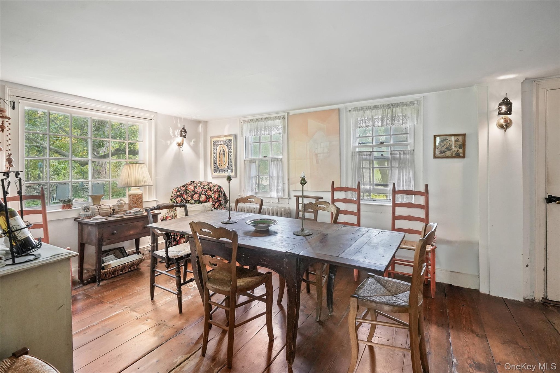 Hiram Halle Restoration. Charming Mid-19th Century Antique near the historic hamlet owned by the same family for years. Restored by noted philanthropist Hiram Halle in the 1930’s. Fabulous antique features carefully preserved marrying the past with Halle’s vision. Sun-filled spaces with wide plank floors, period millwork, exposed beams and a signature bow window. Living Room and Dining Room with fireplaces. Vintage Kitchen with antique sink and fireplace. Warm and inviting Family Room with door to Office-perfect for remote work. First Floor Bedroom Suite with door to Screened Porch. Four additional Bedrooms include a Primary Bedroom with private Bath. A peaceful oasis surrounded by Pound Ridge Land Conservancy. Over three acres close to the Halle Ravine. Former underground garage, used by Halle’s chauffeur, tucked away in a hill. Picture book property, lined by old stone walls, with level lawns, mature trees and flowering shrubs. Easy access to the library, the elementary school and the town park. First time offered in 65 years!