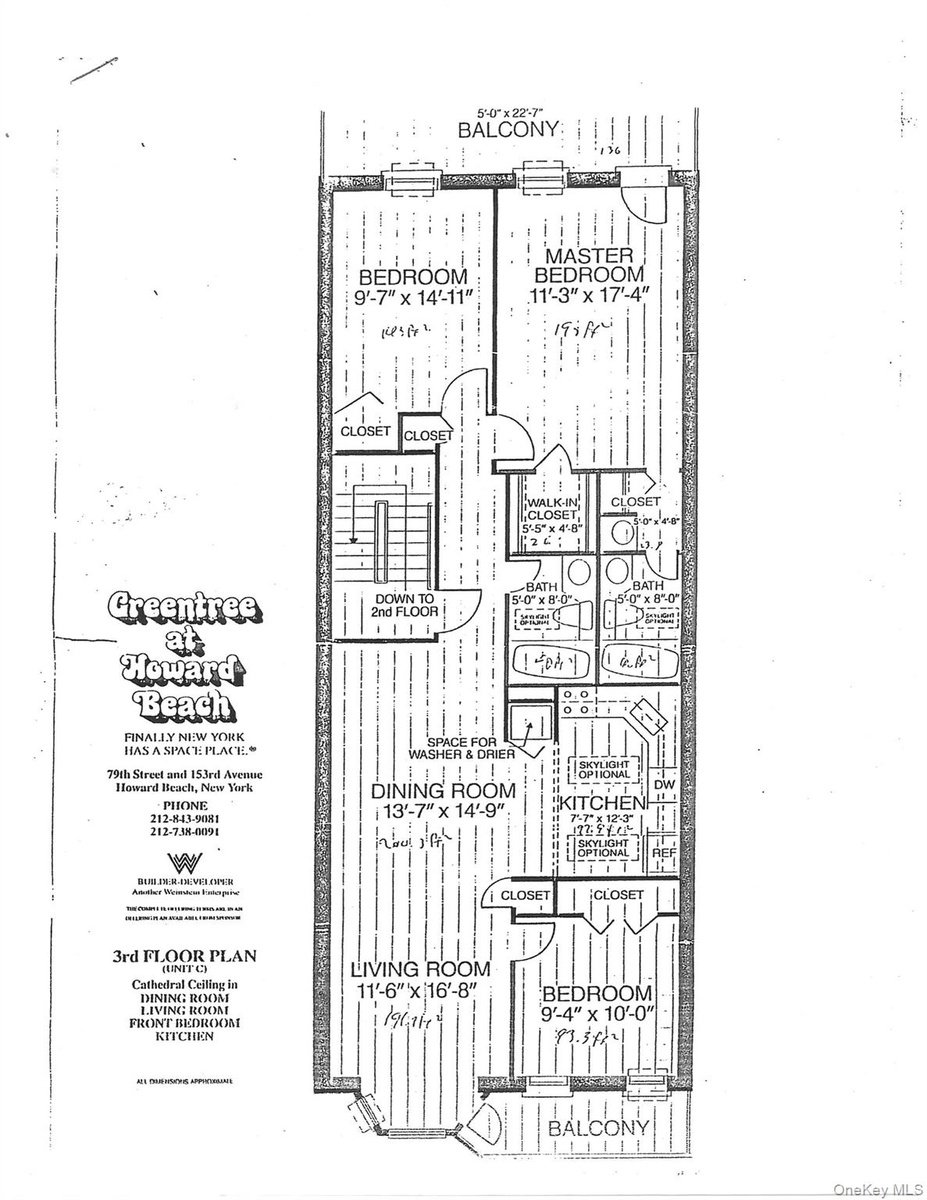 This spacious and sun-filled 3-bedroom, 2-bath condo located on the 3rd floor of a well-maintained walk-up building boasts unique soaring cathedral ceilings and skylights that flood the space with natural light. Enjoy the open living and dining area, perfect for entertaining, with seamless access to not one, but two private balconies—ideal for morning coffee or evening relaxation. The layout features three generously sized bedrooms, including a primary suite with its own full bath, and a second full bathroom for added convenience, washer and dryer off the kitchen, a private garage and driveway. This is a rare find, this condo combines modern comfort, style, and outdoor space in one inviting package.