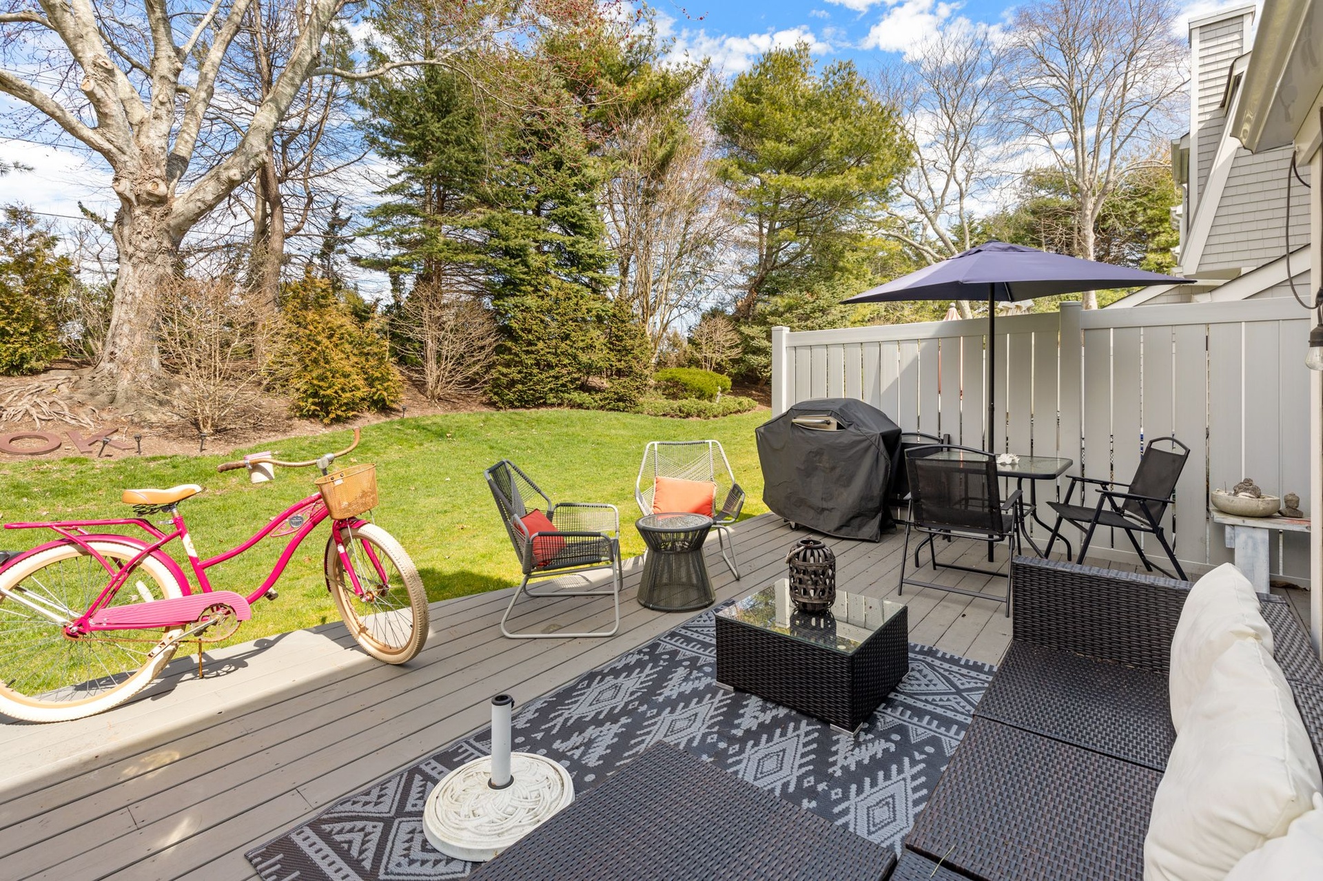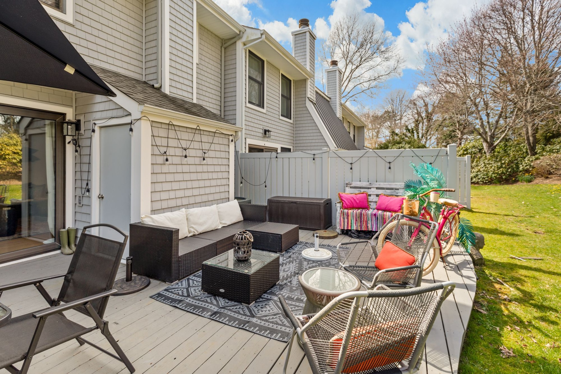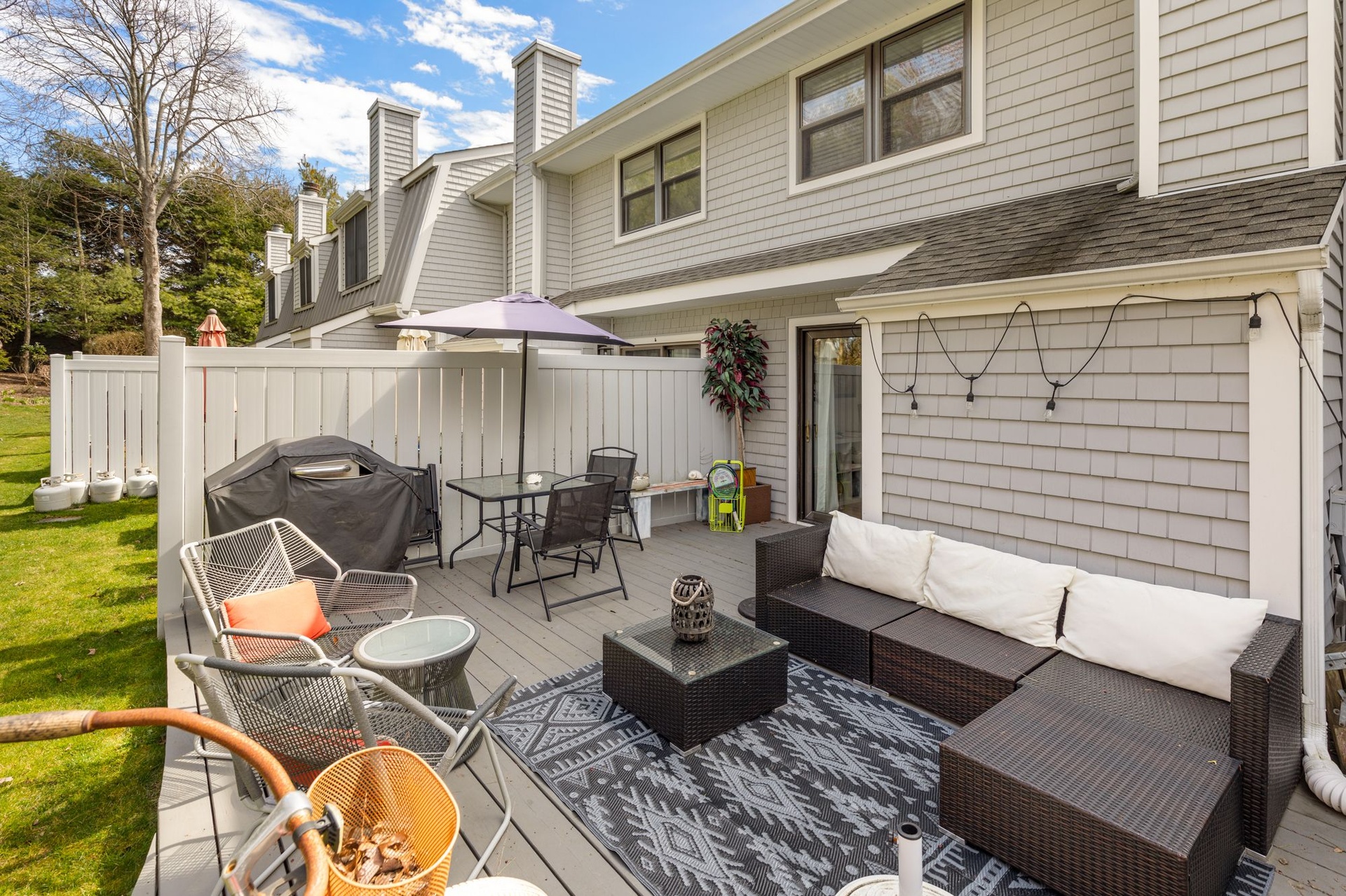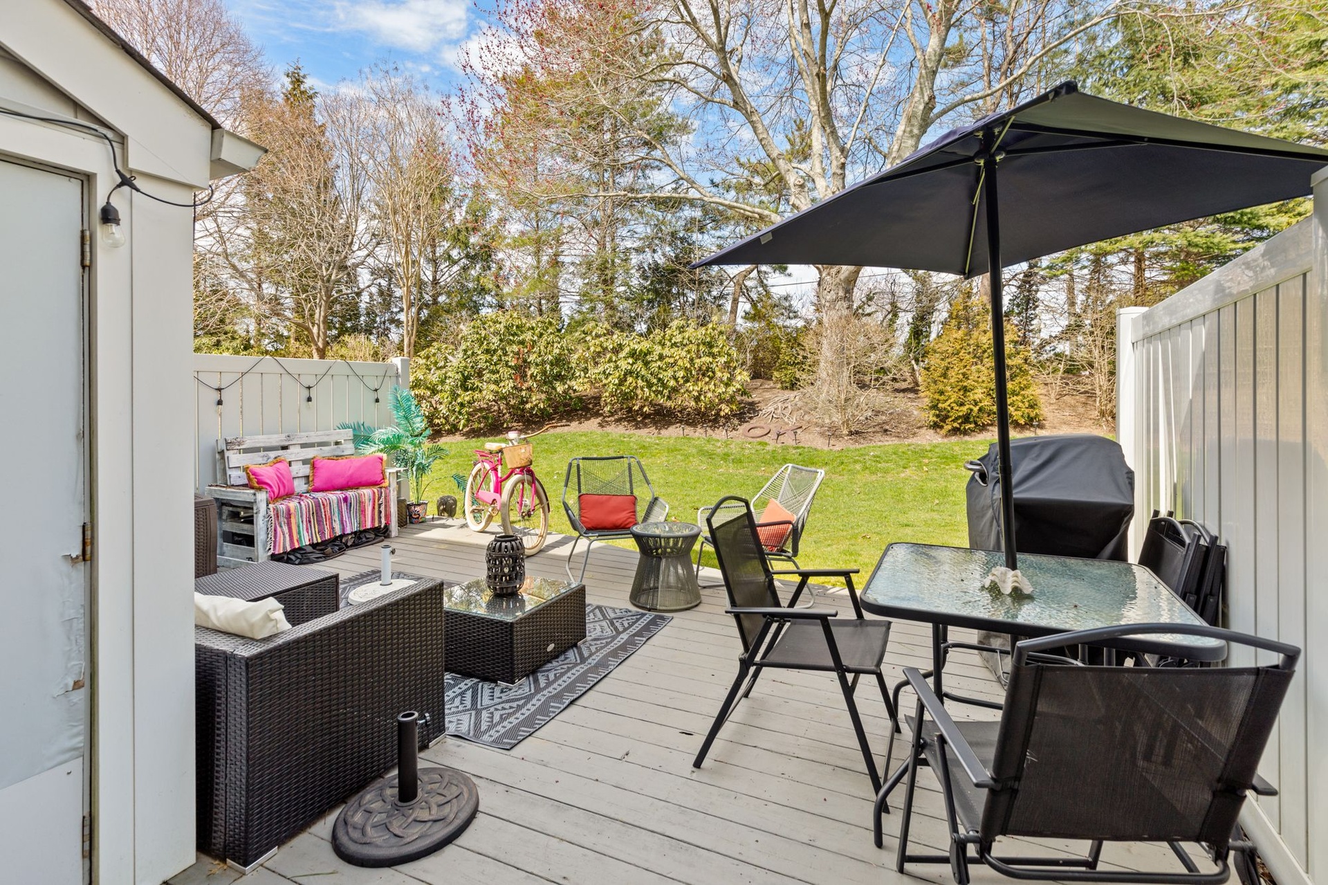 This lovely, fresh and fun condo is located in the Southampton Commons! Featuring 2 bedrooms, AC, wifi ,Cable TV in the master and living room, eat in kitchen, lovely outdoor patio, 2 bikes for guests, and all linens and towels provided! Enjoy time in the off season this year - utilities included in price!Amenities- Bathroom on First Floor