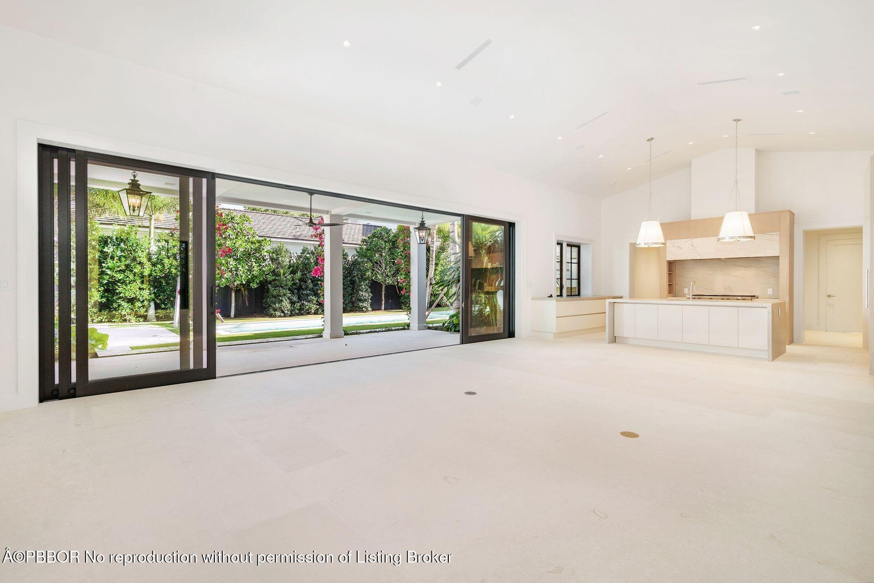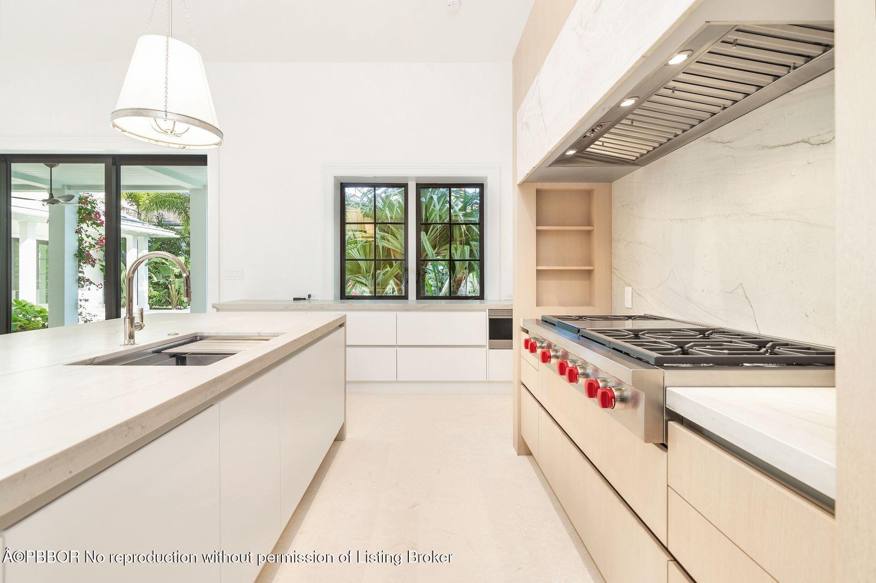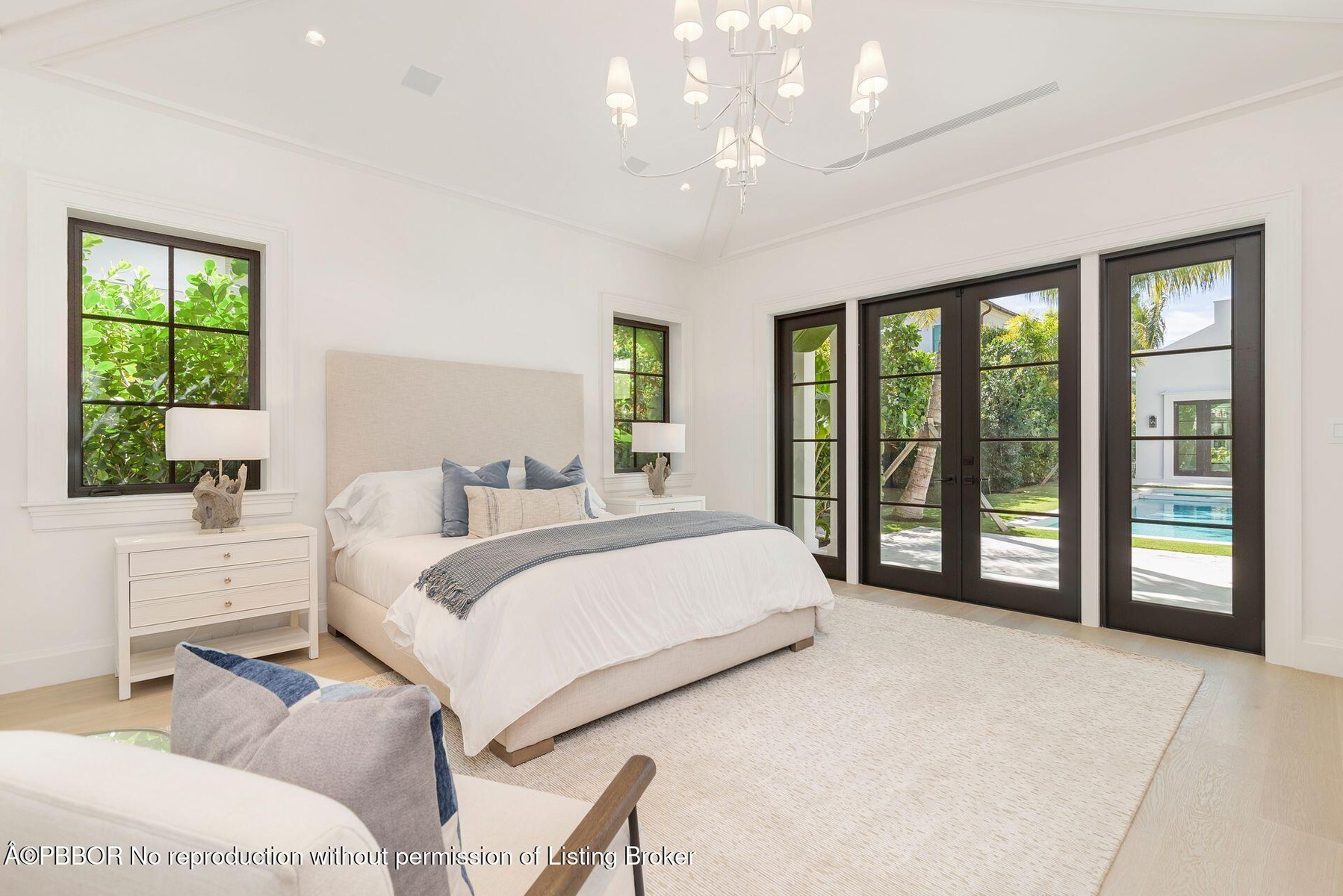 Situated on an oversized 13,425 sq. foot lot with a private back alley entrance to the properties three car garage, rests the stunning contemporary new construction home featuring 6 bedrooms, 7 full bathrooms and two 1/2 bathrooms. Architecture by Dailey Janssen, designed by Hive Palm Beach and built by the Cury Group, this luxurious designer made home is turnkey. Hosting the best of the best, the kitchen incorporates a 48'' Wolf 8-burner gas range, a Bosch dishwasher, a Subzero fridge/freezer, and fixtures by Waterworks. Adjacent to the magnificent kitchen and great room is a thoughtful butler's pantry with quartzite countertops, an additional Bosch dishwasher and Subzero fridge & freezer drawers. This home incorporates two staircases each leading you to 2 separate guest bedrooms. Above the primary bedroom hosts 2 of the en-suite bedrooms while the other two guest bedrooms are uber private with a designated staircase above the living room overlooking the pool.