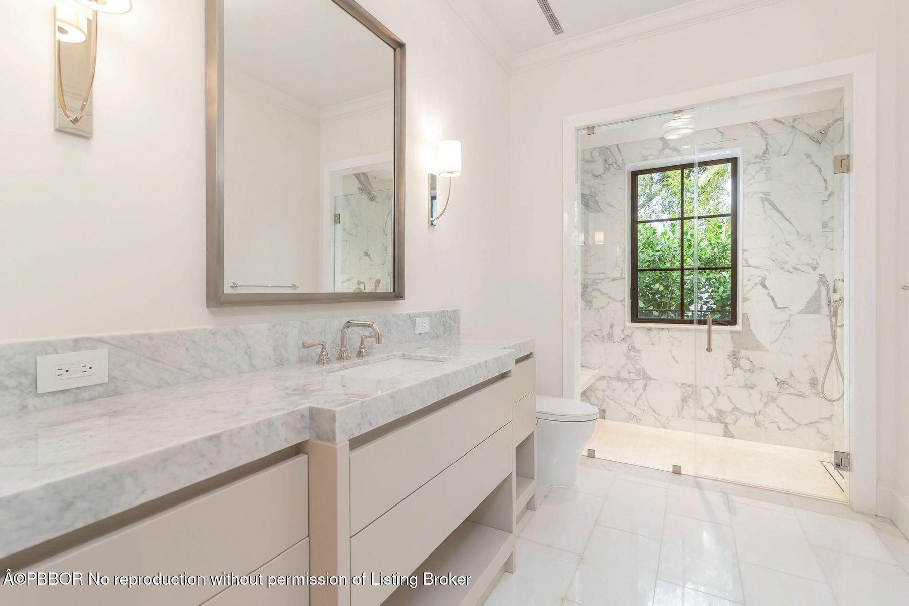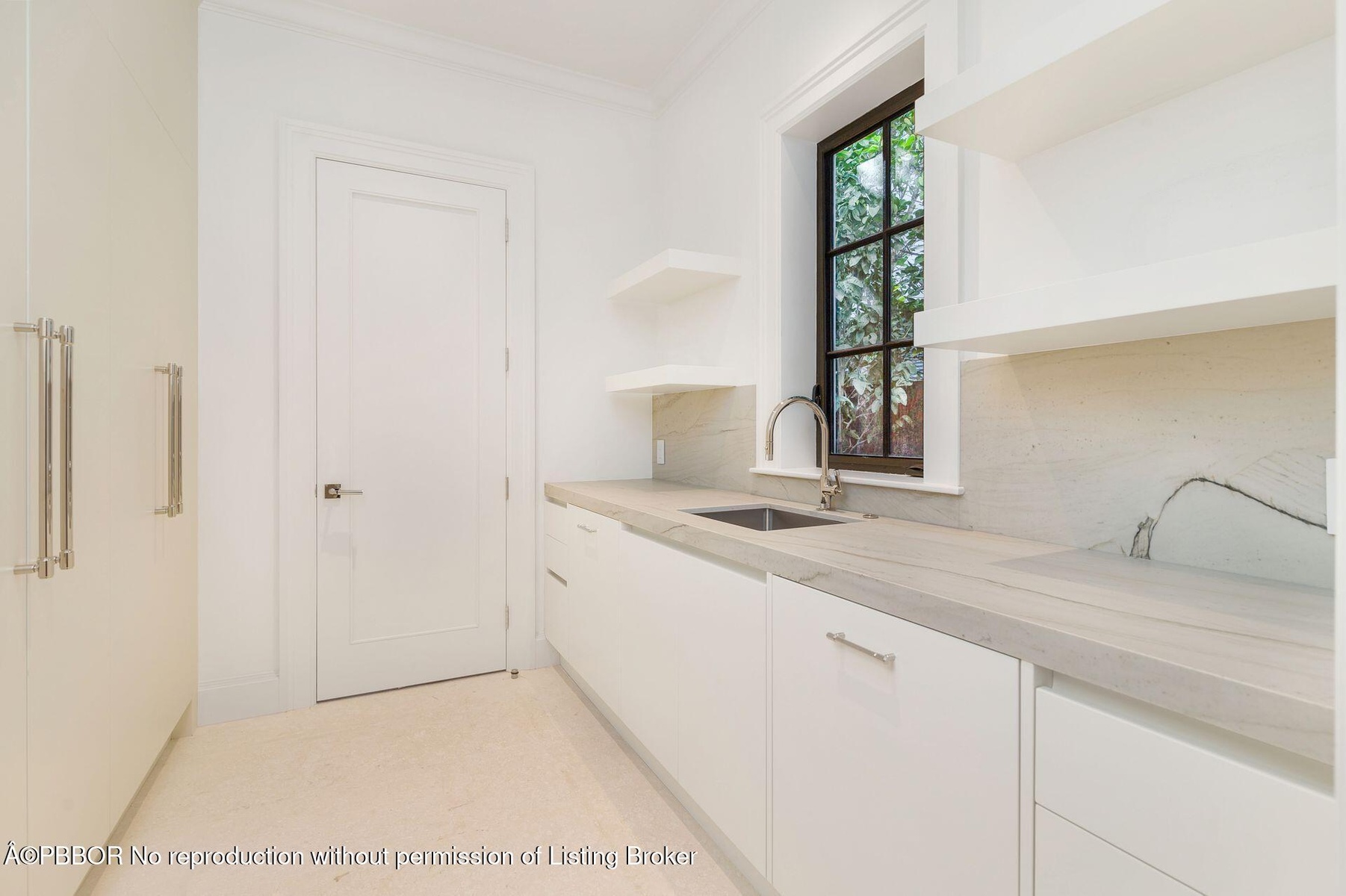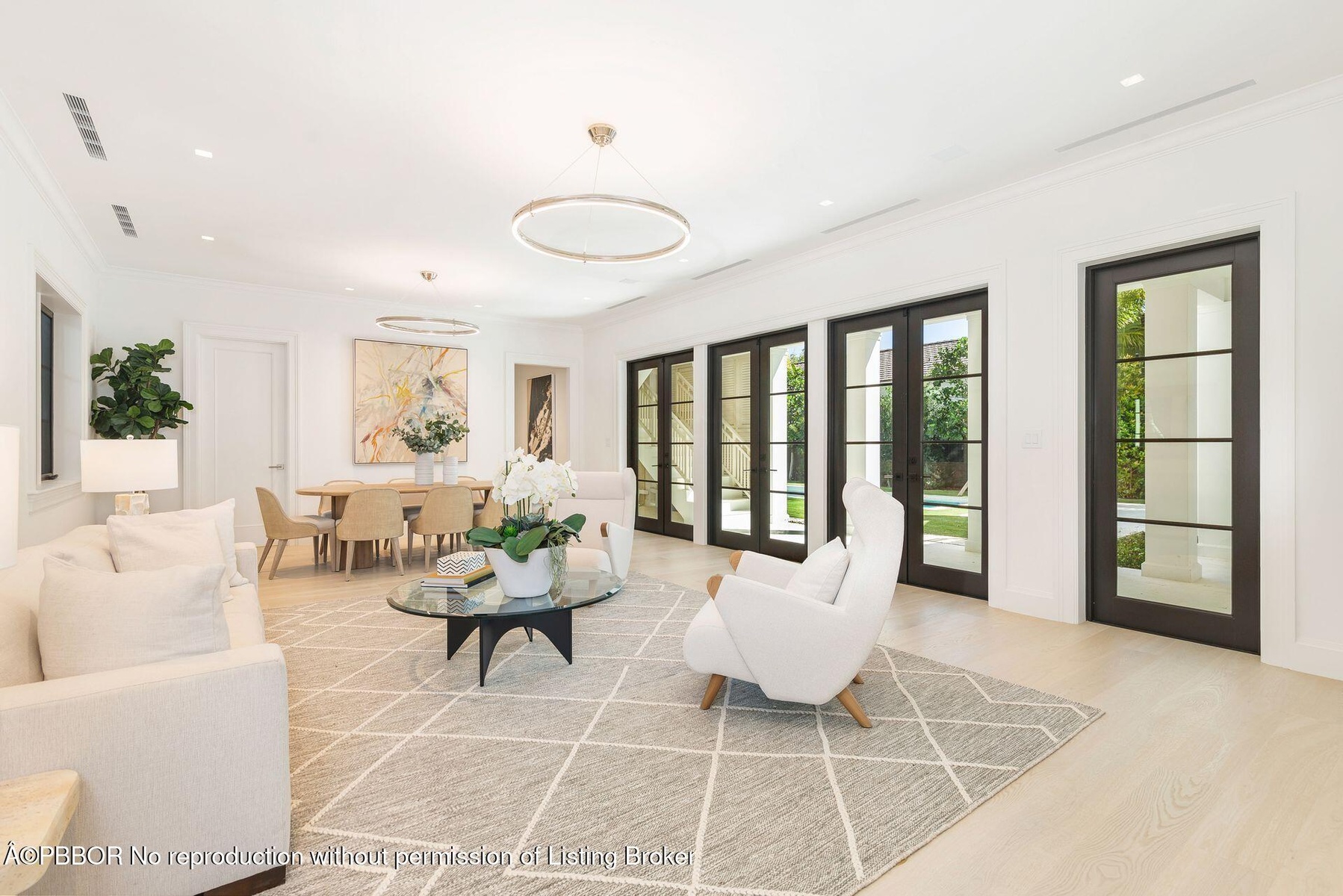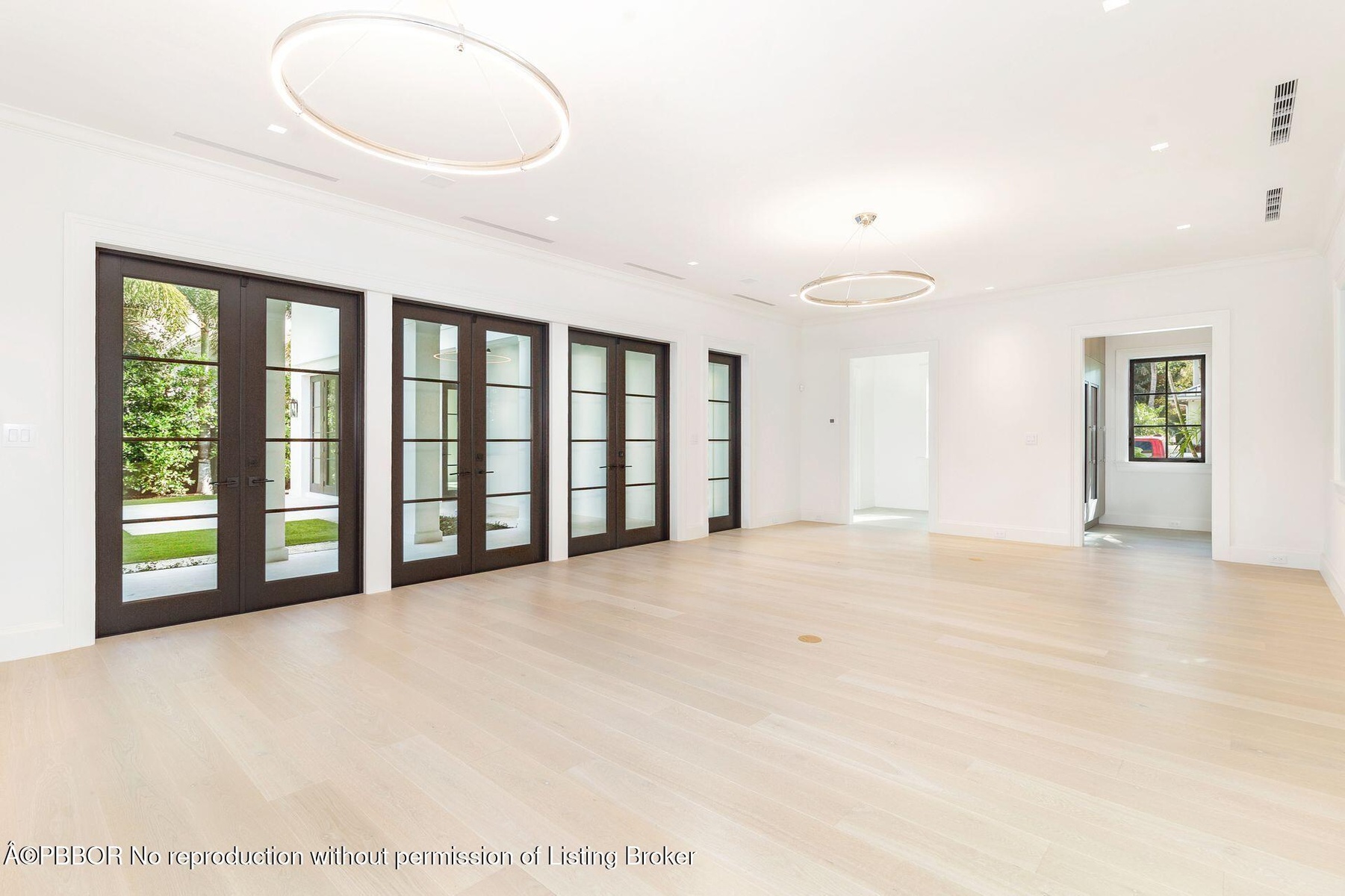 Situated on an oversized 13,425 sq. foot lot with a private back alley entrance to the properties three car garage, rests the stunning contemporary new construction home featuring 6 bedrooms, 7 full bathrooms and two 1/2 bathrooms. Architecture by Dailey Janssen, designed by Hive Palm Beach and built by the Cury Group, this luxurious designer made home is turnkey. Hosting the best of the best, the kitchen incorporates a 48'' Wolf 8-burner gas range, a Bosch dishwasher, a Subzero fridge/freezer, and fixtures by Waterworks. Adjacent to the magnificent kitchen and great room is a thoughtful butler's pantry with quartzite countertops, an additional Bosch dishwasher and Subzero fridge & freezer drawers. This home incorporates two staircases each leading you to 2 separate guest bedrooms. Above the primary bedroom hosts 2 of the en-suite bedrooms while the other two guest bedrooms are uber private with a designated staircase above the living room overlooking the pool.