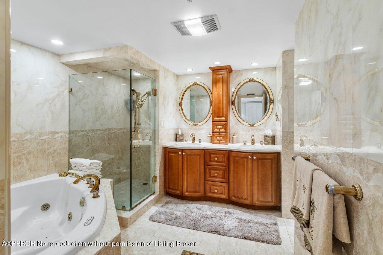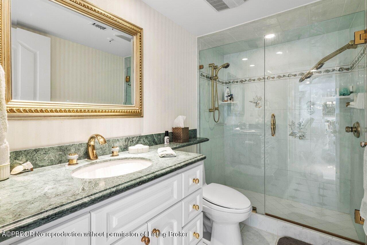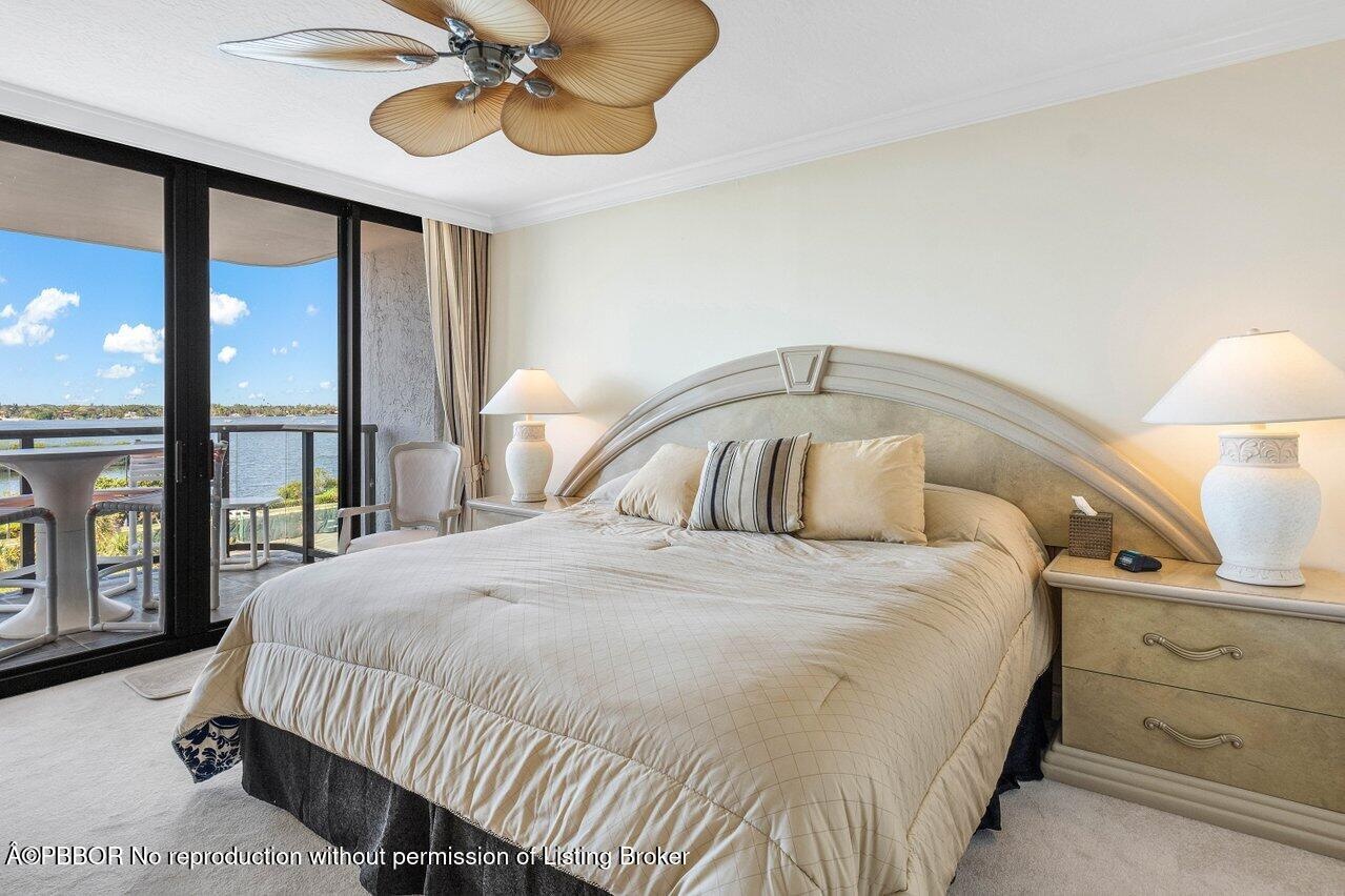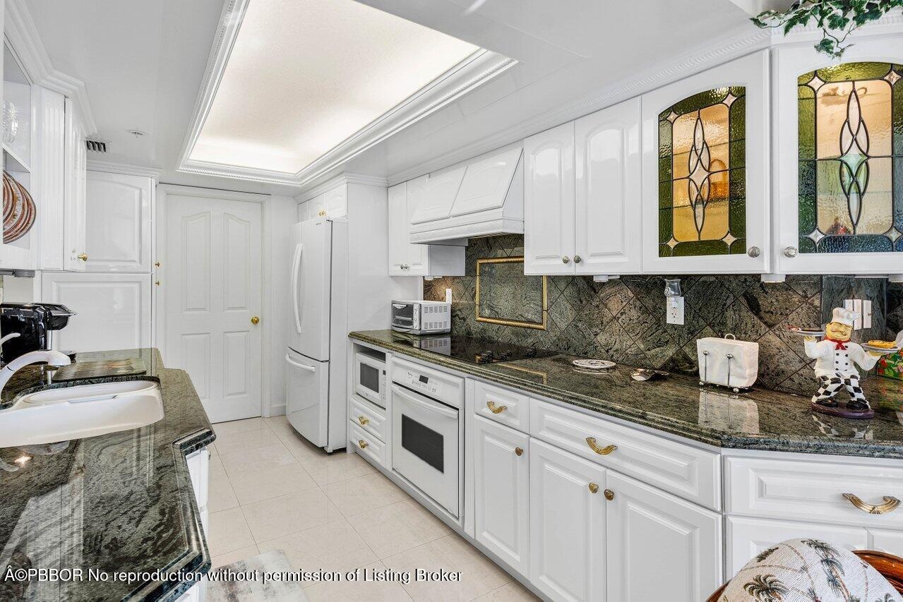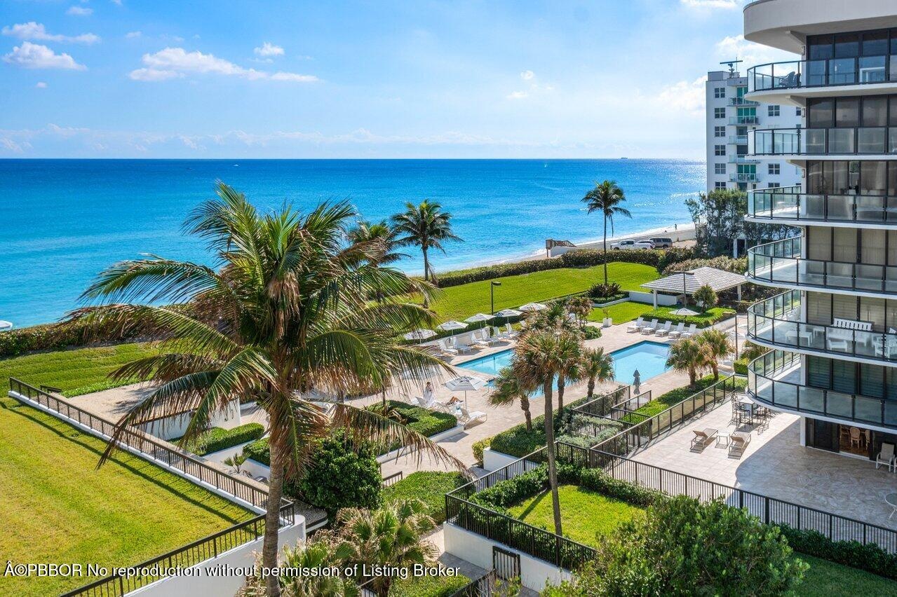 This elegant residence, says ''Palm Beach,'' and greets you with breathtaking views of the sunrise to sunset. Nestled on the 5th floor of the Halcyon's North Building, this spacious two-bedroom, two-bathroom floor plan boasts two glass balconies that offer stunning Southeast Ocean views and panoramic vistas of the Intracoastal. Step inside and you'll be enveloped in a meticulously maintained property. Hurricane-impact doors and glass ensure the safety, while a custom eat-in kitchen, a custom bar with beautiful back-lit etched accent glass, wainscoting walls, custom cabinetry, and attractive stonework add to the home's charm. The Halcyon, where this residence resides, offers a range of amenities to enhance your stay. Enjoy the convenience of 24/7 doormen, a resort-style pool area and beach, 2 Har-Tru tennis courts, a fitness center, storage, and garage parking.