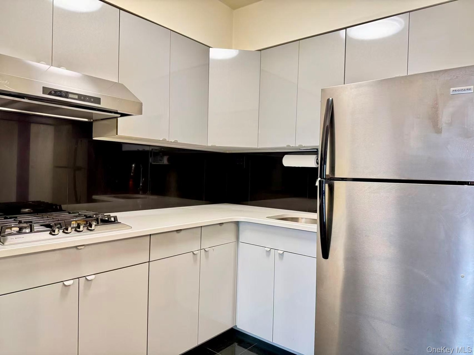 - Kitchen with appliances with stainless steel finishes, white cabinets, and modern cabinets