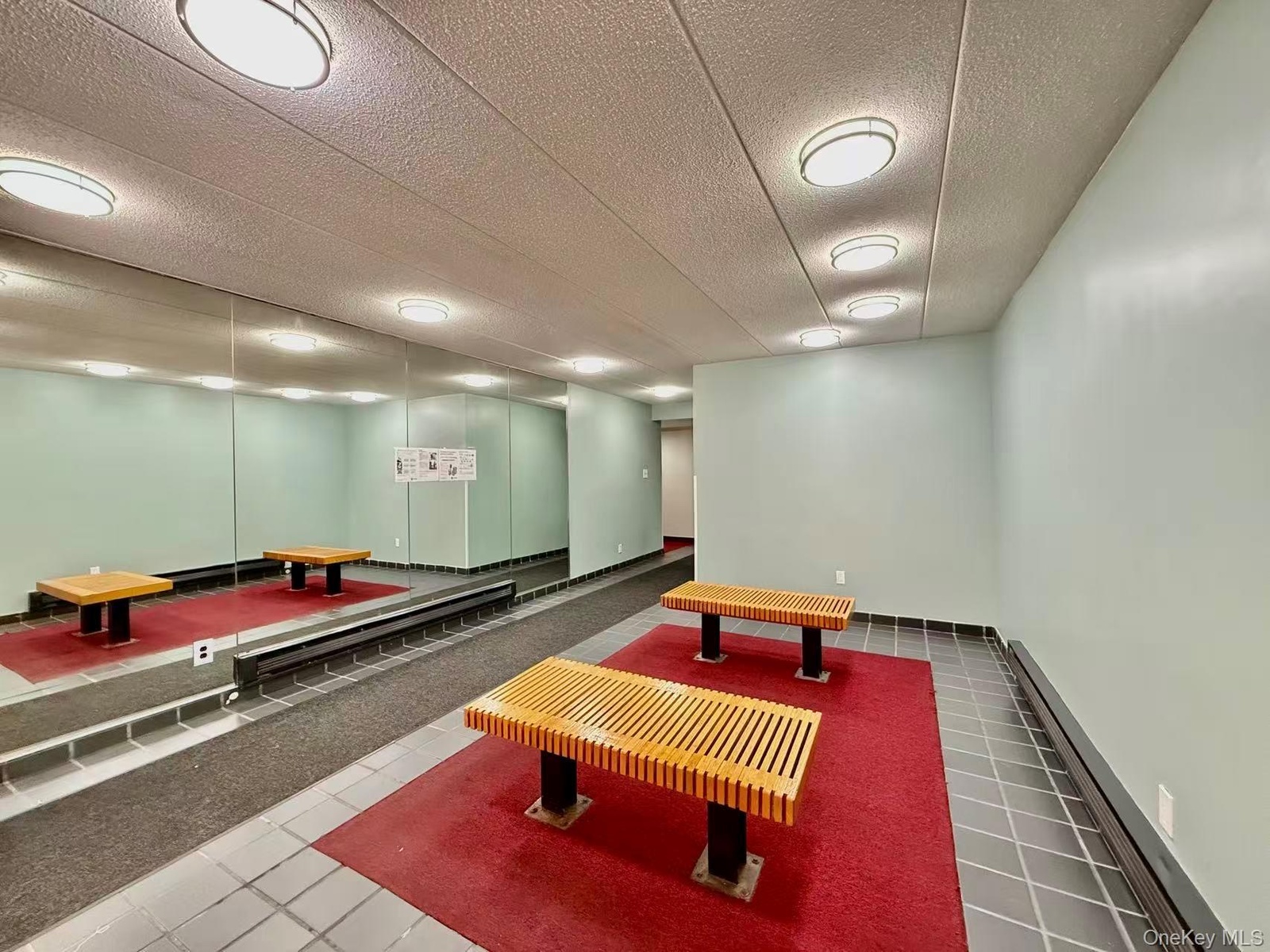 - Game room with a baseboard heating unit, a textured ceiling, and tile patterned floors