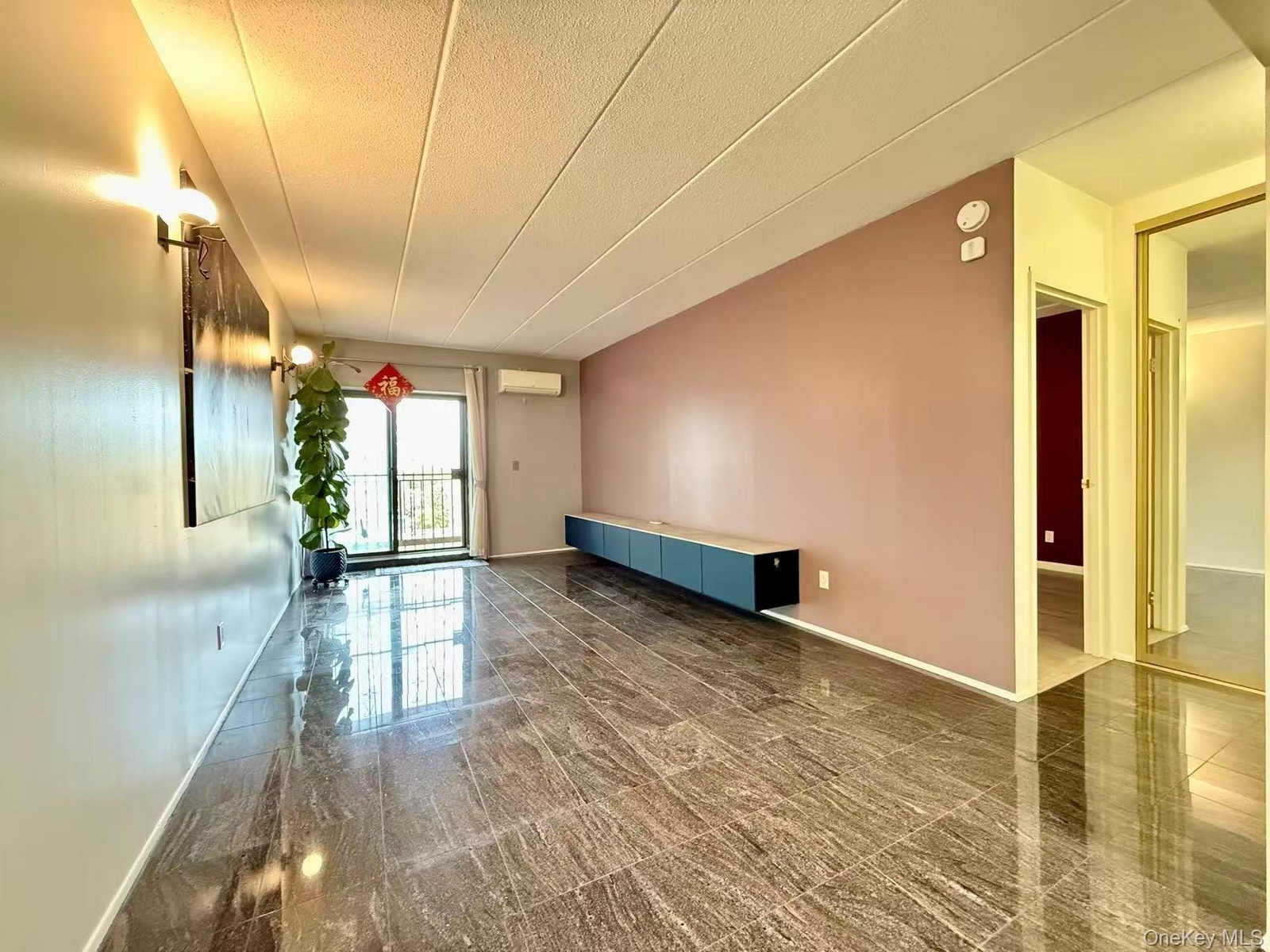 - Spare room with a textured ceiling and an AC wall unit