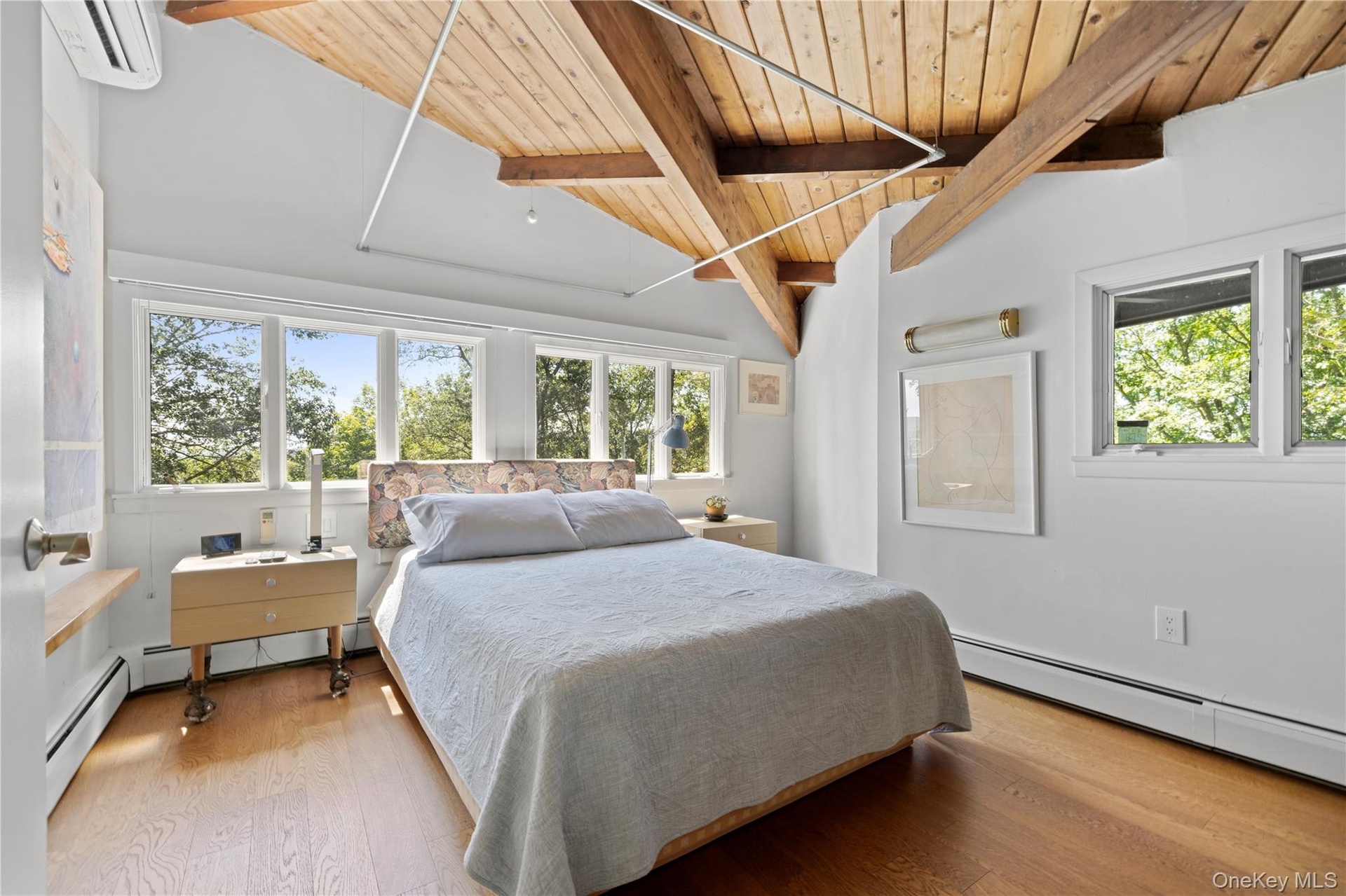 - Primary bathroom with wood ceiling, soaking tub and shower