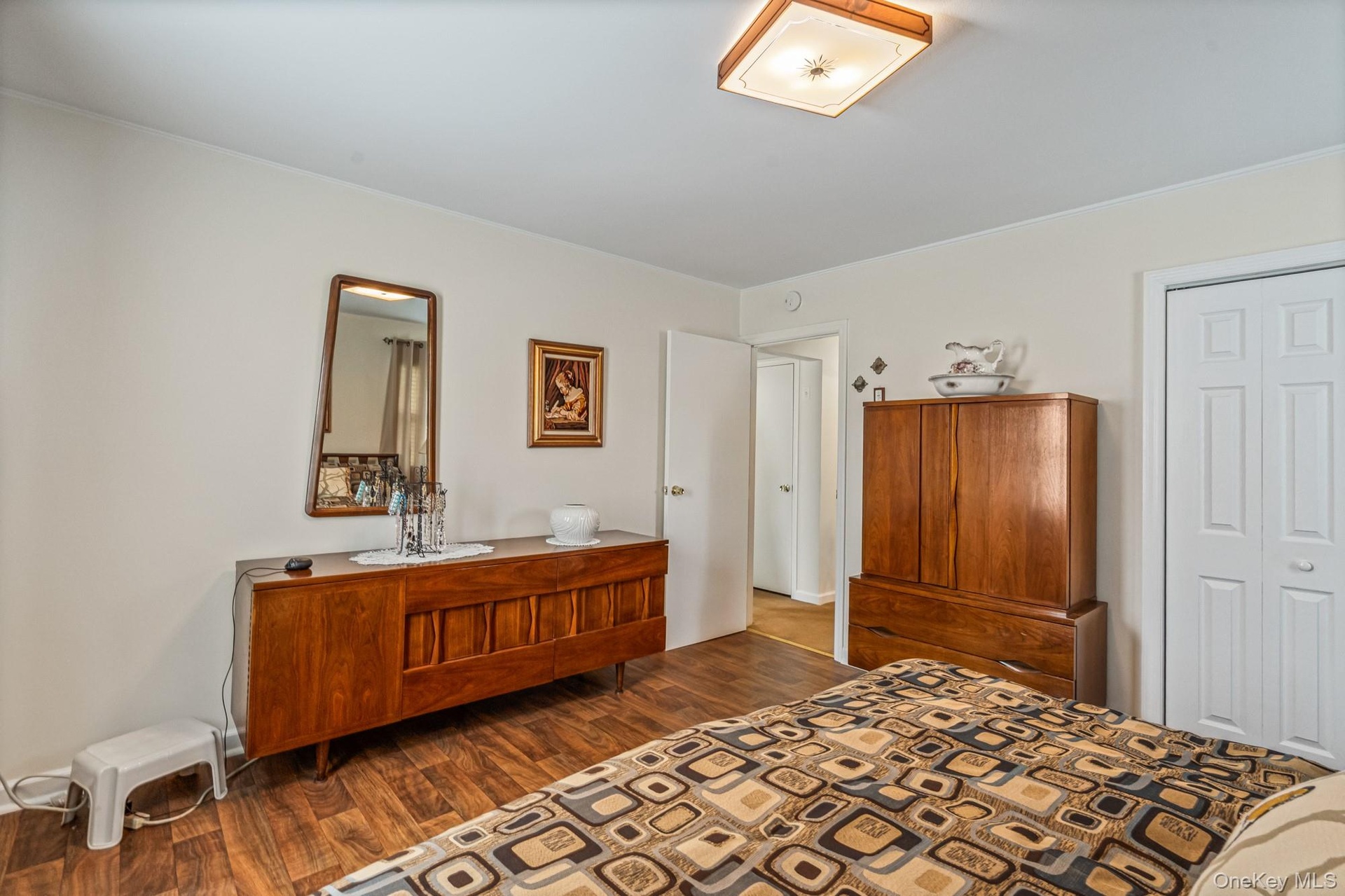 - Bedroom with dark wood-type flooring and a wall mounted AC