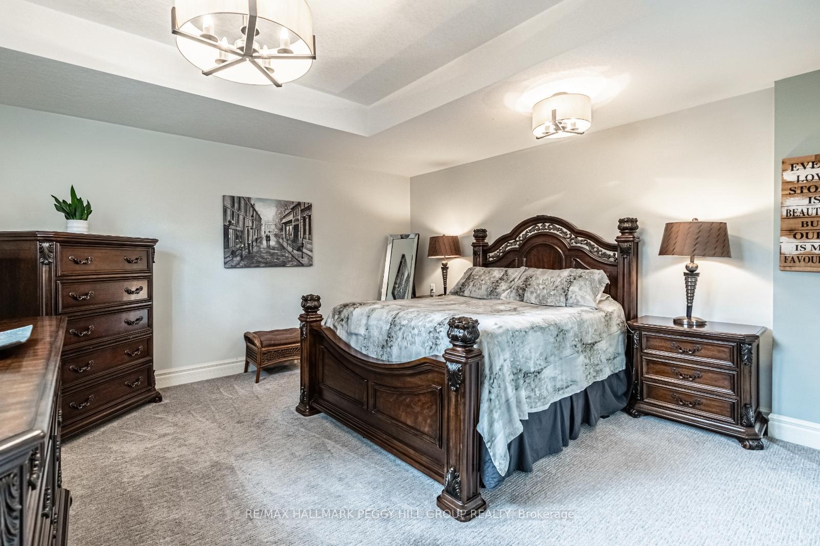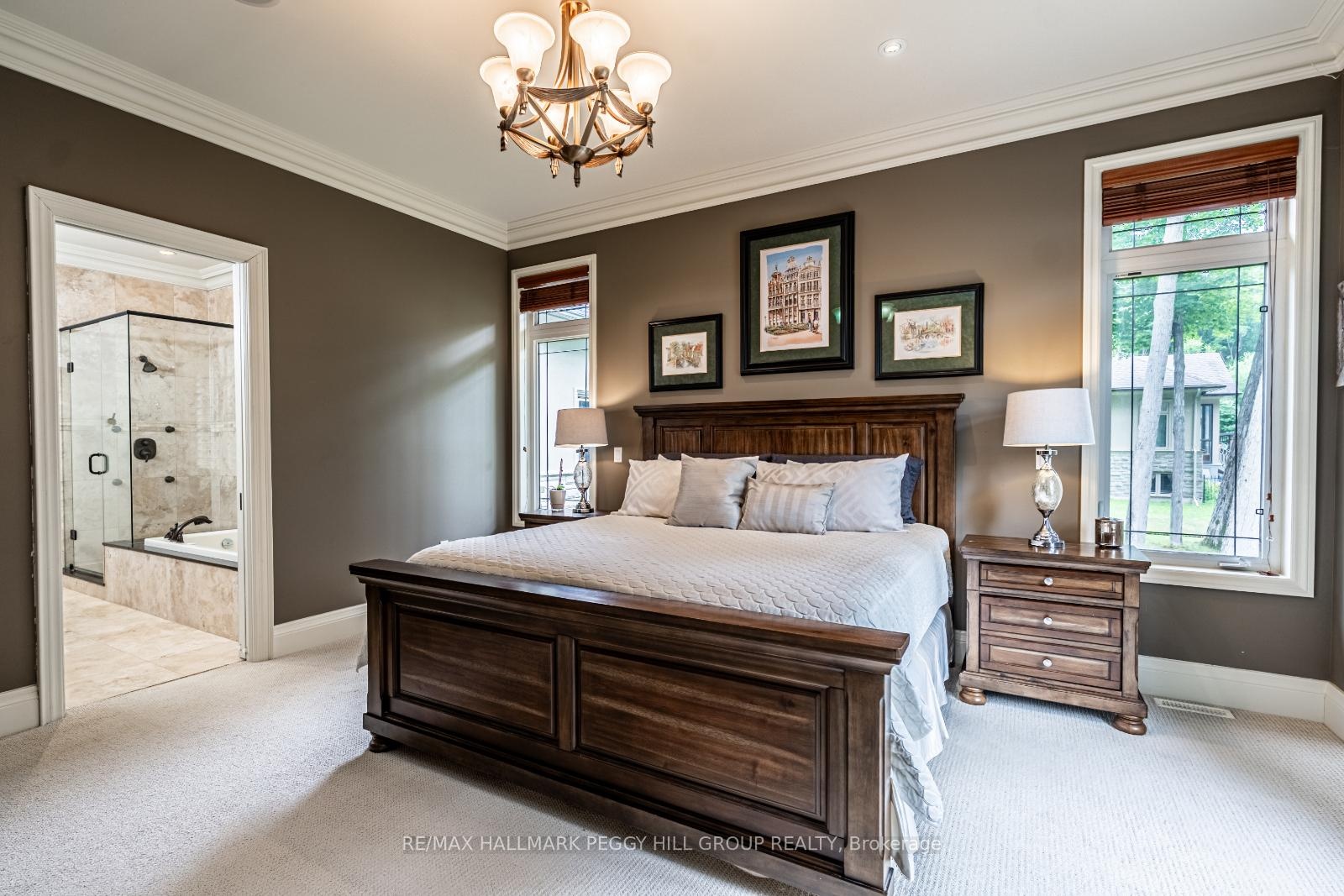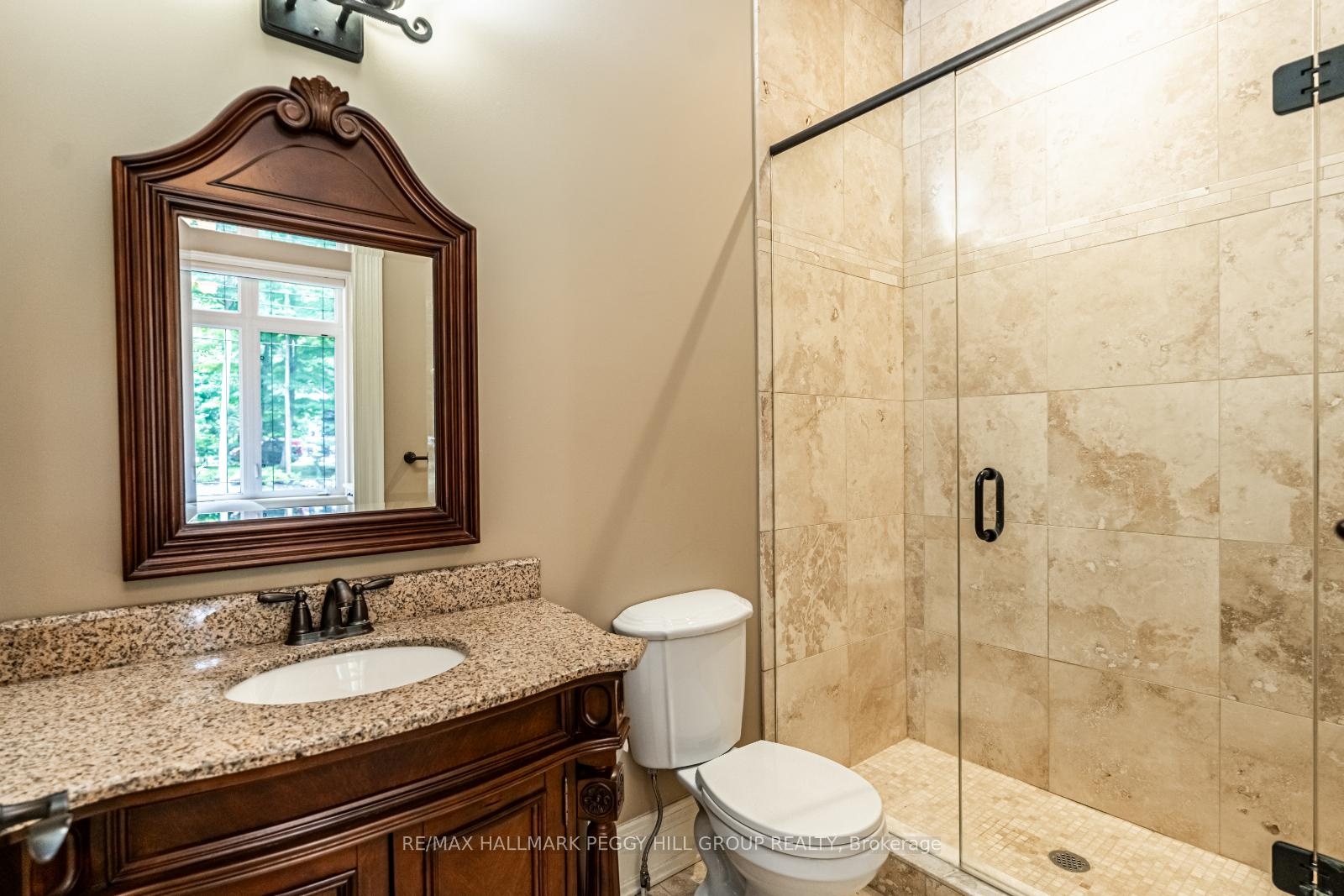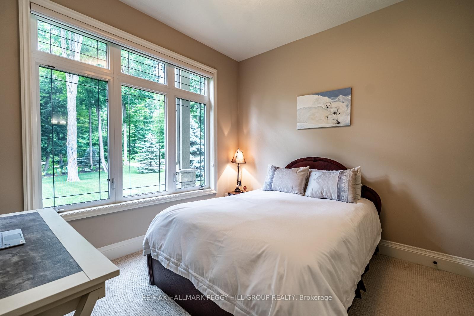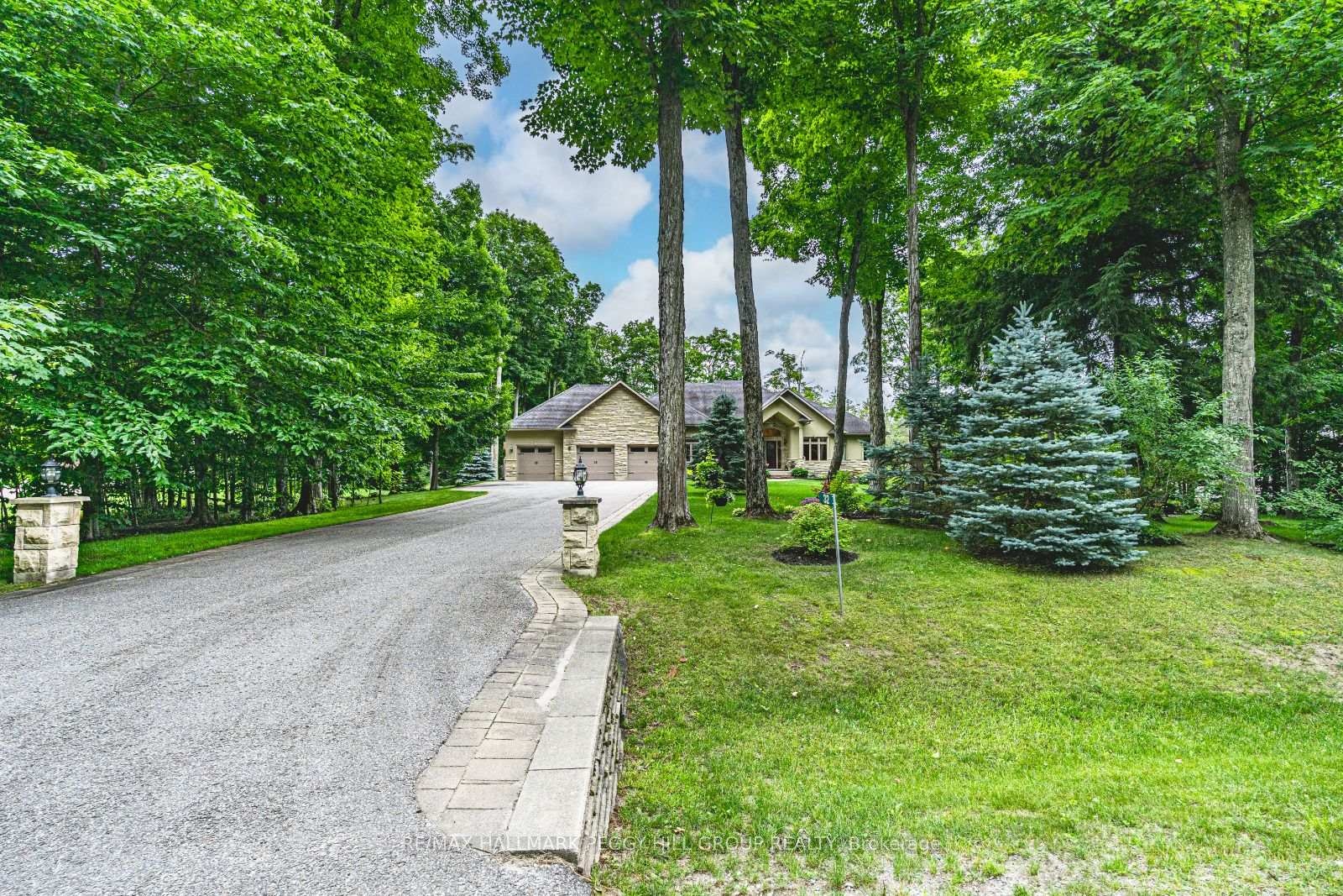 OVER 5,400 SQ FT OF SOPHISTICATED LUXURY WITH A SALTWATER POOL ON A SECLUDED 1.25 ACRE PROPERTY IN MIDHURST! Set at the end of a winding, tree-lined driveway on prestigious Gallagher Crescent, this extraordinary estate offers over 5,400 finished sq ft of refined living on more than an acre of privacy in one of the areas most exclusive neighbourhoods. Surrounded by custom homes and minutes to parks, trails, schools, golf, skiing, shopping, and Hwy 400, the stately stone and stucco exterior is framed by manicured gardens and an oversized triple garage. The backyard is an entertainers paradise, showcasing an inground saltwater pool with a newer liner and stone waterfall, a fire pit, and a fully equipped pool house with sink, fridge, and covered porch, all surrounded by extensive stone interlock. Timeless details include crown moulding, solid wood doors, detailed trim, hardwood floors, and pot lights. The great room boasts vaulted ceilings and a gas fireplace, while the formal dining room features a coffered ceiling. The chefs kitchen offers granite counters, a large island with seating, stainless steel appliances including a built-in oven and stovetop, two-tone cabinetry with crown moulding, a wood range hood, and a walkout to the balcony. Four main-floor bedrooms include a luxurious primary suite with a 5-pc ensuite and custom walk-in closet, a second bedroom with private ensuite, and two connected by a Jack & Jill bath. The finished walkout lower level expands the living space with a rec room and wet bar, gas fireplace, theatre room, gym area, an additional bedroom with built-in wardrobes, and a 3-pc bath. Crafted for those who desire a #HomeToStay where elegance meets unrivalled privacy.