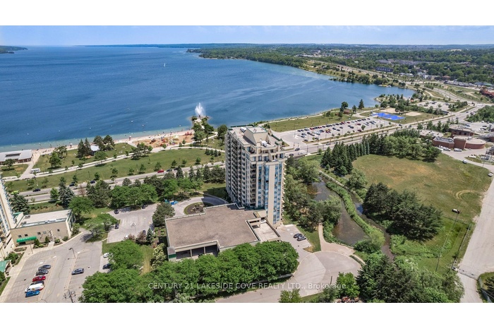 Welcome to Lakeside Living in Barrie, where Views of Lake Simcoe, Await You along the Picturesque Trail of Life. Immerse Yourself in Delightful Strolls that Lead You to the Pristine Beach, Lush Parks, and a Vibrant Waterfront, All Mere Steps from Your doorstep. With the Bustling Downtown Amenities Just a Stone's throw Away, this Location Truly Offers the Best of Both Worlds. Indulge in a Life of Luxury within the Adjoining Complex, which Features a State-of-the-Art Gym and a Welcoming Indoor Pool. This Turnkey Facility is Surrounded by Beautifully Manicured Grounds and Boasts a Secure Entry that Greets You with an Impressive Grand Foyer, Seamlessly Blending Modern Elegance with Cozy Comfort. Step Inside to Discover a Charming Galley Kitchen Adorned with Exquisite Tiled Flooring and a convenient pantry for all your culinary needs. You'll appreciate the practicality of an in-unit washer and dryer, complemented by a Thoughtfully Designed Laundry and Storage Closet. The Interior Strikes the Perfect Balance of Cozy Sophistication, Featuring Efficient Gas Heating, Air Conditioning, and a Temperature Controller that Ensures Your Comfort Throughout the Seasons. Savour the Serene Views from Your Private Balcony, Where the Gentle River Meanders Toward the Lake, Just a Short Stroll from the Sandy Beach. The Ensuite Bath Delights with Both a Four-Piece and a Three-Piece Bathroom, Offering Convenience for You and Your Guests. Meanwhile, the Second Bedroom is Bathed in Radiant Natural Light from its Oversized Windows, Creating an Inviting Sanctuary for Relaxation. With the Boardwalk Easily Accessible from the Service Entry, Enjoy Convenient Access for Pets and Deliveries through the Back Door, While the Nearby Trail of Life Beckons You to Explore the Beauty of Nature. Experience the Lifestyle You've Always Dreamed of at Lakeside Living, Where Every Day Feels Like a Getaway.