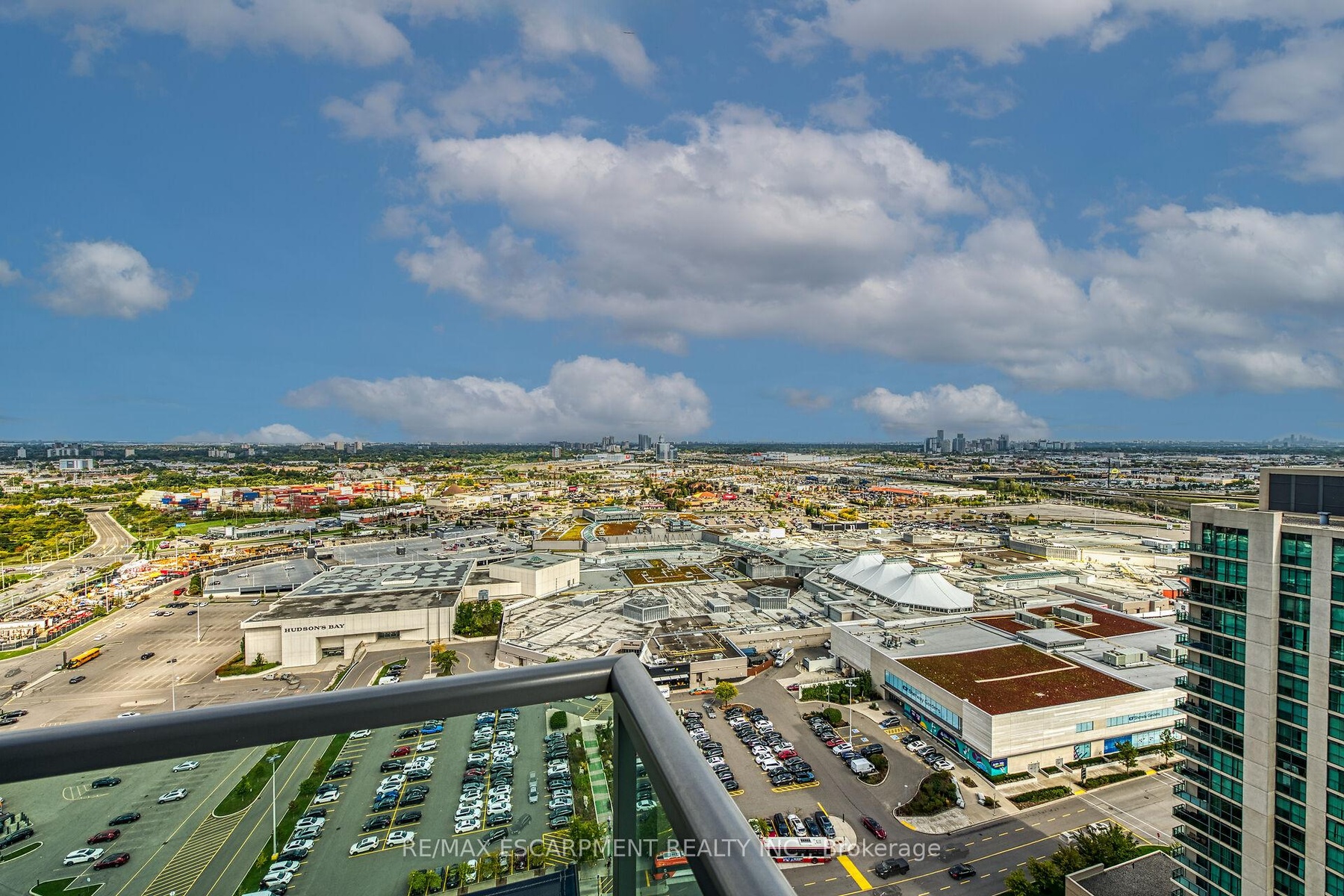 Upscale Corner Unit w/Panoramic City Views. Welcome to this highly sought-after 2 bed, 2 full bath corner unit at One Sherway, offering floor-to-ceiling windows w/breathtaking panoramic views of the City. This bright and airy condo boasts engineered hardwood flooring throughout and a sleek modern white kitchen w/stainless steel appliances, seamlessly flowing into the open-concept living & dining area, perfect for entertaining. The primary suite is a serene retreat, featuring a spacious walk-in closet & a spa-like 4-piece ensuite bath. The second bedroom is equally spacious & the unit offers the convenience of in-suite laundry & a private enclosed balcony overlooking the city. Enjoy world-class amenities including an indoor pool, hot tub, sauna, aerobics room, virtual golf, sundeck, massage room, fully equipped gym, theatre, billiards/games room, meeting room, dining room, party room & guest suitesall conveniently located on the ground level. With 24-hour concierge & security, you can relax knowing comfort & safety come first. Ideally located, youre just steps to TTC, Sherway Gardens upscale shopping & dining w/quick access to Hwy 427, QEW, the GO station & only minutes to Pearson International Airport.