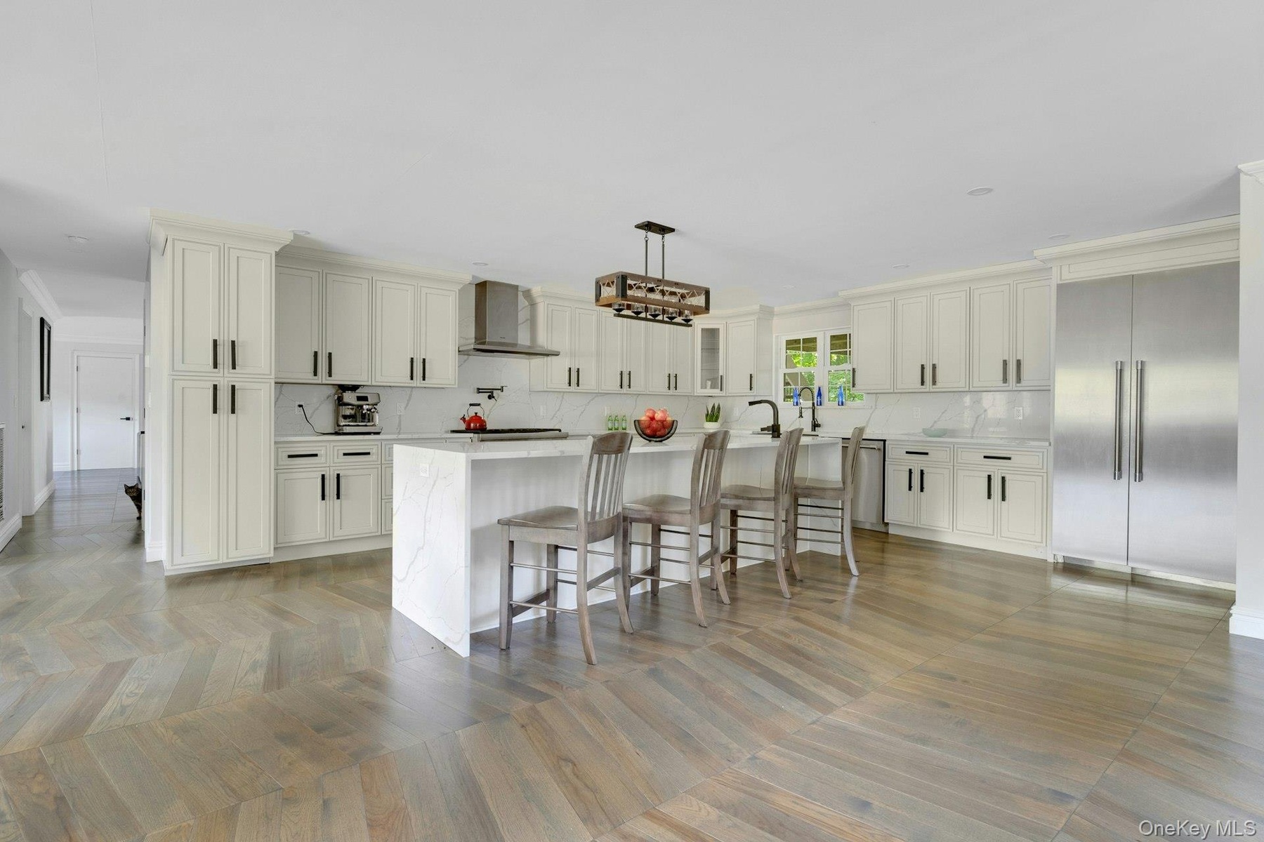 Tucked away on a quiet cul-de-sac in the picturesque town of Katonah, this beautifully updated five-bedroom, four-bath home sits on over an acre and offers more than 3,000 sq ft of open-concept living—perfect for entertaining or everyday comfort. Step into the foyer beneath a grand chandelier and into the heart of the home. The chef’s kitchen is a delight, with an oversized quartz waterfall island, seating, a second sink, microwave, beverage fridge; and all-new Thermador appliances, including a pot filler to cook with ease. Ample cabinetry and a walk-in pantry keep everything organized, and just beyond is the dining area with wood-burning fireplace, which brings warmth and charm. Relax and unwind in the living room, complete with oversized windows and French sliding door leading to the backyard the newly built bluestone patio (September 2025), allowing easy access to the backyard for effortless indoor-outdoor living. The generous windows throughout the house allow the natural light to stream in and create a bright and airy feel. Additionally, a first-floor bedroom and full bath provide ideal accommodations for guests or an au pair. Upstairs, convenience meets luxury with a second-floor laundry room, four additional bedrooms and three full bathrooms. The sprawling primary suite is a true retreat, complete with a walk-in closet, a luxurious en-suite featuring a double vanity, a classic clawfoot tub, separate shower, and direct access to a private deck. A second bedroom also has an en-suite bathroom and walk-in closet, and there are two additional bedrooms on the second floor. Peace of mind comes with extensive updates: a new Camelot roof, windows, siding, plumbing, electrical, well system, and efficient Bosch heat pumps with propane backup. With a two-car garage, expansive yard, and tranquil tree-lined setting, this turn-key Katonah gem is ready to welcome you home.
