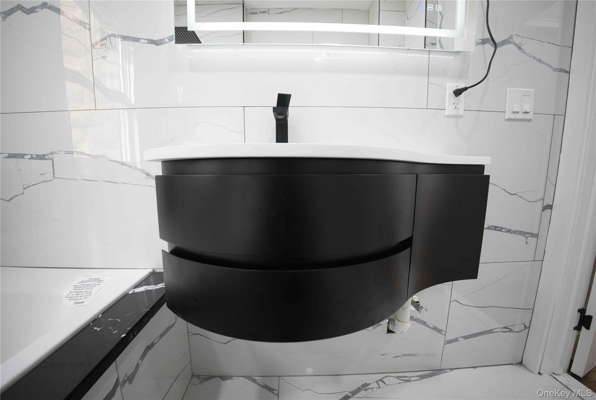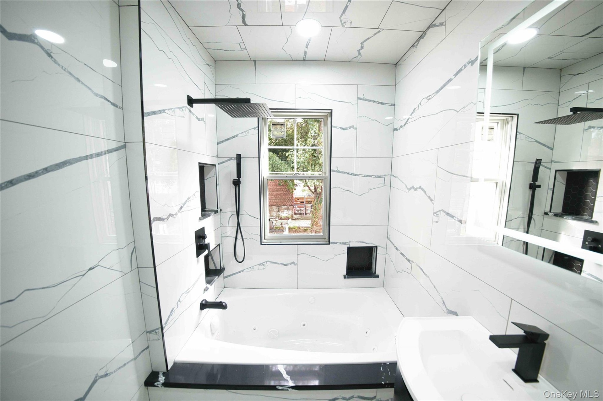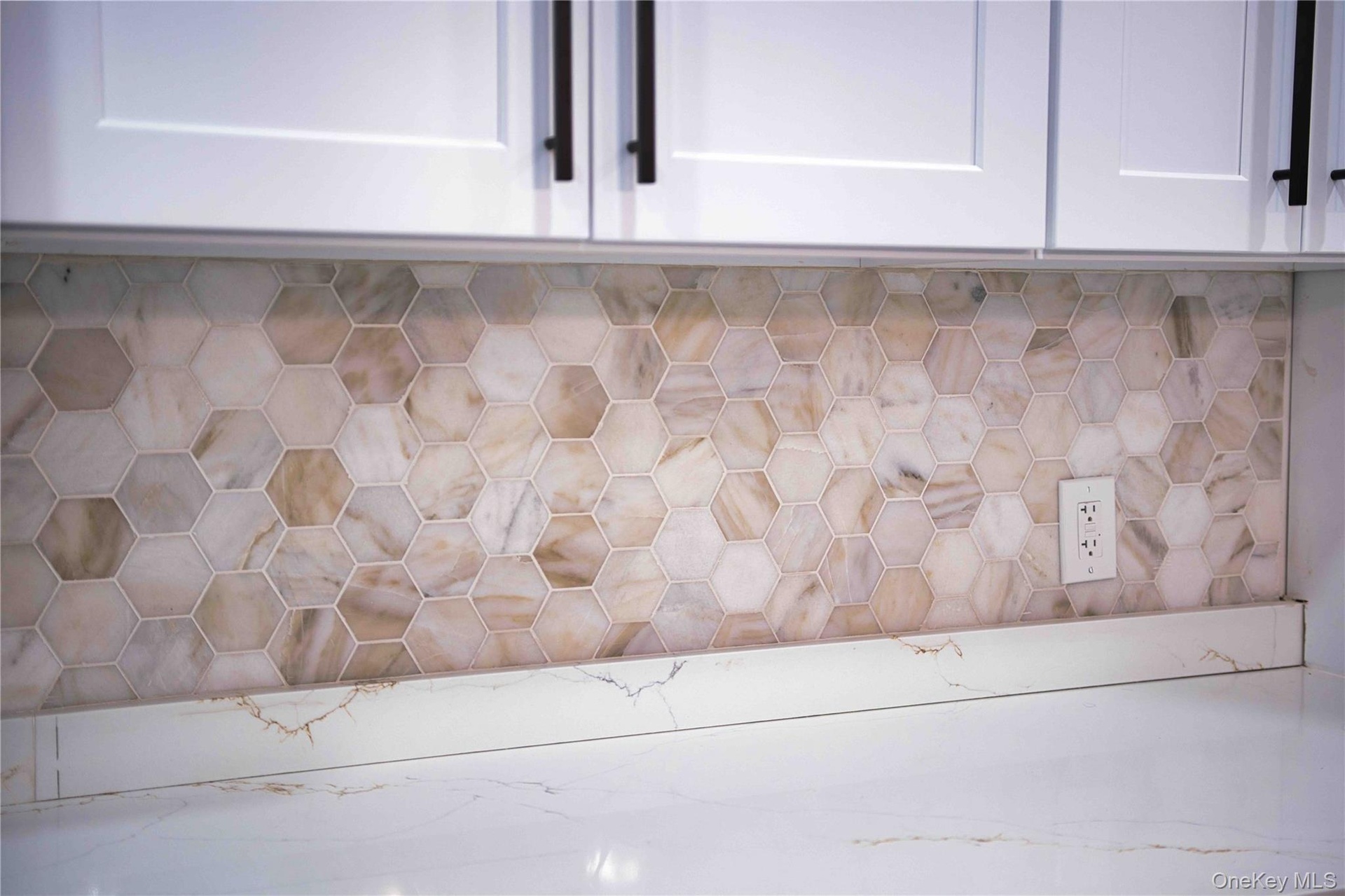 half bathroom. Designed for both comfort and style, this residence features an inviting living and dining room, a modern kitchen with an island and waterfall detail, and a marble backsplash that adds elegance to the space. The home includes a full finished basement with a separate entrance, providing versatile space for recreation, guests, or a home office. Enjoy the convenience of a washer and dryer, oak hardwood floors throughout, and central air conditioning with forced air heating for year-round comfort. Outdoors, a private deck creates the perfect setting for relaxing or entertaining. Every detail of this home has been thoughtfully updated, giving it a fresh, dream-home feel with top-of-the-line finishes. Located on a beautiful block, this property offers easy access to shopping, restaurants, transportation, and the nearby mall—making it an ideal blend of modern living and neighborhood convenience. Features include: