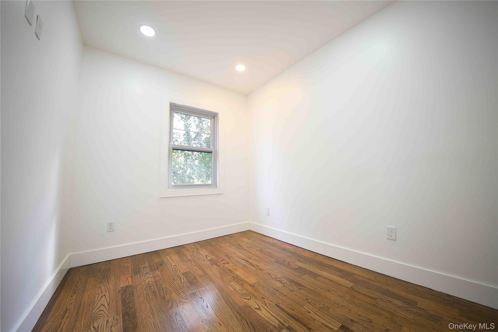 - Empty room featuring dark wood-style flooring and recessed lighting
