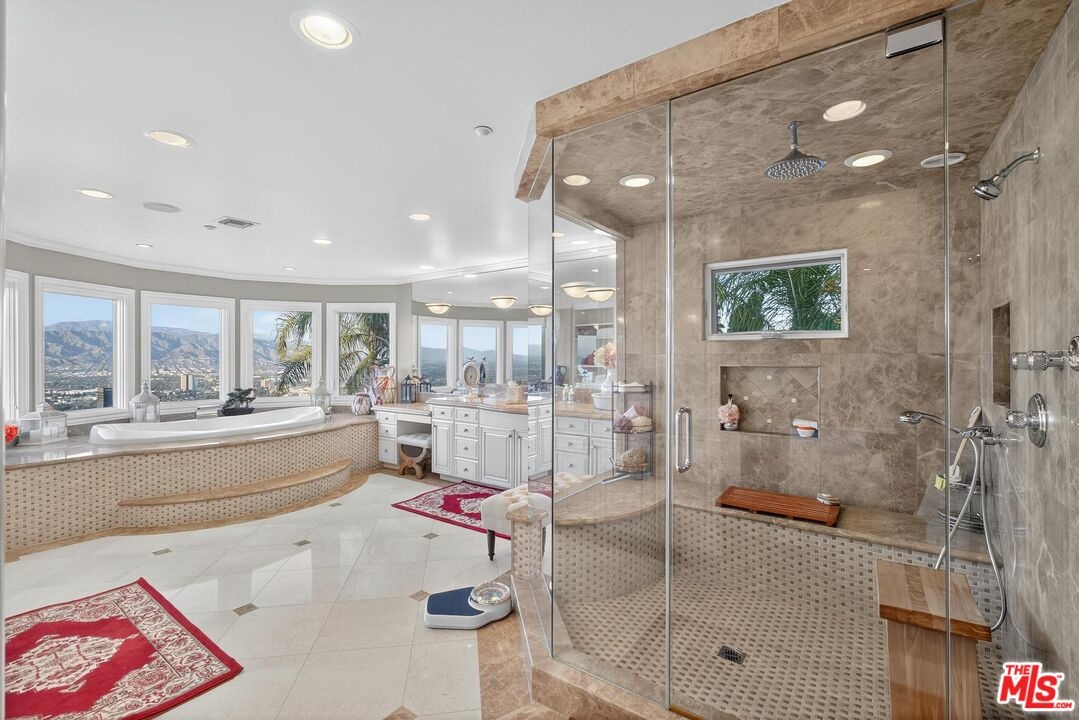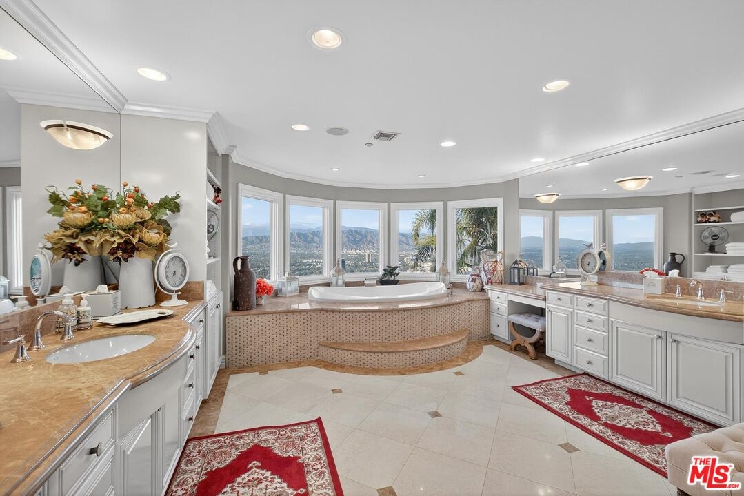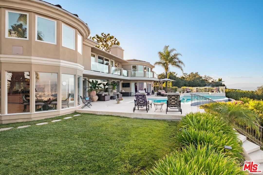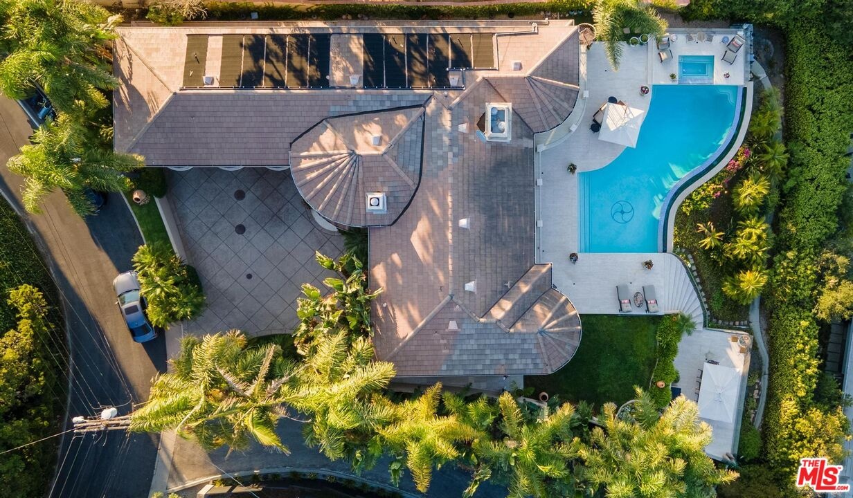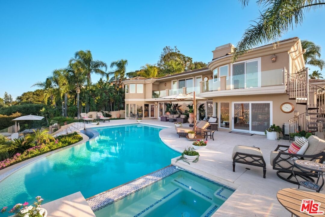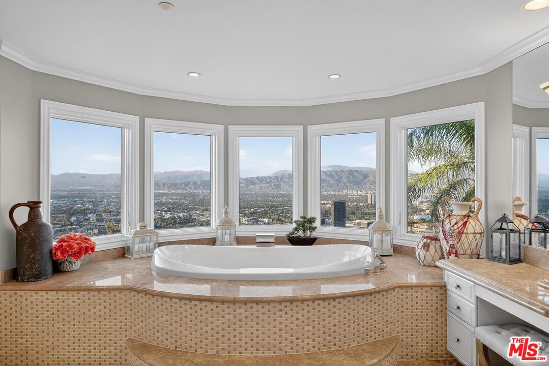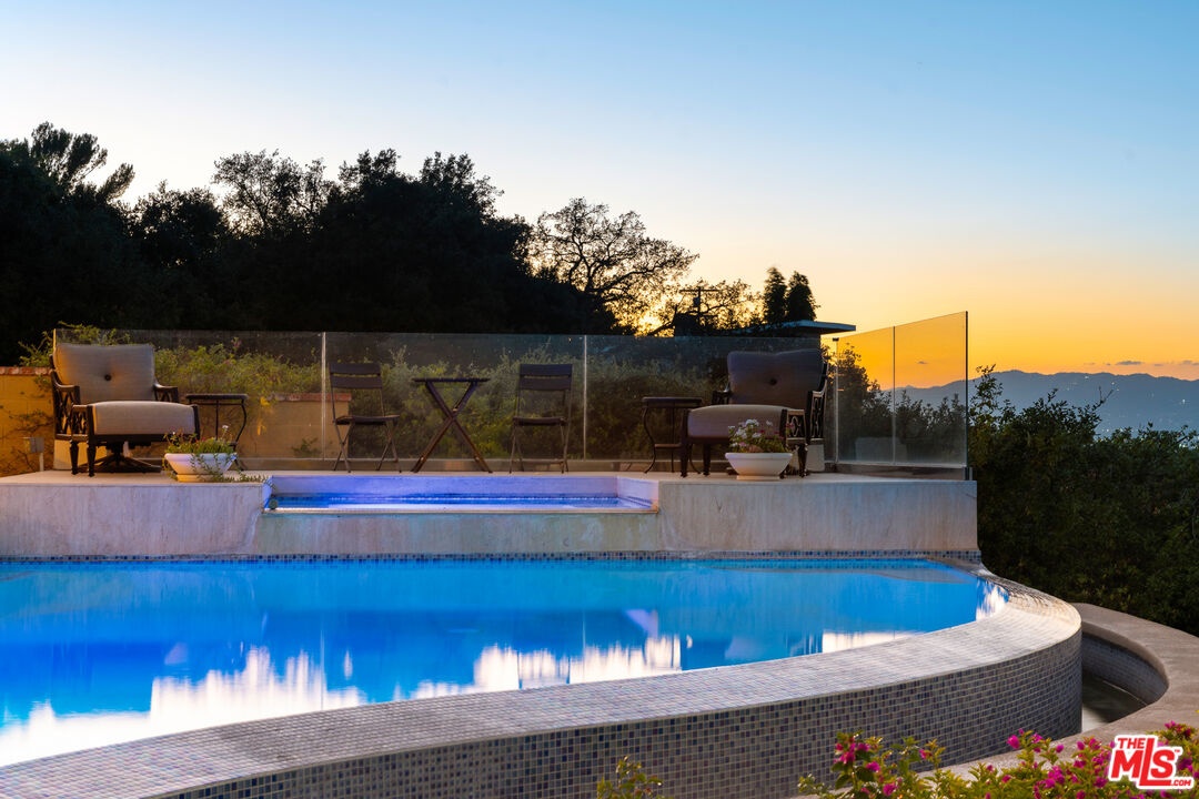 Welcome to "Villa De Torreyson", a breathtaking Mediterranean masterpiece perched high above the Hollywood Hills on one of the most prestigious celebrity-studded cul-de-sacs in Hollywood Hills West. This timeless villa captures inarguably the most awe-inspiring, unobstructed panoramic views in the entire region sweeping from the Santa Monica Mountains and Universal Studios to the vast San Fernando Valley skyline and mountain ranges. With a commanding promontory position and cinematic sunrises and sunsets, this is a rare offering for those who demand the extraordinary. Beyond its stately motor court and dramatic two-story entry, the residence unfolds into a series of radiant, light-filled living spaces that embody the elegance of Old World Mediterranean charm fused with refined California luxury. The formal living room flows effortlessly into the dining room, breakfast nook, and a spacious chef's kitchen, creating the perfect atmosphere for both grand-scale entertaining and intimate everyday living. Step outside to a resort-inspired oasis where an architectural infinity pool floats above the city, framed by lush landscaping, multiple lounging terraces, and a built-in BBQ pavilion, all oriented to capture the home's world-class views at every turn. The primary suite is a sanctuary unto itself, featuring a cozy sitting area with fireplace, dual walk-in closets, and a private wraparound balcony that spills directly into the horizon. A spa-like bath with soaking tub and oversized glass shower completes the retreat with a sense of calm sophistication. Additional highlights include a state-of-the-art home theater with projection system and surround sound, a bonus room with private entrance ideal for a gym, office, recording studio, meditation/yoga area, or creative studio, a three-car garage, and five luxurious en-suite bedrooms. With effortless access to the Sunset Strip, Beverly Hills, and Studio City, "Villa De Torreyson" is more than a home, it is a rarefied hilltop estate that defines prestige, privacy, and iconic Los Angeles living. Truly one of the best views in all of Hollywood Hills West.