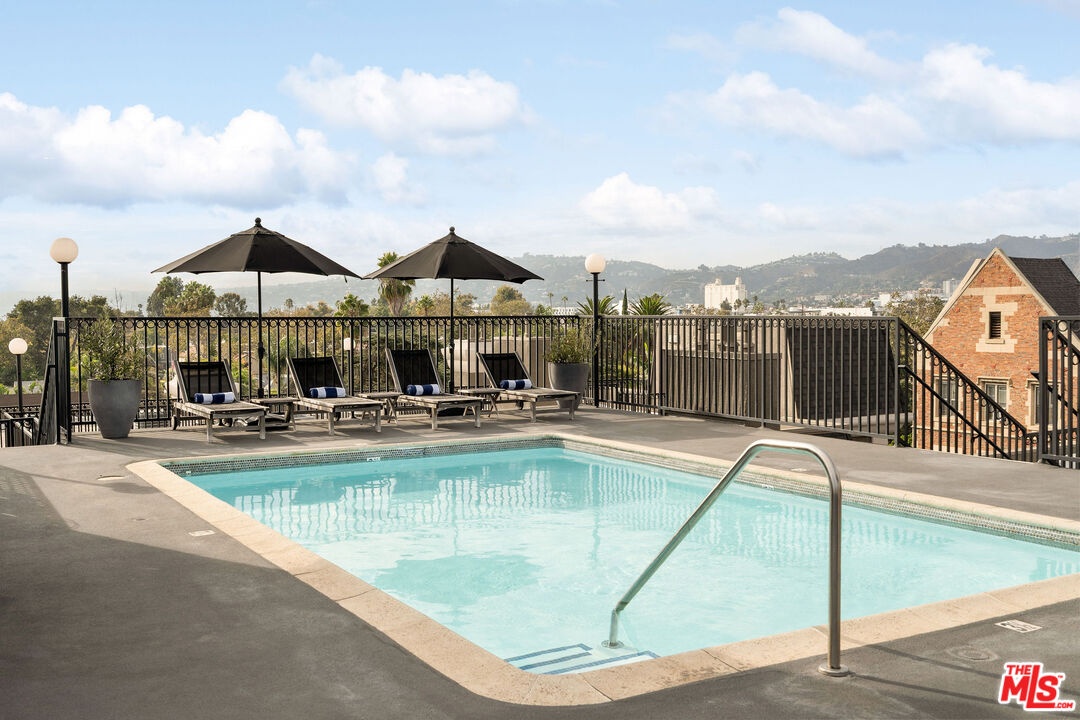 Hancock Park Elegance near Wilshire Country Club & Larchmont Village. Perched on the 4th floor of a meticulously maintained building, this exquisitely remodeled 1-bedroom condo is a study in refined Los Angeles living. Renovations include newly installed wide plank oak floors, bespoke designer wallpaper, Soho Home light fixtures, Farrow & Ball paint, added backlit wood paneling in the bedroom, and elegant wall molding in the living room. Floor-to-ceiling windows flood the space with natural light, while a gas fireplace adds warmth and a touch of cinematic drama. Both the bedroom and living room open to a balcony, creating a seamless indoor-outdoor flow. The bedroom offers a generous walk-in closet, and in-unit laundry ensures effortless day-to-day living. Located within the coveted 3rd Street Elementary district and just three blocks from the vibrant Larchmont Village, the location offers a convenient lifestyle with some of the city's finest dining, shopping, and culture. The building itself is a model of modern luxury, boasting a rooftop pool and newly renovated outdoor kitchen with panoramic views of the Hollywood Hills, and Griffith Park. Additional amenities include a freshly redesigned lobby, elevators, a state-of-the-art gym, secured keyless entry via facial recognition, 2-car tandem parking with an EV charger, and bicycle storage. Pets are welcome, completing a lifestyle of sophistication and convenience. Welcome home!