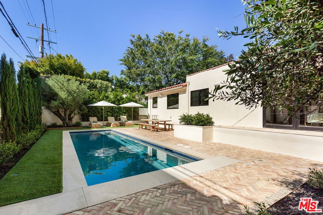 Introducing an exceptional opportunity in the heart of Melrose Place! This Spanish-style house has been meticulously renovated down to the studs showcasing a seamless blend of classic charm and modern luxury. Spanning approx. 3300sf on a single level, this high-end residence boasts top-notch finishes throughout including Arbescato marble, limestone, and handmade Moroccan tiles by Zellige. This ideal layout features three generous sized bedroom suites all with walk-in closets and custom cabinetry. Step outside to discover a true oasis featuring a completely redesigned swimmers pool and outdoor kitchen that beckons for relaxation and enjoyment on warm sunny days. The landscape has been meticulously crafted incorporating 100+yr old Olive Trees and elegant brick walkways. Step out your front door onto prime Melrose Place, a location offering the perfect balance of city living with a suburban feel. Catch Steak, Alfred Coffee, Gucci, and the famous Melrose Place farmers market are just a few amenities of upscale living and enjoyment that comes with this vibrant neighborhood.