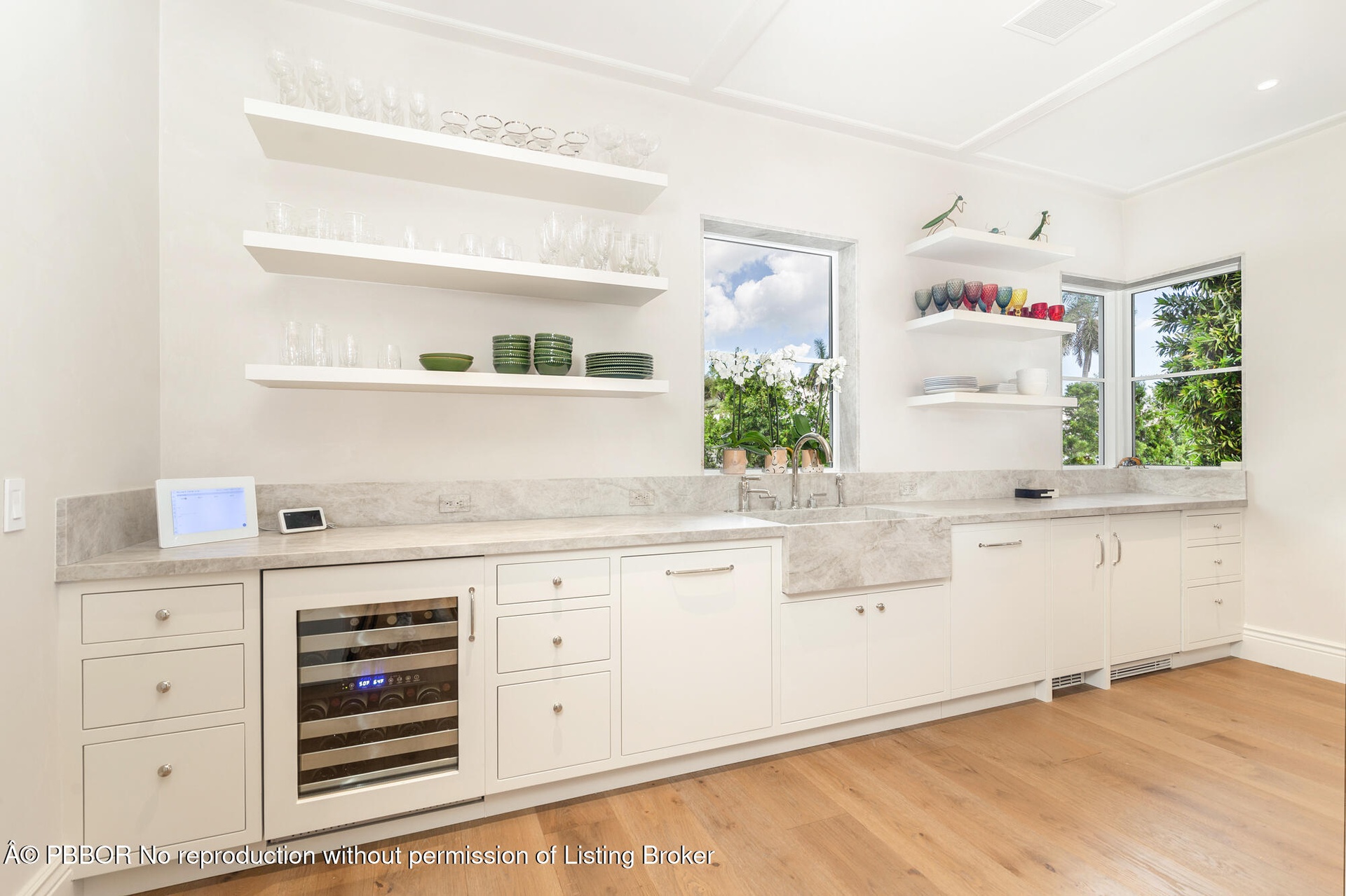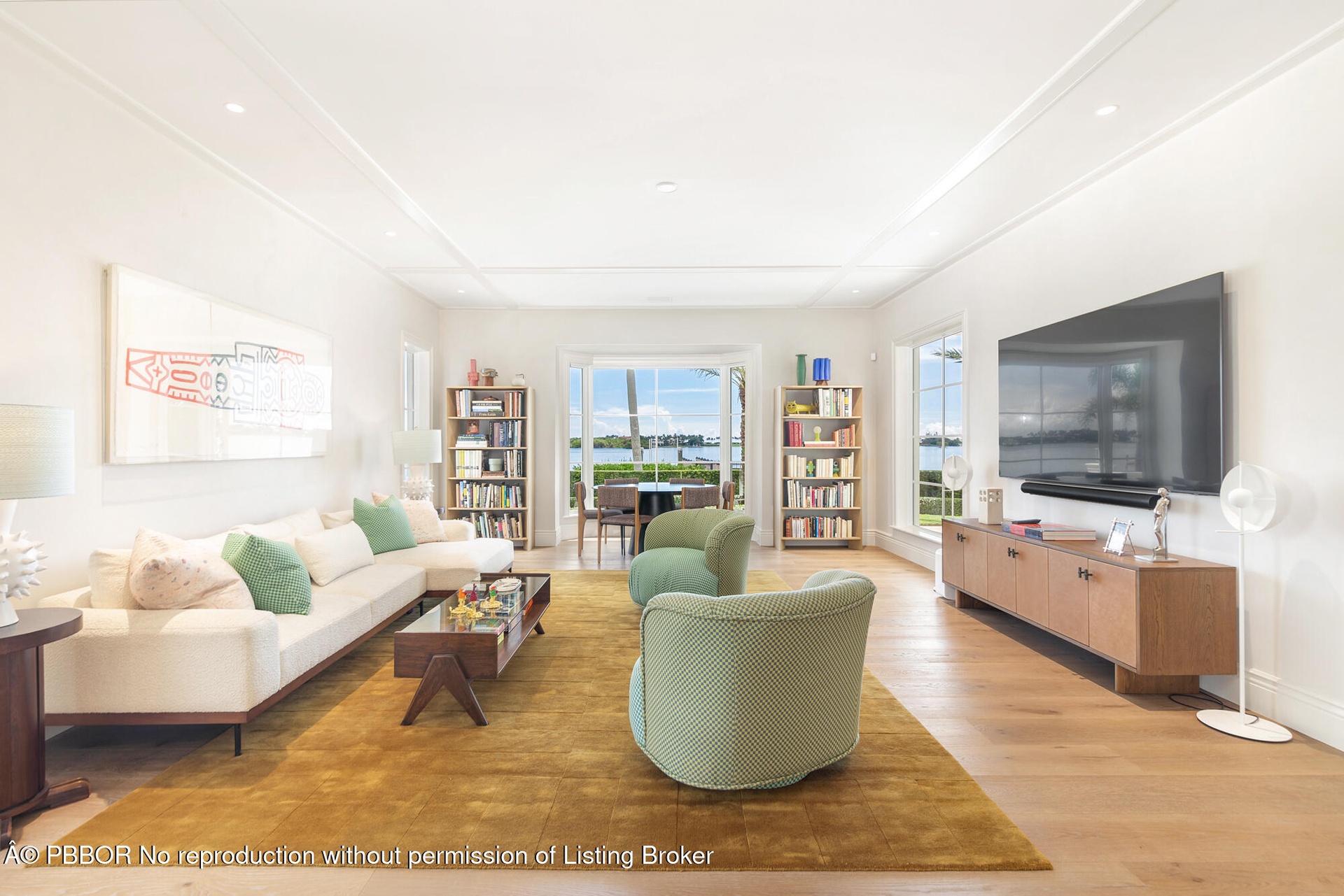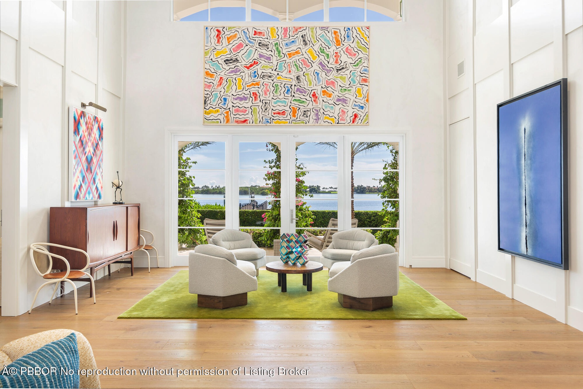 Situated on a rare .45-acre lot with a private dock and 120 ft of frontage on the intracoastal waterway, this fully renovated 5 bedroom, 5.5 bathroom estate offers 6,700 square feet of luxurious living space and breathtaking water views. Fully renovated throughout—including a new roof, all-new impact doors and windows—the home was elegantly designed by acclaimed interior designer Caroline Rafferty. The compound spans 9,535 total sqft, including 6,700 sqft of living space, and features soaring ceilings, curated finishes, and a thoughtful layout. The chef's kitchen is fully outfitted with a Thermador 6-burner gas range, two dishwashers, wine fridge, and a butler's pantry featuring dual ovens, refrigerator drawers, and a large china closet with an additional refrigerator. The main floor includes two en-suite bedrooms with water views, while the upper level offers another two en-suite bedrooms with their own TV lounge and laundry room connected to a balcony facing the water, along with an expansive primary suite complete with a balcony overlooking the water, dedicated office, spa-style bath with soaking tub, makeup vanity area, private water closet, and dual walk-in closets. Outdoors, the home features a covered loggia with an outdoor TV, a large pool, and a beautifully landscaped garden, perfect for relaxing or entertaining. Additional highlights include a private dock with an approx. 20,000 lbs boat lift, an elevator, a finished 3-car garage, and a conveniently located porte cochere. Ideally situated in SoSo, this exceptional estate is just minutes from PBI Airport, downtown West Palm Beach, Palm Beach Island, Worth Avenue, The Park Golf Course, and the area's premier beaches, dining, and shopping.