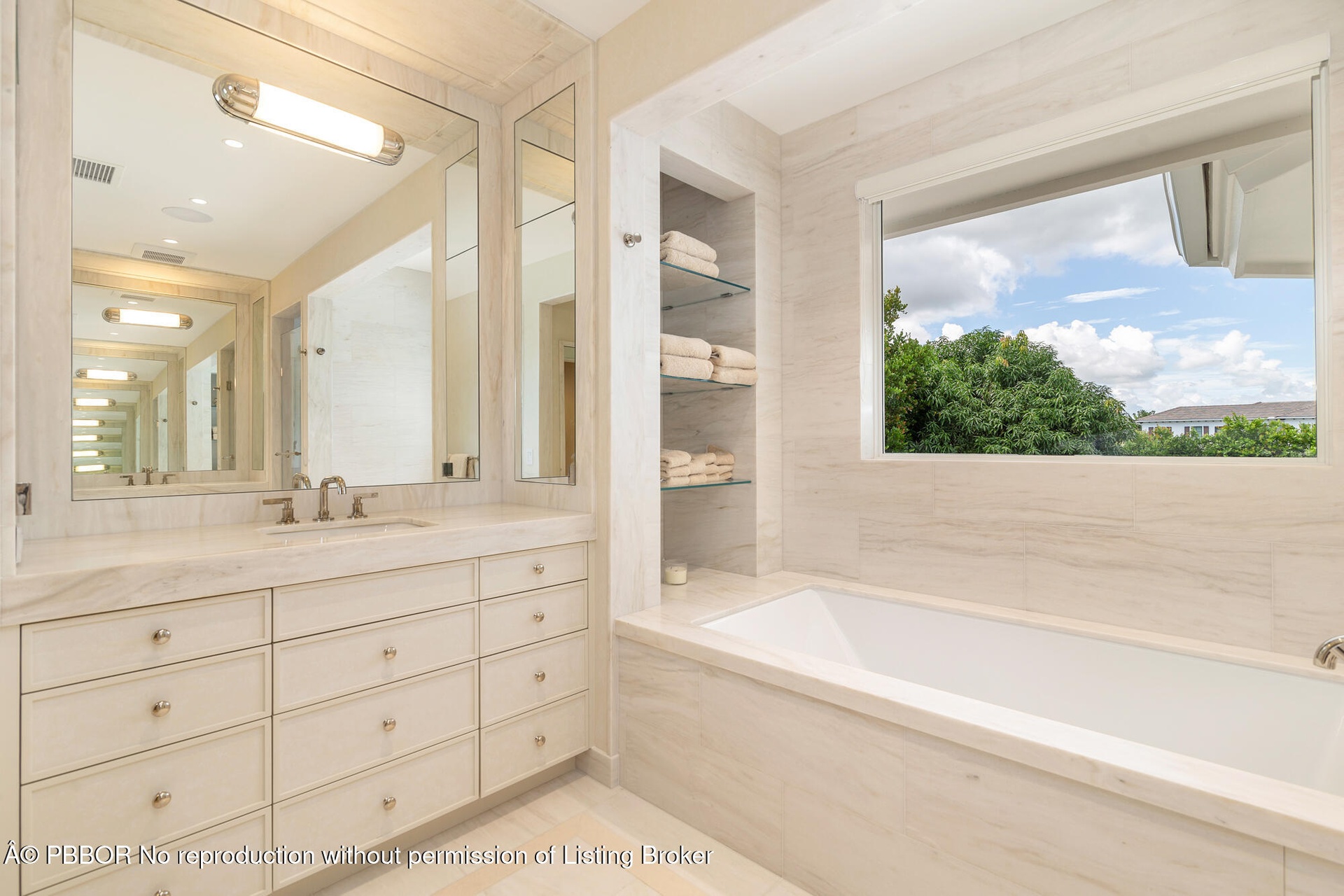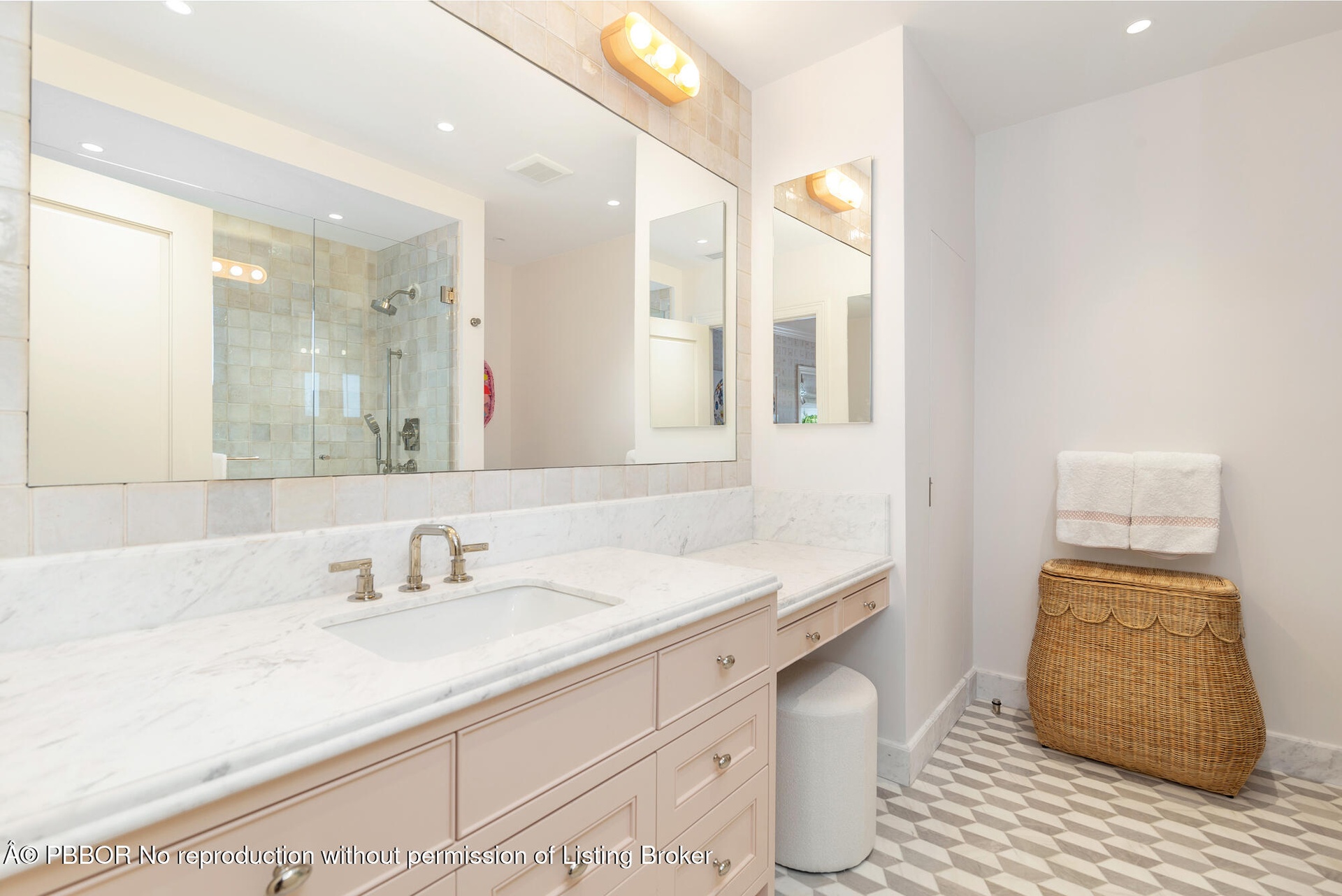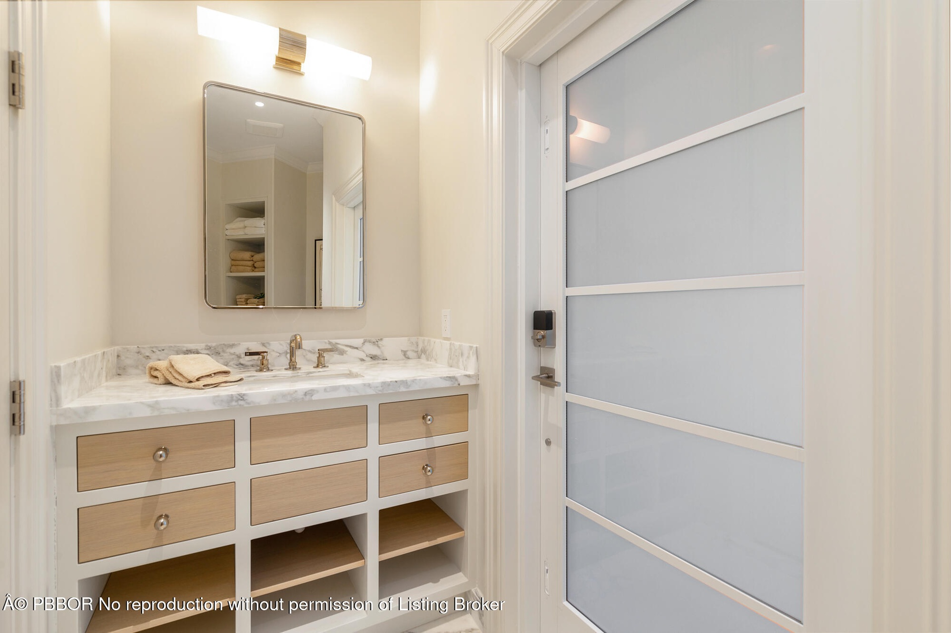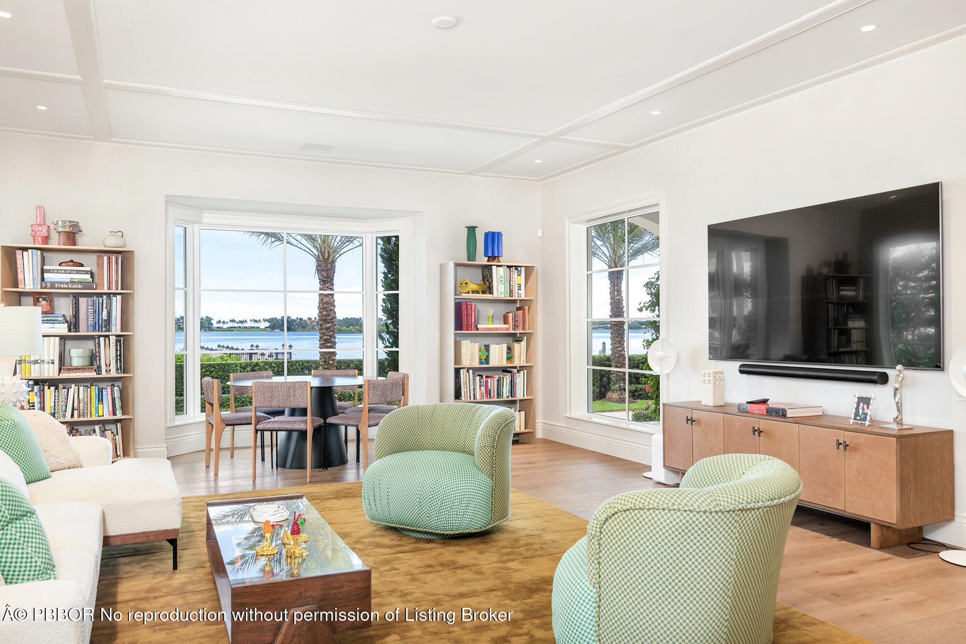 Situated on a rare .45-acre lot with a private dock and 120 ft of frontage on the intracoastal waterway, this fully renovated 5 bedroom, 5.5 bathroom estate offers 6,700 square feet of luxurious living space and breathtaking water views. Fully renovated throughout—including a new roof, all-new impact doors and windows—the home was elegantly designed by acclaimed interior designer Caroline Rafferty. The compound spans 9,535 total sqft, including 6,700 sqft of living space, and features soaring ceilings, curated finishes, and a thoughtful layout. The chef's kitchen is fully outfitted with a Thermador 6-burner gas range, two dishwashers, wine fridge, and a butler's pantry featuring dual ovens, refrigerator drawers, and a large china closet with an additional refrigerator. The main floor includes two en-suite bedrooms with water views, while the upper level offers another two en-suite bedrooms with their own TV lounge and laundry room connected to a balcony facing the water, along with an expansive primary suite complete with a balcony overlooking the water, dedicated office, spa-style bath with soaking tub, makeup vanity area, private water closet, and dual walk-in closets. Outdoors, the home features a covered loggia with an outdoor TV, a large pool, and a beautifully landscaped garden, perfect for relaxing or entertaining. Additional highlights include a private dock with an approx. 20,000 lbs boat lift, an elevator, a finished 3-car garage, and a conveniently located porte cochere. Ideally situated in SoSo, this exceptional estate is just minutes from PBI Airport, downtown West Palm Beach, Palm Beach Island, Worth Avenue, The Park Golf Course, and the area's premier beaches, dining, and shopping.