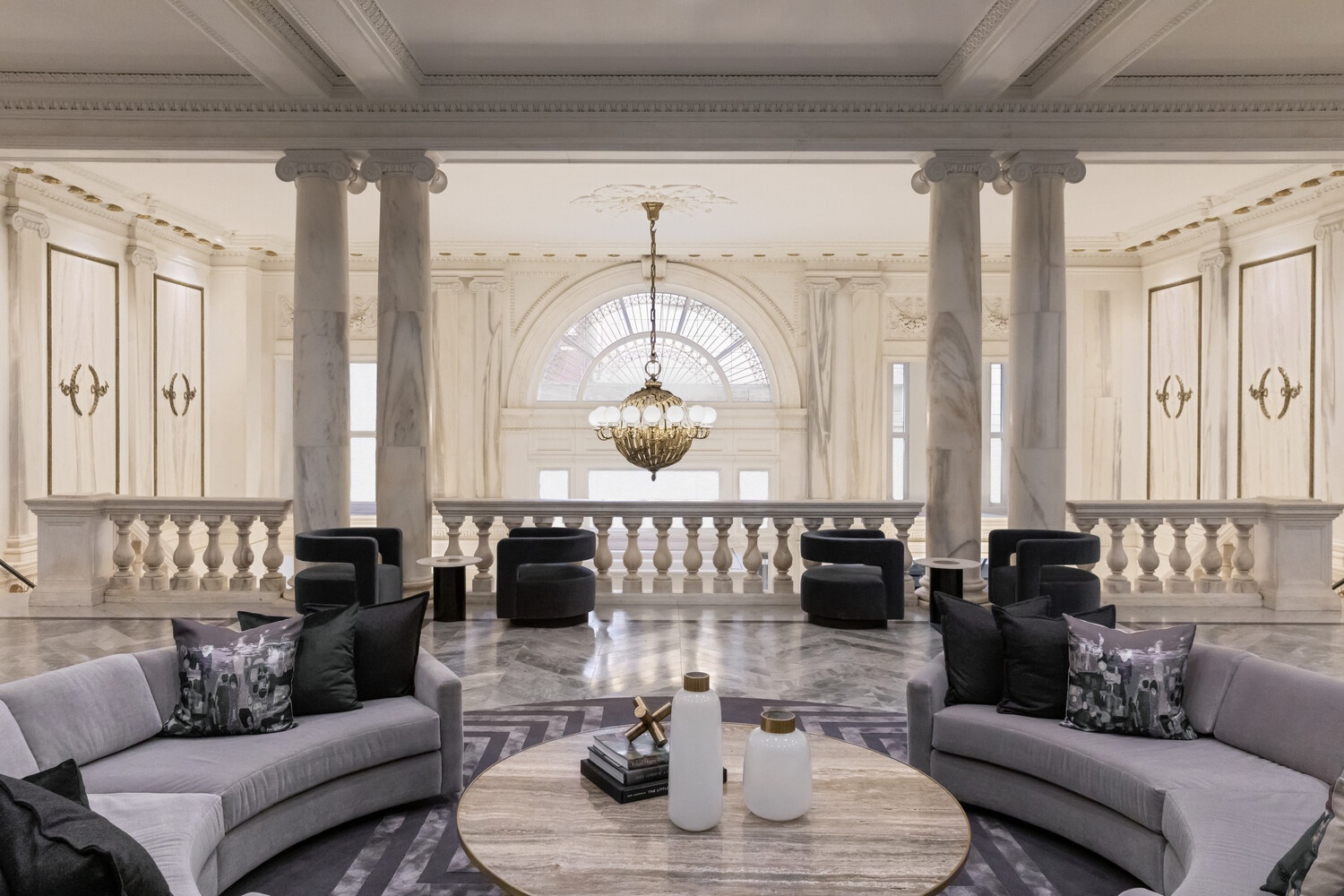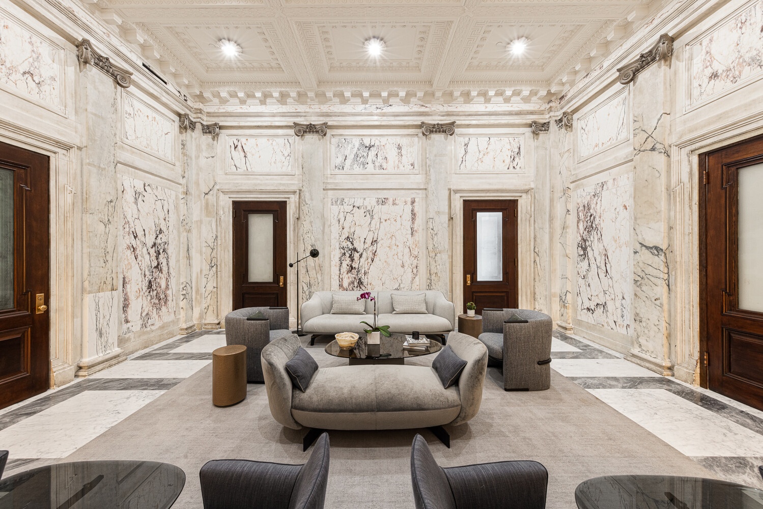 Featuring a discreet drive-in motor reception including valet parking and three luxurious attended lobbies each with its own elevator bank, 108 Leonard offers both the intimate experience of a boutique building and the breadth of over 20,000 square feet of wellness-driven amenities. Award-winning hospitality design firm Jeffrey Beers International has scrupulously restored renowned architect McKim Mead & White's Italian Renaissance Revival landmark; masterfully imbuing a distinctly contemporary yet timeless point of view within Tribeca's most iconic century-old building.