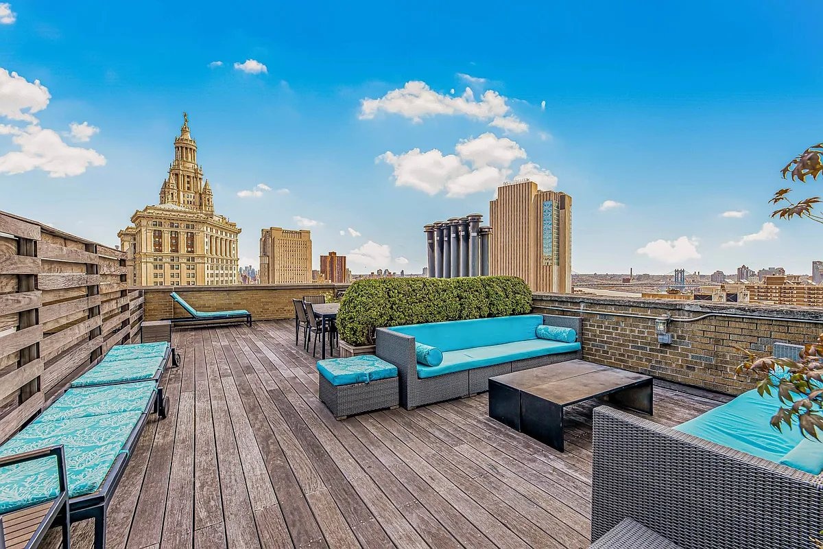 St. Barth-inspired landscaped roof deck with panoramic city views