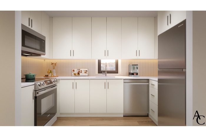 Welcome to Residence 2C, a beautifully crafted one-bedroom, one-bathroom corner home spanning 675 square feet. Located in the heart of Fort George, this thoughtfully designed residence stands out for its abundant natural light, airy layout, and refined modern finishes.