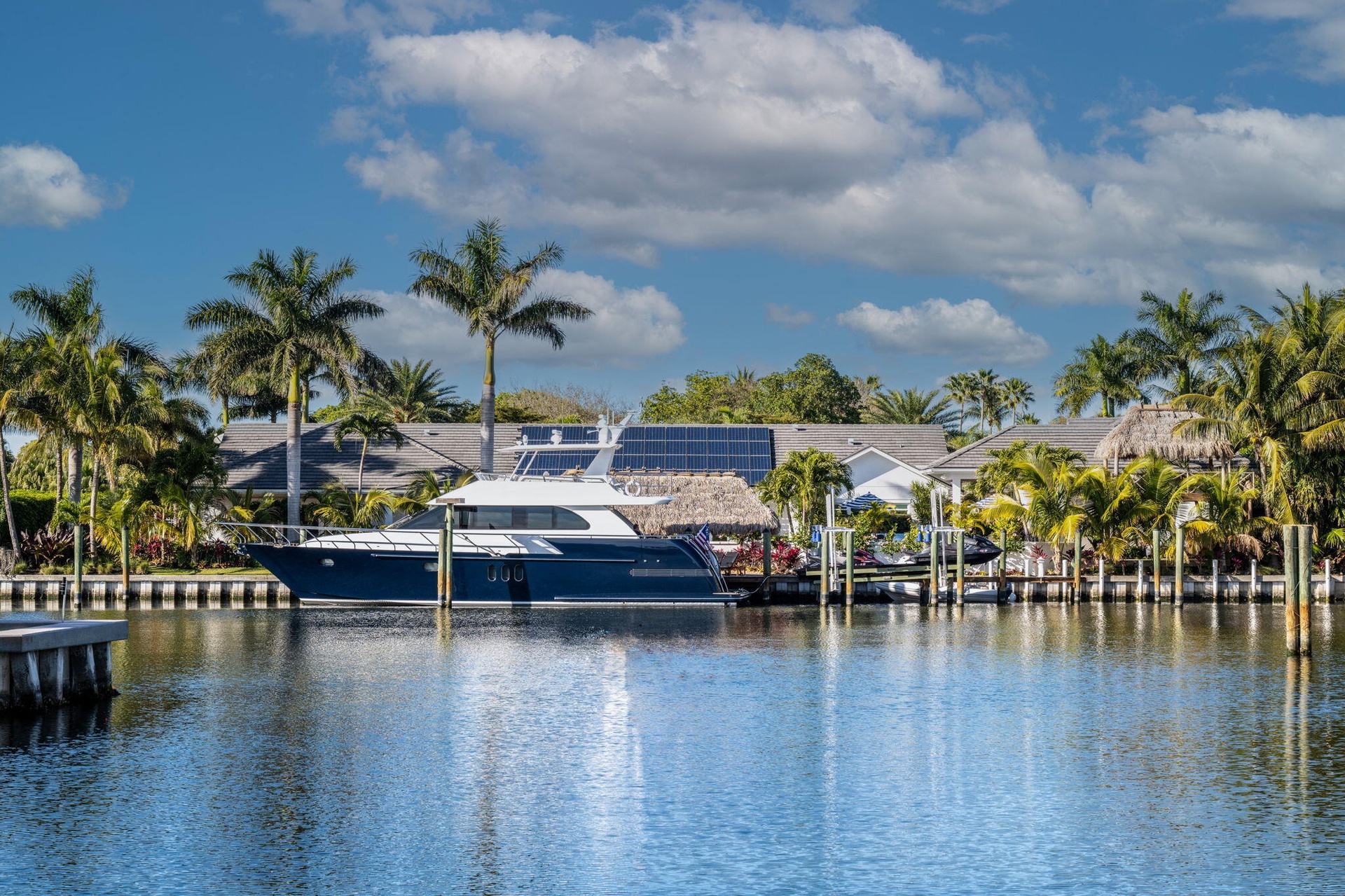 This IS a boater's dream! Over 184 feet of PROTECTED DEEP-WATER frontage, a 98' Ipe wood dock, 24,000 LB lift, & quick access to the intracoastal! Recent renovations transformed this 5,500+ SF home into a modern, luxurious retreat that seamlessly blends indoor & outdoor living. Privacy is enhanced by lush landscaping & authentic Chickee Tiki huts, creating multiple areas for entertaining or enjoying the Florida lifestyle. Spacious updated floor plan with a gourmet kitchen, spacious room sizes & private en-suite bedrooms. All impact glass sliders & windows! Nothing has been missed here!