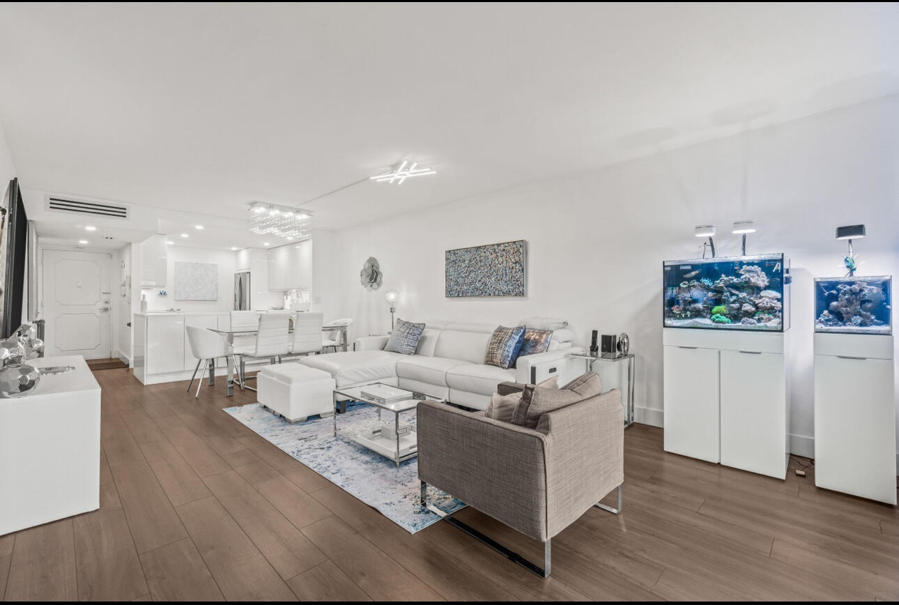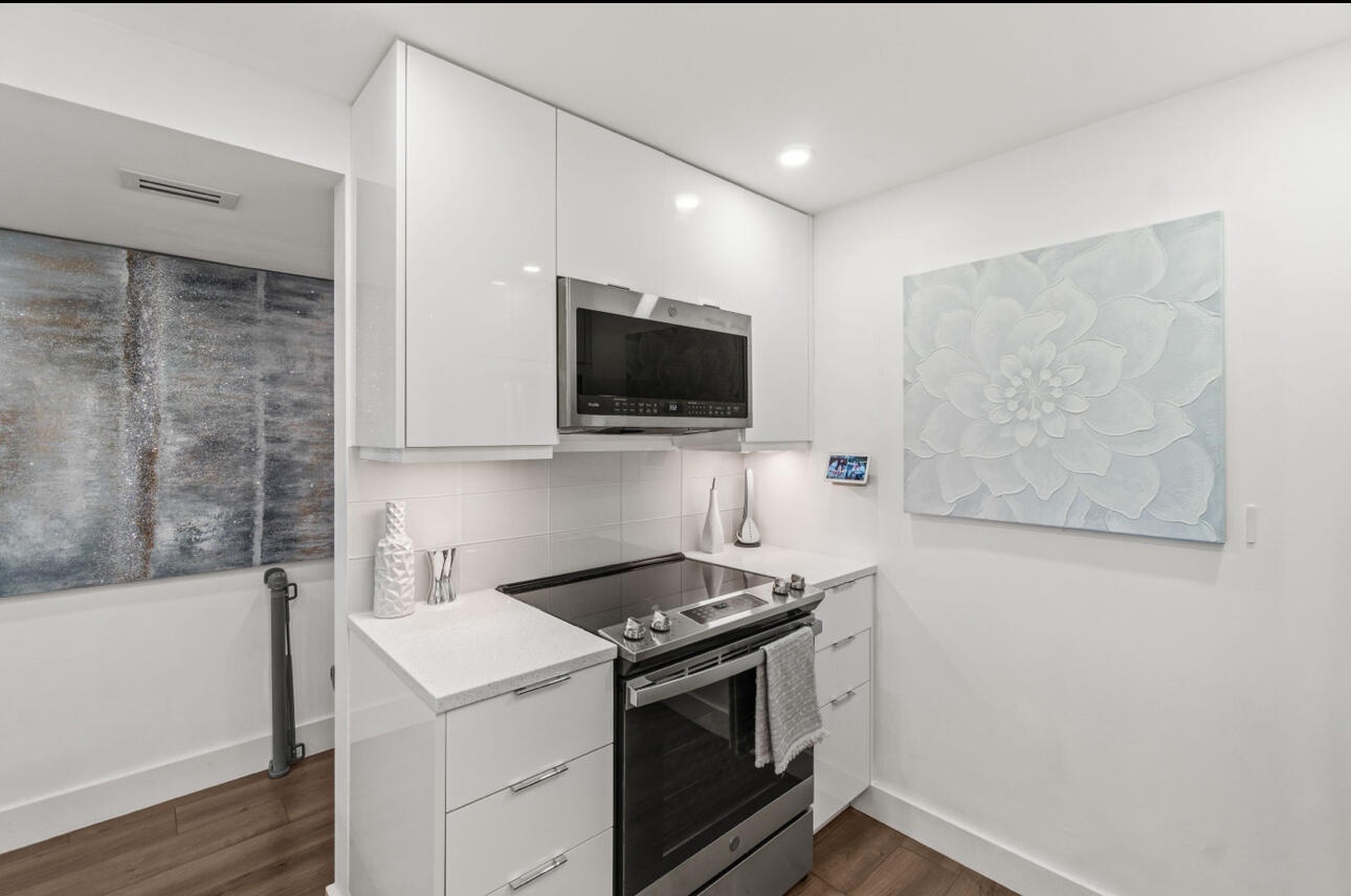 ***Modern Corner Unit with Smart Upgrades & Pool Views!***This private 2/2 corner unit offers direct stair access to your 1st row parking spot and a stunning 180 balcony overlooking the pool. Inside you'll find luxury finishes & smart-home features throughout. Large format porcelain tile on balcony, new ESW impact windows and sliding door, luxury laminate flooring, skimmed ceilings, recessed led lighting, Ring doorbell, Lutron Caseta, smart switches and dimmers, Honeywell Wi-Fi thermostat, LED undercabinet lighting with plugs, Quartz countertops in kitchen & master bathroom, Moen & Pfister plumbing fixtures, high gloss lacquer cabinets, new Bosch dishwasher, GE profile new appliances, Porcelain tile showers and baths, Screwless wall plates, Elfa closet systems,