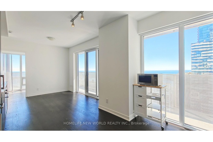 DescriptionElevated on the 48th floor, this bright 3-bedroom, 2-bathroom corner suite offers sweeping, unobstructed southwest views of Lake Ontario and striking perspectives of Toronto's downtown buildings from tall, expansive windows and a spacious wrap-around balcony. The residence is thoughtfully designed with smooth ceilings, hardwood flooring throughout, and upgraded stone floors in both bathrooms for a refined finish. A modern open-concept kitchen with integrated appliances and generous counter space anchors the living area, perfect for entertaining or quiet evenings at home. Enjoy the rare convenience of an included underground parking space and direct connection to Toronto's underground PATH system, providing seamless access to Union Station, Scotiabank Arena, Rogers Centre, the Financial and Entertainment Districts, and the Waterfront. World-class building amenities include a 24-hour concierge, indoor pool, fully equipped fitness centre, party and media rooms, children's play area, and an outdoor terrace with BBQs and lounge spaces. This exceptional residence offers luxury living with unmatched lake views and the best of downtown convenience.Amenities- Bike Storage