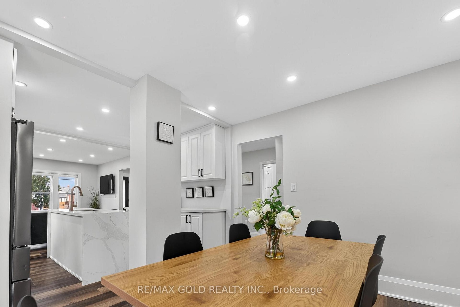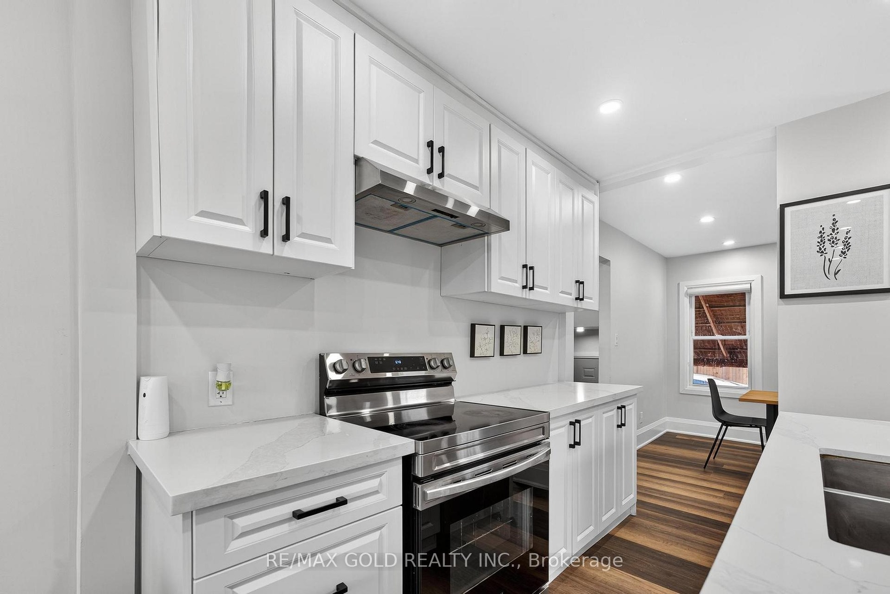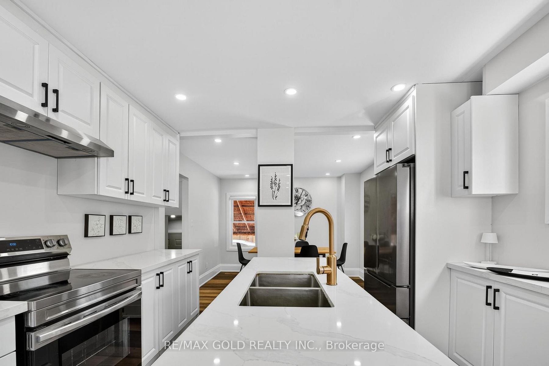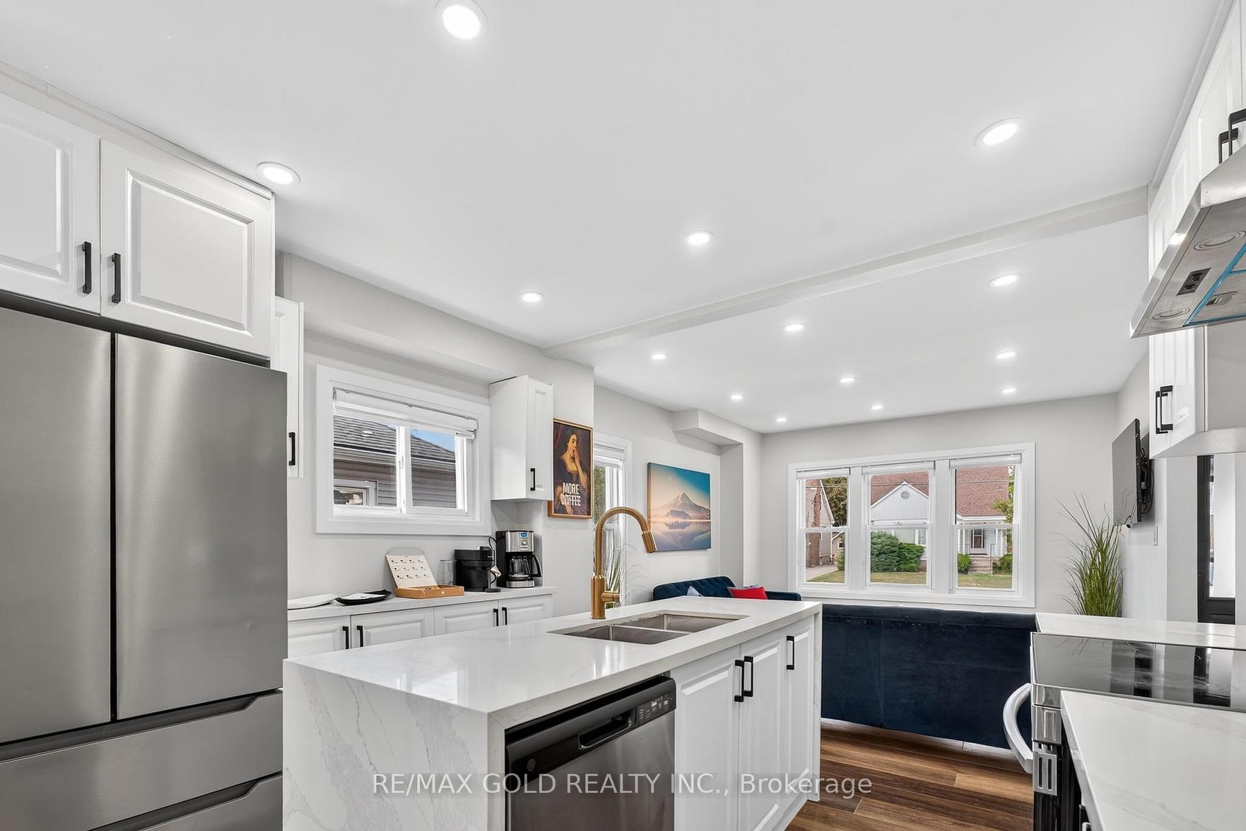 Completely upgraded 4-bed, 4-bath home with bright open-concept foyer, modern lighting, and extravagant quartz-island kitchen with ample storage. Elegant oak staircase leads to spacious bedrooms with rare 10-ft ceilings and upper-level laundryBathrooms feature large porcelain tiles and walk-in showers. Fresh asphalt driveway and private fenced yard with custom bamboo gazebo and exterior lighting perfect for entertaining.