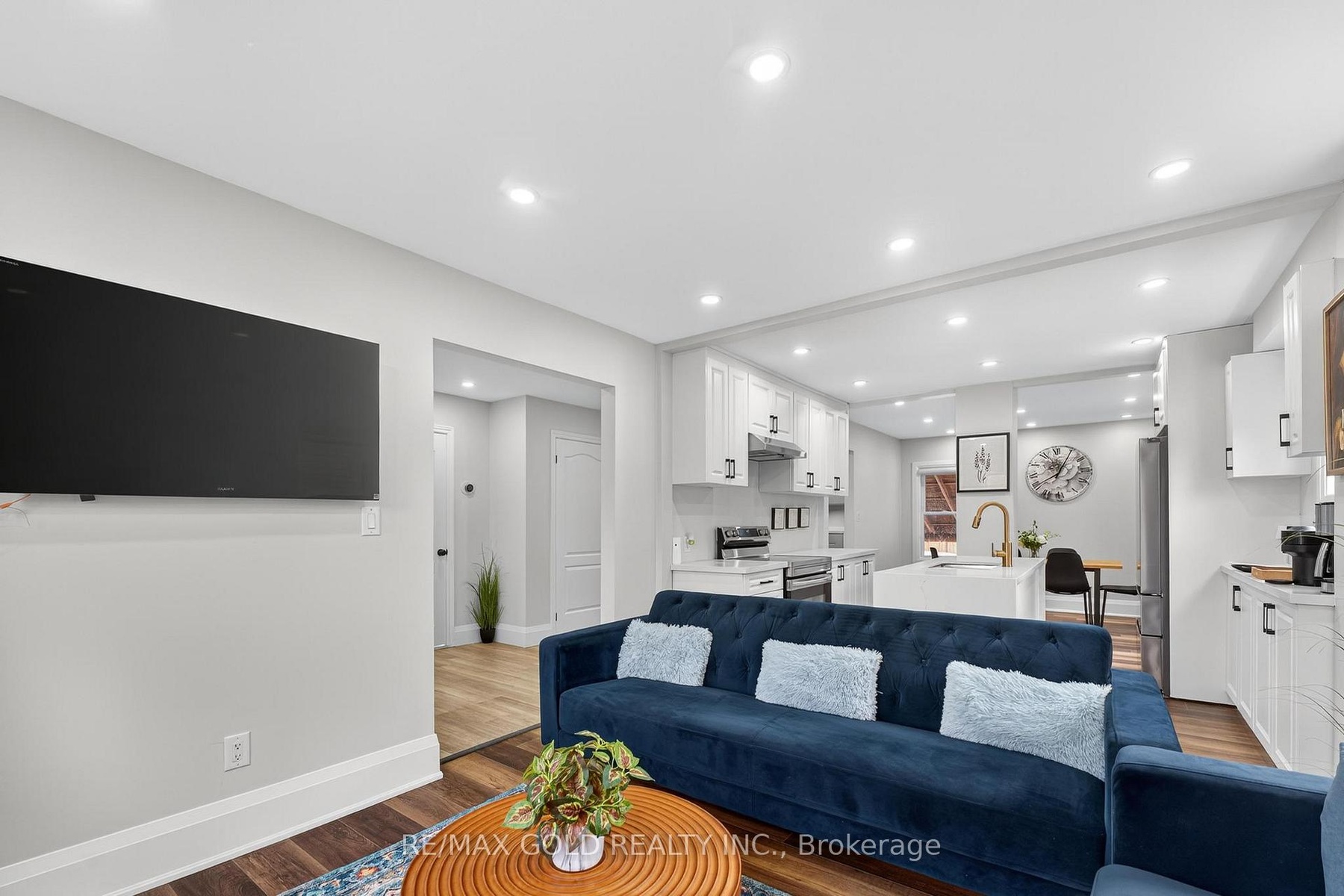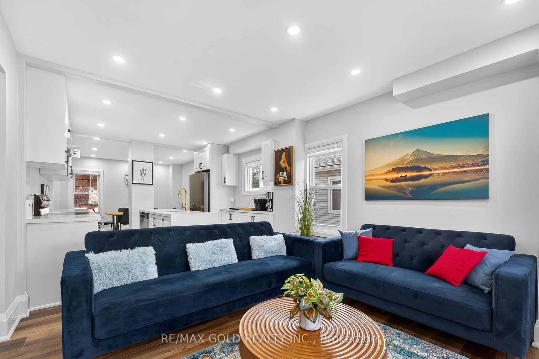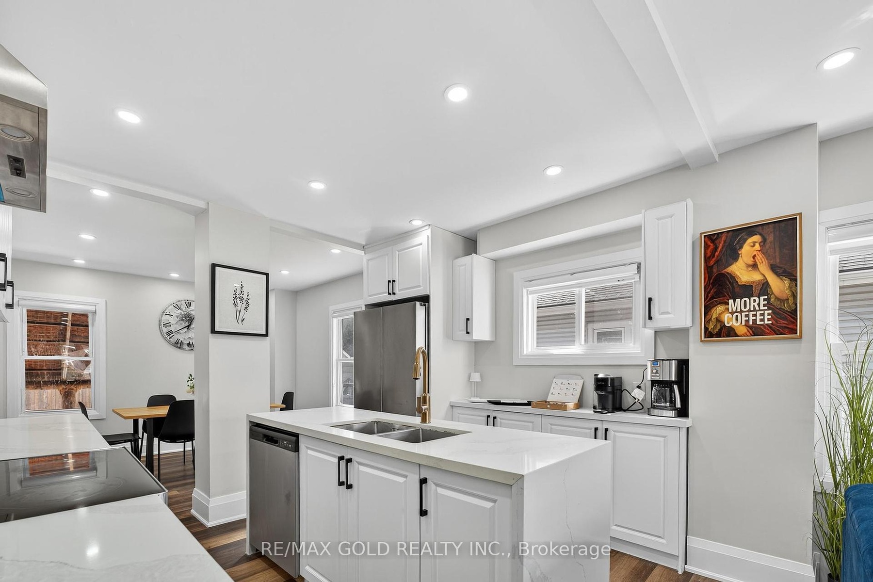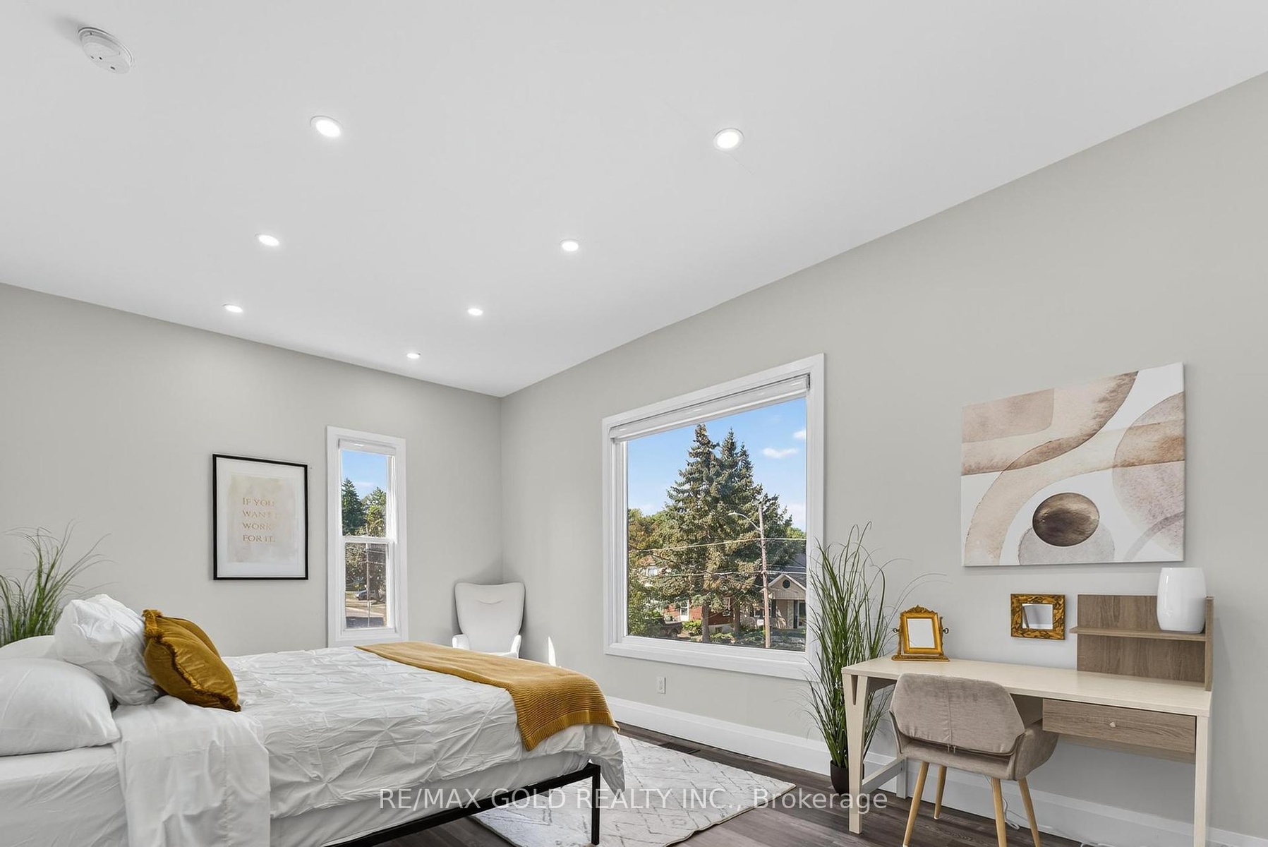 Completely upgraded 4-bed, 4-bath home with bright open-concept foyer, modern lighting, and extravagant quartz-island kitchen with ample storage. Elegant oak staircase leads to spacious bedrooms with rare 10-ft ceilings and upper-level laundryBathrooms feature large porcelain tiles and walk-in showers. Fresh asphalt driveway and private fenced yard with custom bamboo gazebo and exterior lighting perfect for entertaining.