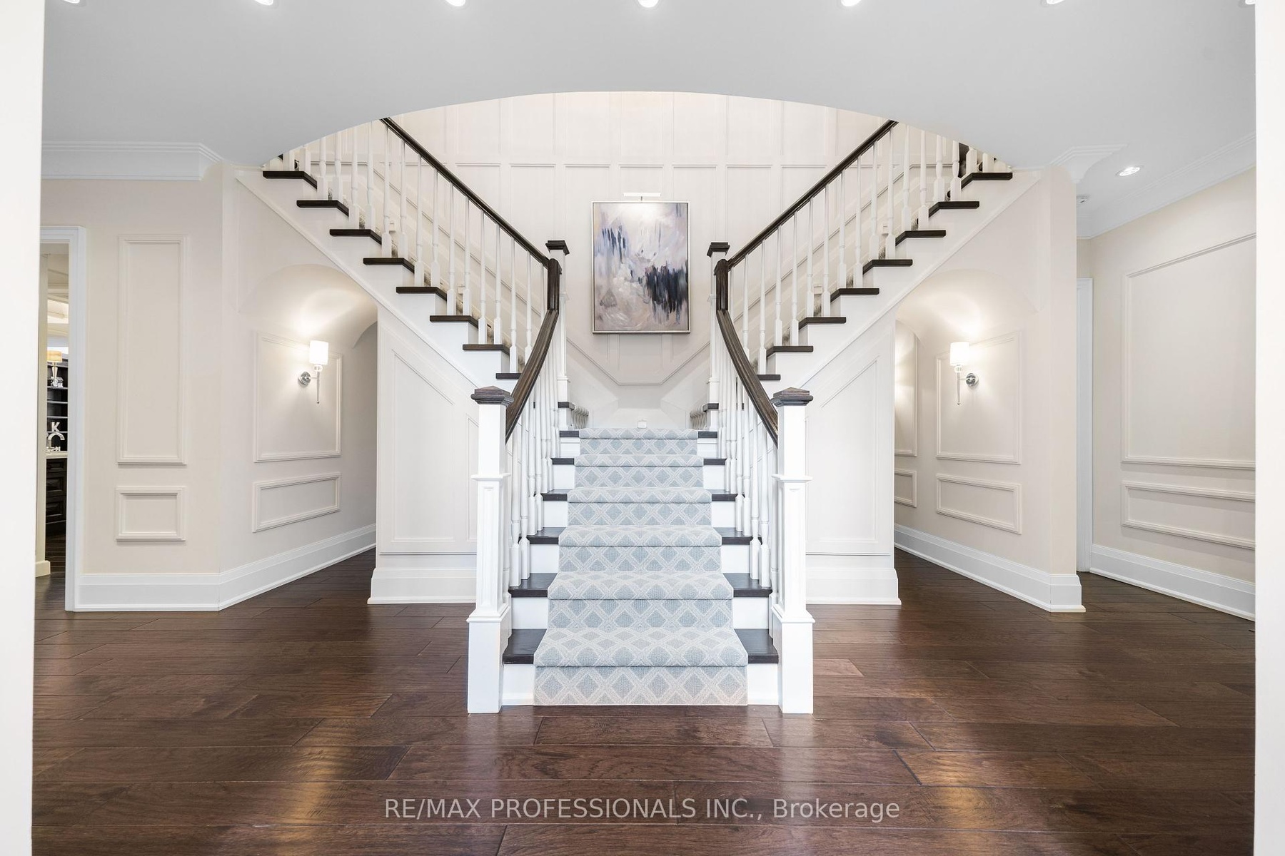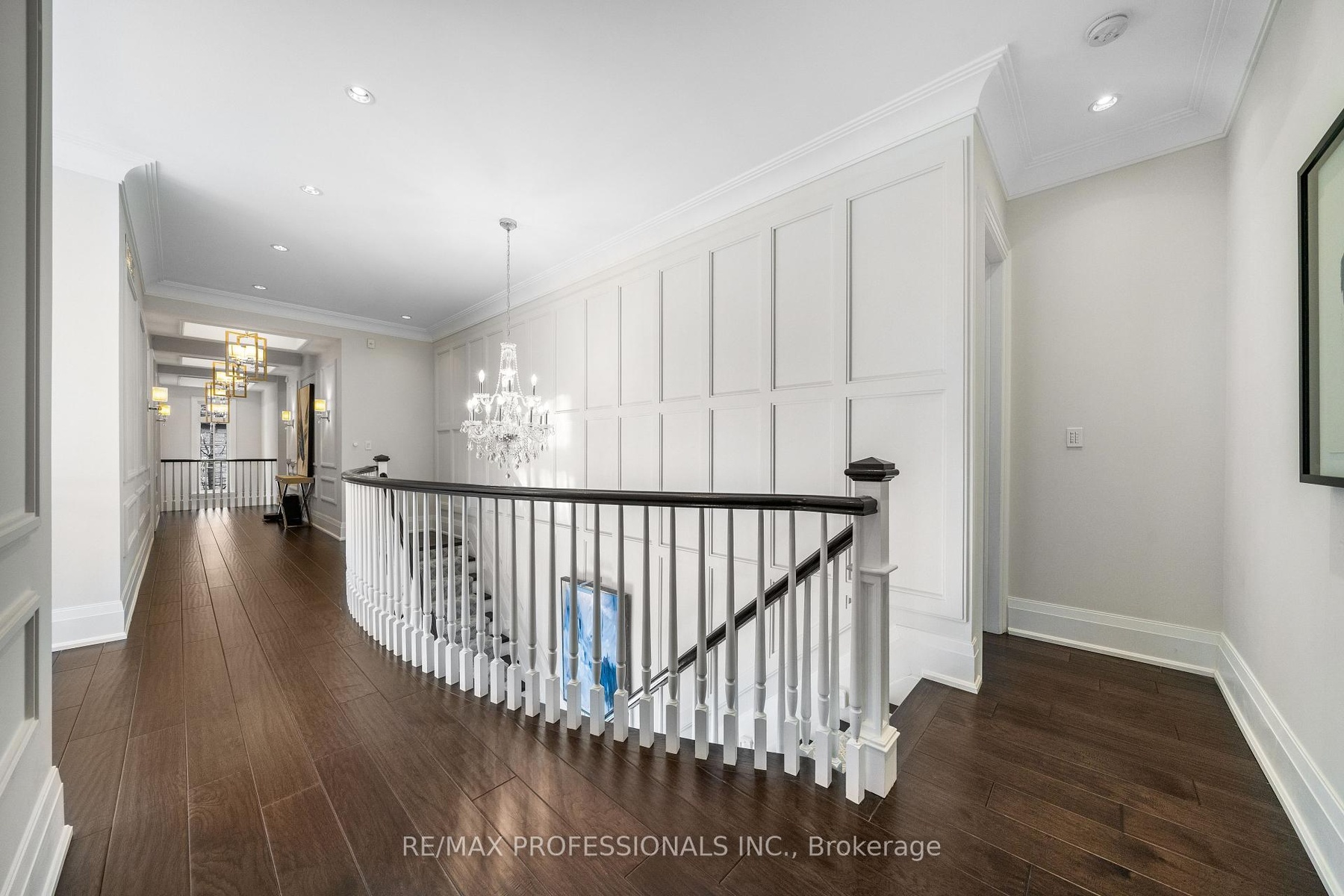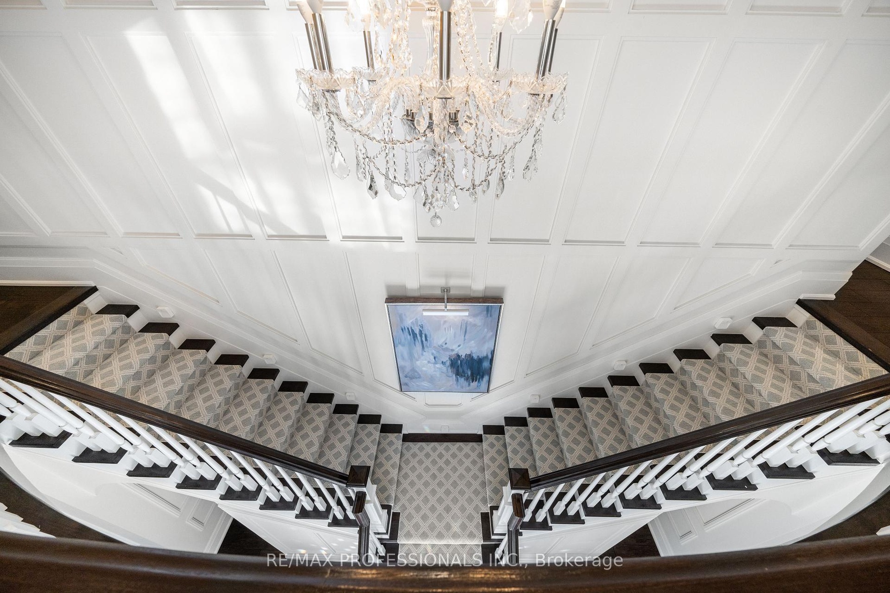 Nestled in the heart of prestigious Mineola West, this exceptional custom-built estate offers over 11,000 sq ft of elegantly finished living space on a stunning 95 x 181 lot. Designed with timeless European influence and unparalleled craftsmanship, this 5+1 bedroom, 11 bathroom residence is the epitome of luxury and sophistication. Step into the grand foyer with soaring ceilings, exquisite millwork, and sightlines that reveal the thoughtful symmetry and scale throughout. The expansive main level features 12-ft ceilings, a formal dining room, oversized family room, library, and a dream kitchen complete with high-end appliances, built-in organizers, a generous breakfast area, and a fully outfitted butlers pantry for seamless entertaining. The luxurious primary retreat is a true sanctuary, offering two spa-like ensuite bathrooms, dual walk-in closets, a gas fireplace, and a private terrace overlooking the professionally landscaped backyard. The lower level is an entertainers haven, featuring a state-of-the-art movie theatre, fitness centre, games room, radiant heated flooring, and a fully self-contained nanny/in-law suite with its own kitchen and walk-up entrance. Additional highlights include: Heated flooring throughout lower level and bathrooms. Home automation with Crestron smart system. Three staircases for functionality and flow. Parking for up to 20 vehicles. Detached garage. Professionally landscaped grounds with potential for a pool Ideally located just minutes from the QEW, Port Credit Village, Lake Ontario, top-rated public and private schools, and less than 30 minutes to downtown Toronto. This is a rare opportunity to own one of Mineolas most iconic residences offering classic architecture, modern luxury, and an unrivaled lifestyle. ** Feng Shui Certified by Master Paul Ng. Home Is High Cycle for Wealth. 5 Wealth Centres + Powerful Energies for Studies, Relations & Health**