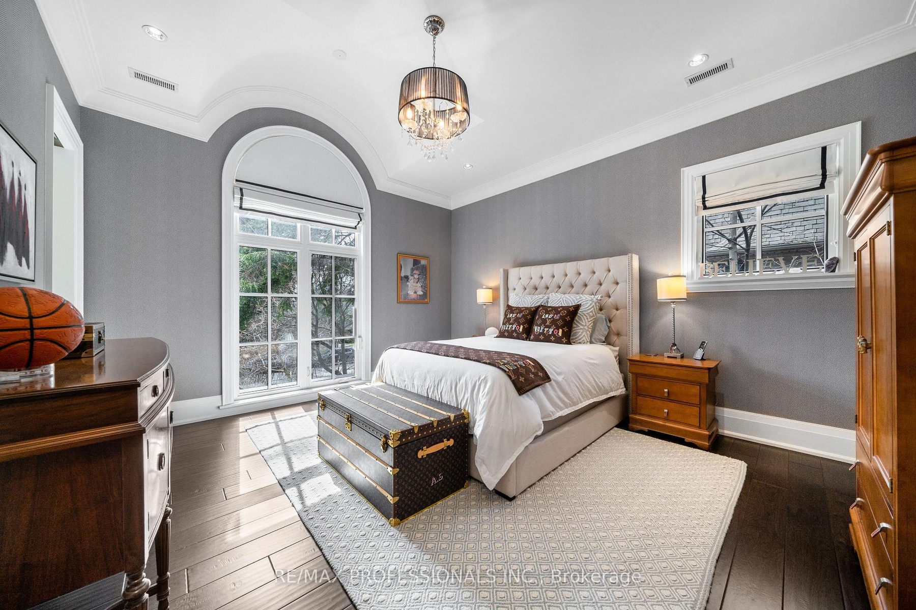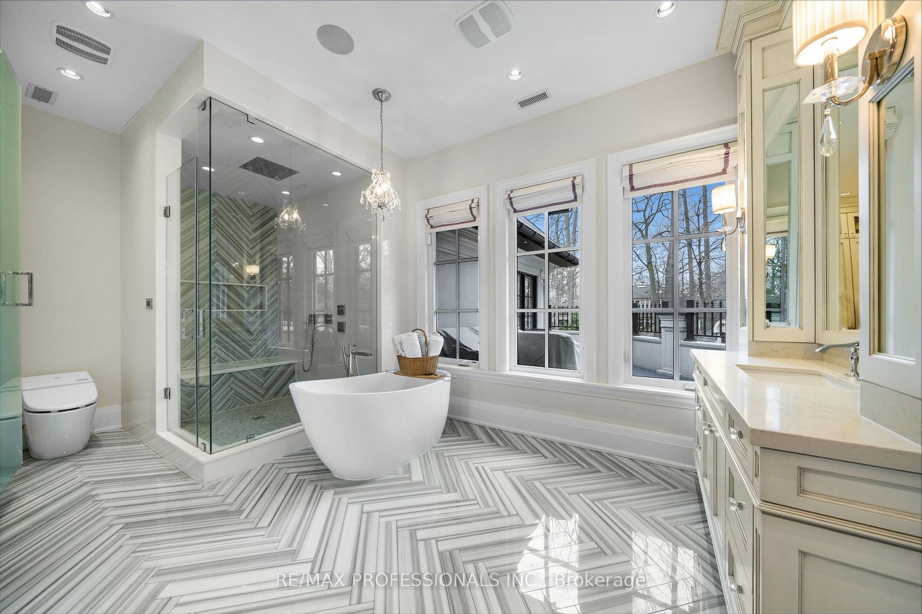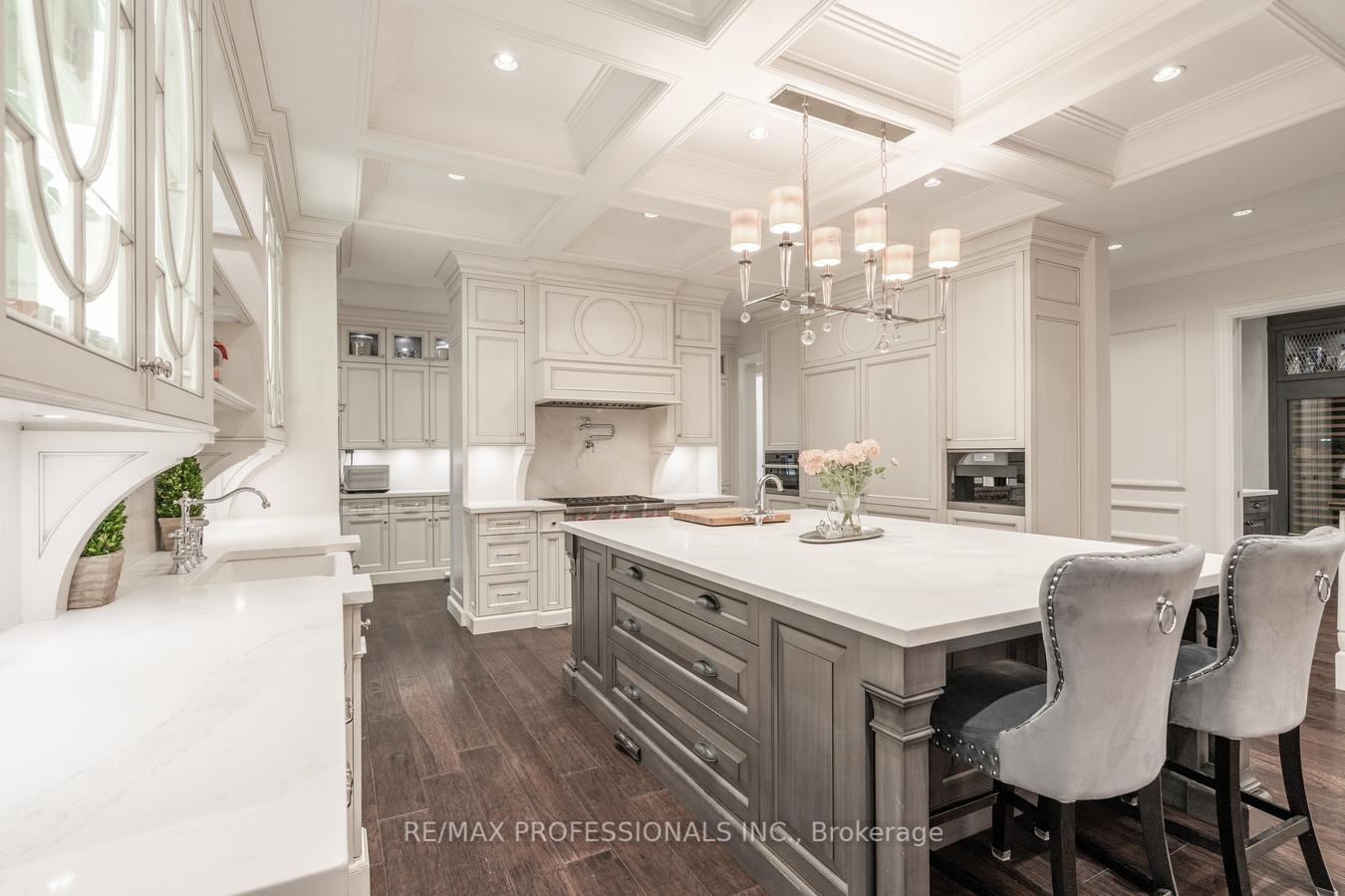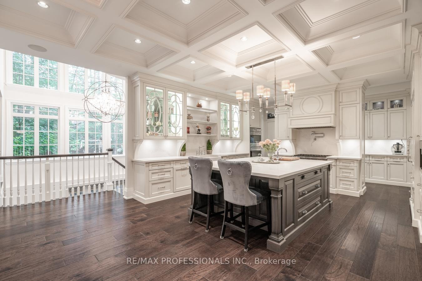 Nestled in the heart of prestigious Mineola West, this exceptional custom-built estate offers over 11,000 sq ft of elegantly finished living space on a stunning 95 x 181 lot. Designed with timeless European influence and unparalleled craftsmanship, this 5+1 bedroom, 11 bathroom residence is the epitome of luxury and sophistication. Step into the grand foyer with soaring ceilings, exquisite millwork, and sightlines that reveal the thoughtful symmetry and scale throughout. The expansive main level features 12-ft ceilings, a formal dining room, oversized family room, library, and a dream kitchen complete with high-end appliances, built-in organizers, a generous breakfast area, and a fully outfitted butlers pantry for seamless entertaining. The luxurious primary retreat is a true sanctuary, offering two spa-like ensuite bathrooms, dual walk-in closets, a gas fireplace, and a private terrace overlooking the professionally landscaped backyard. The lower level is an entertainers haven, featuring a state-of-the-art movie theatre, fitness centre, games room, radiant heated flooring, and a fully self-contained nanny/in-law suite with its own kitchen and walk-up entrance. Additional highlights include: Heated flooring throughout lower level and bathrooms. Home automation with Crestron smart system. Three staircases for functionality and flow. Parking for up to 20 vehicles. Detached garage. Professionally landscaped grounds with potential for a pool Ideally located just minutes from the QEW, Port Credit Village, Lake Ontario, top-rated public and private schools, and less than 30 minutes to downtown Toronto. This is a rare opportunity to own one of Mineolas most iconic residences offering classic architecture, modern luxury, and an unrivaled lifestyle. ** Feng Shui Certified by Master Paul Ng. Home Is High Cycle for Wealth. 5 Wealth Centres + Powerful Energies for Studies, Relations & Health**