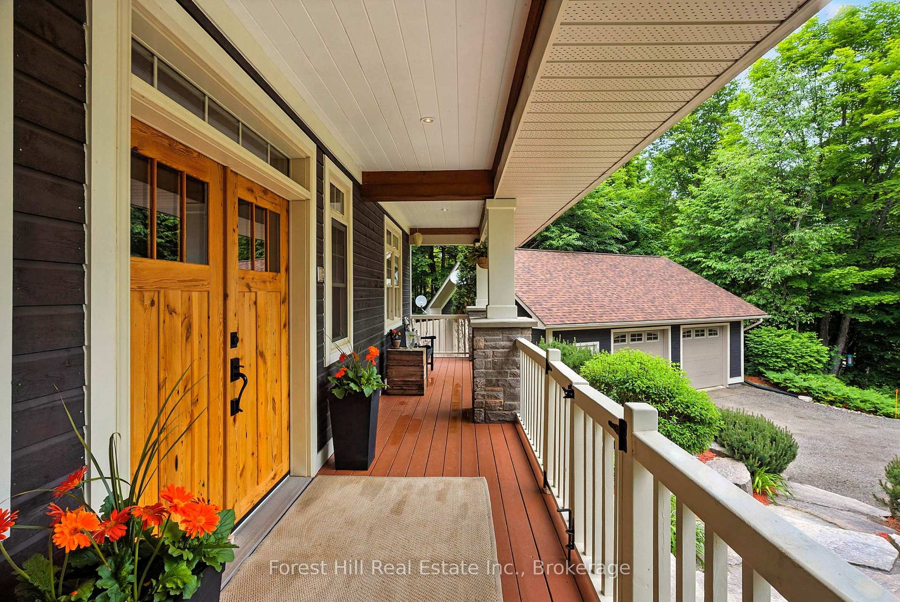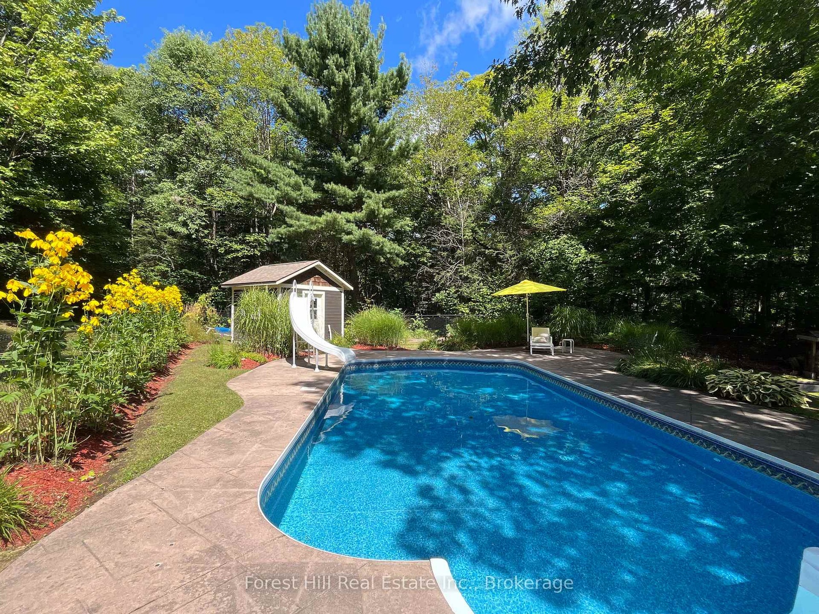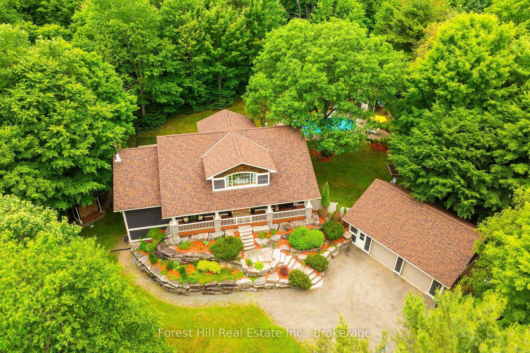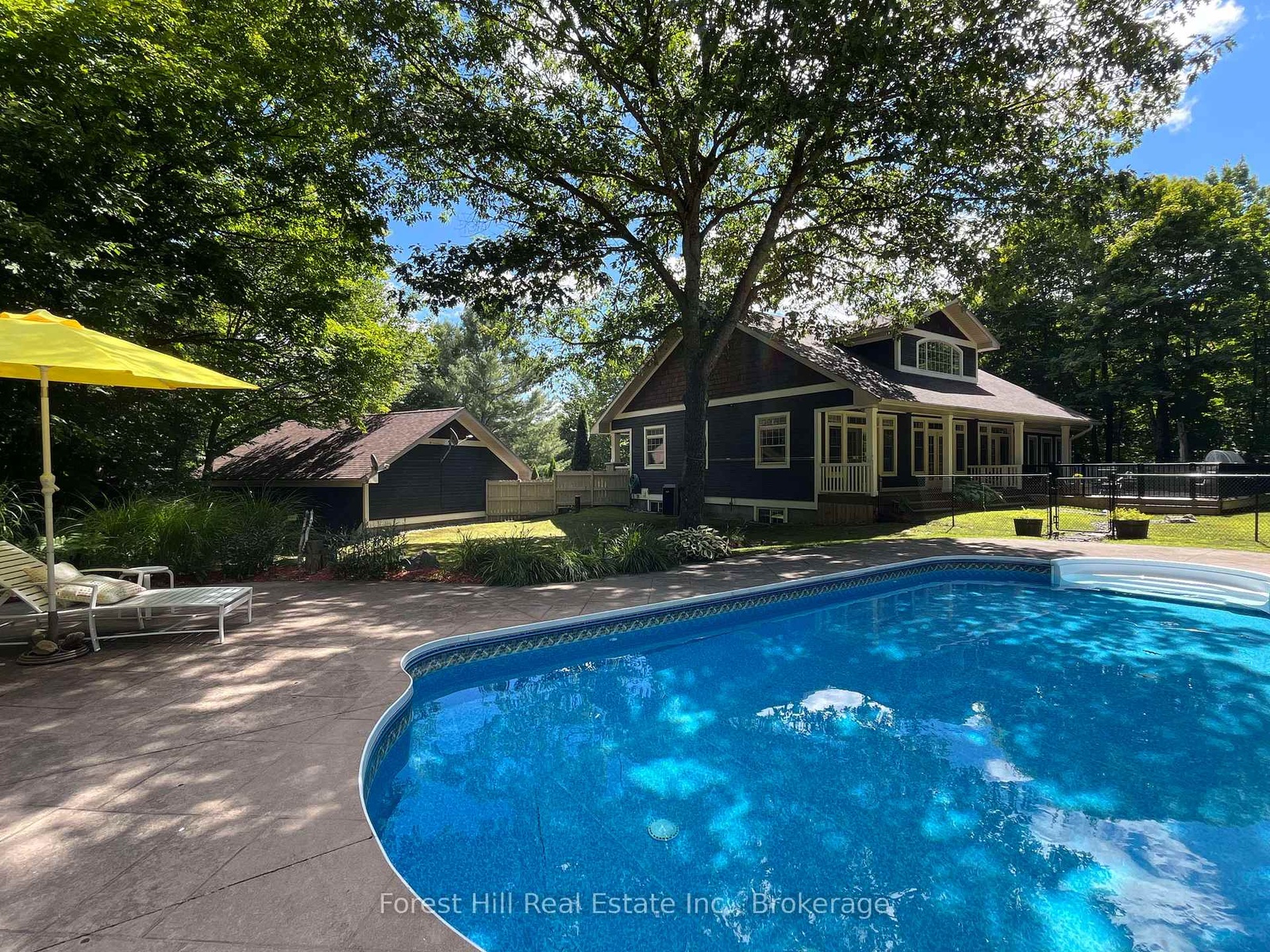 Escape to the Country! To a blissful haven in the woods. Ensconce yourselves in the wonders of a cozy retreat in nature, far from all stresses external. Peaceful, home sweet home. It's said there's no place like home - and really, there's no place like this one! A custom construction of this caliber is a rarity. Thoughtfully designed; incredibly well-built by a true craftsman, then stylishly updated by the current owners to make it even better! Meander up the gentle driveway of this pretty 4+ acres woodsy property - just 10 mins from fun, happening Huntsville - to be greeted by a stunning rock: sanctuary to a resident, cute groundhog. As you reach the heated 2+ garage, majestic landscaping, complete with lighting, draws your eye up to this gorgeous, classic country home. "Wow! This is nice" you think. The striking wood doors get you next. Wait till you open them: Warm, reclaimed elm floors; soaring great room; stone, propane fireplace; chef's kitchen + dining space with views of the gardens, saltwater pool and healing enchanted forest.You'll adore the main-floor master retreat with forest-view ensuite, as sounds of a waterfall lull you to slumber! Then a fragrant Cedar Muskoka room leads out to bubbly hot tub for festive fall dips n lux winter soaks. The backyard is an entertainer's paradise for all the friends and fam. The low maint. pool even has a heater for 3-season fun! Lofty, airy, yet cozy spaces, wired for comfort, light and sound, invite you to relax. An auto home generator says you can. The walk-out, fab entertainment level below has efficient wood stove, home gym + lovely private bed n bath for your guests. So if you're ready to say "seee-yaa!" to the city - for a place to reconnect to yourselves and one another - well, life is SO much better in Muskoka. This spot has room for you n your furry friends to roam and invisible fence to keep 'em safe! A wholesome space to live, work, or retire. Don't miss this unique home: Your fun, peaceful life awaits!
