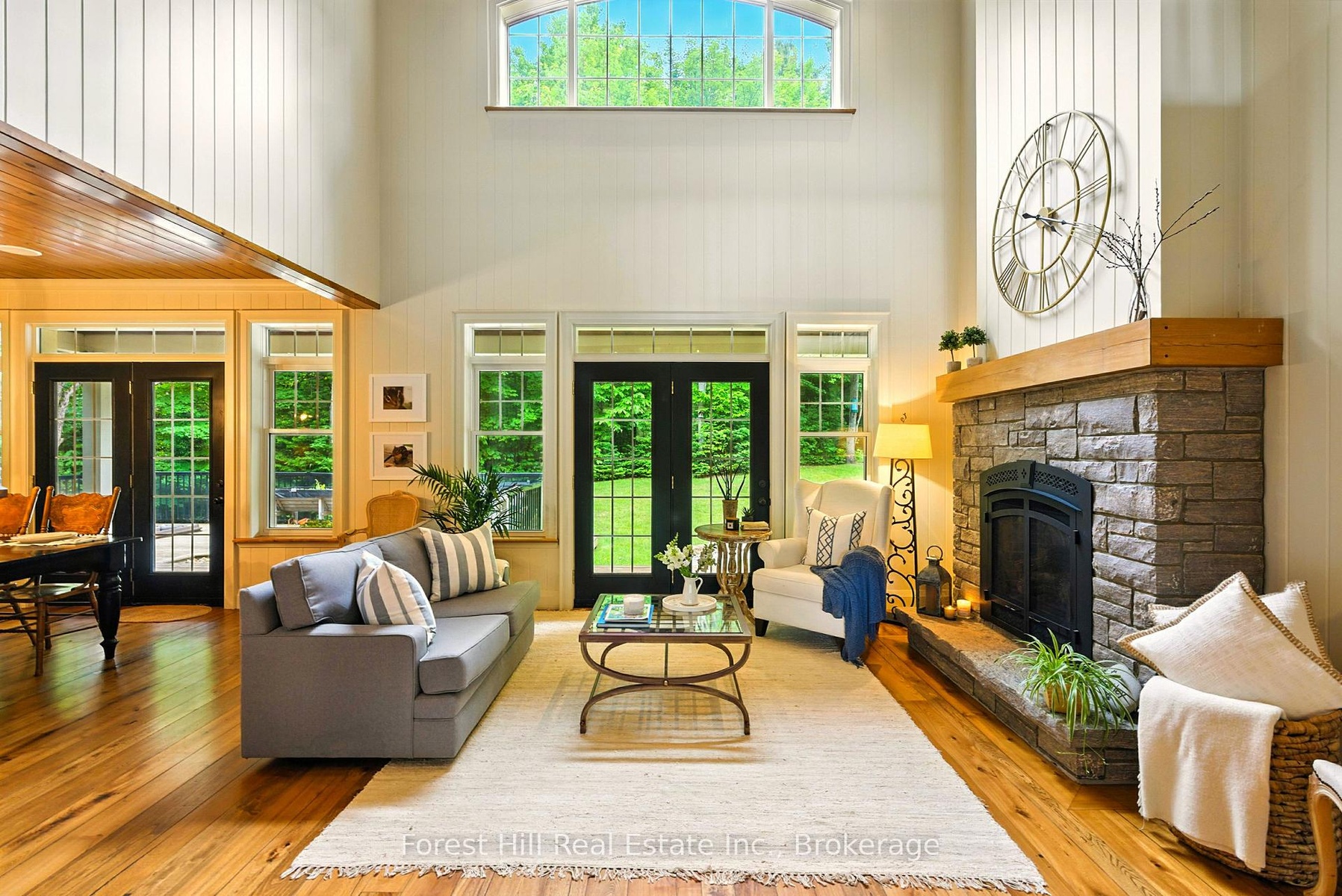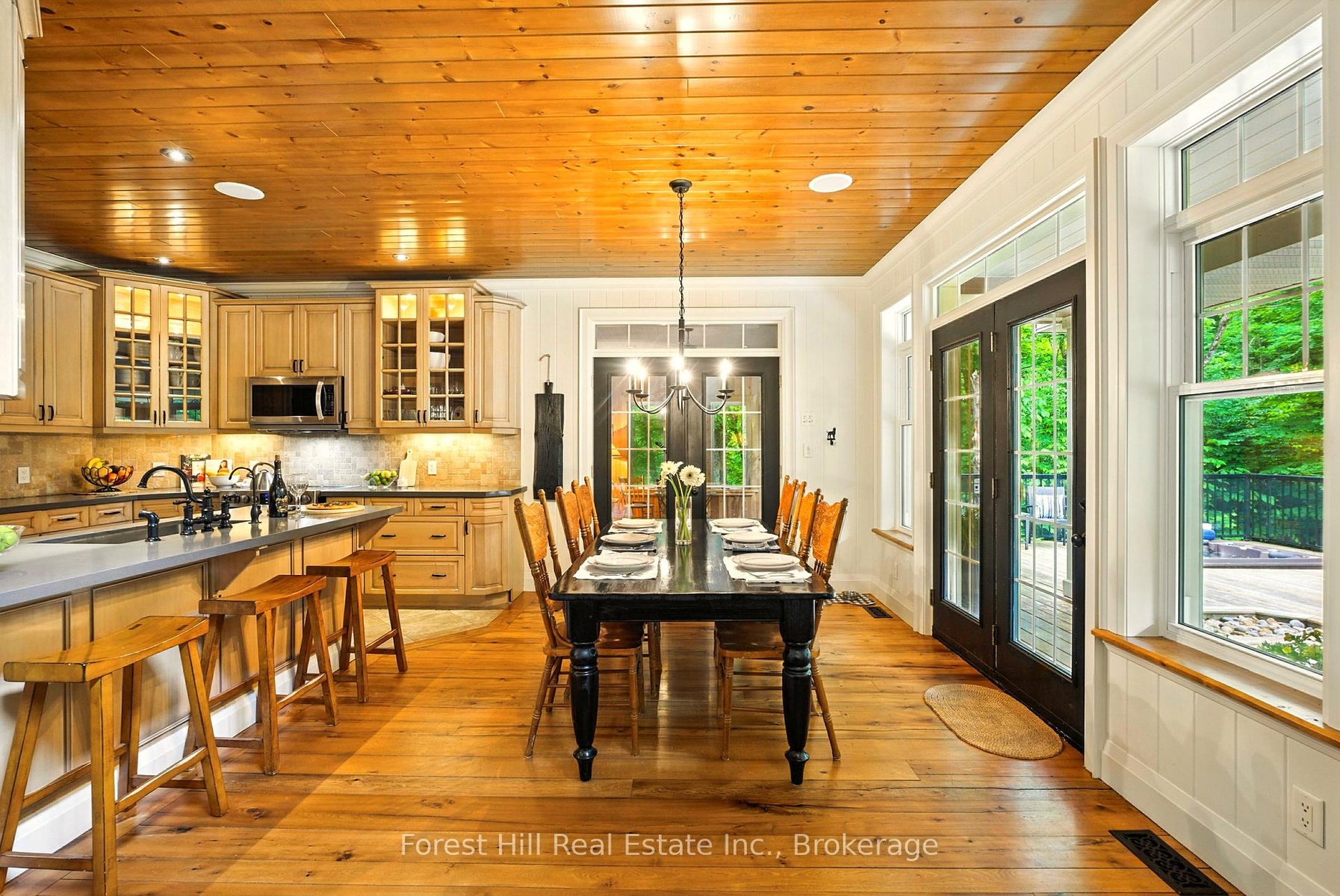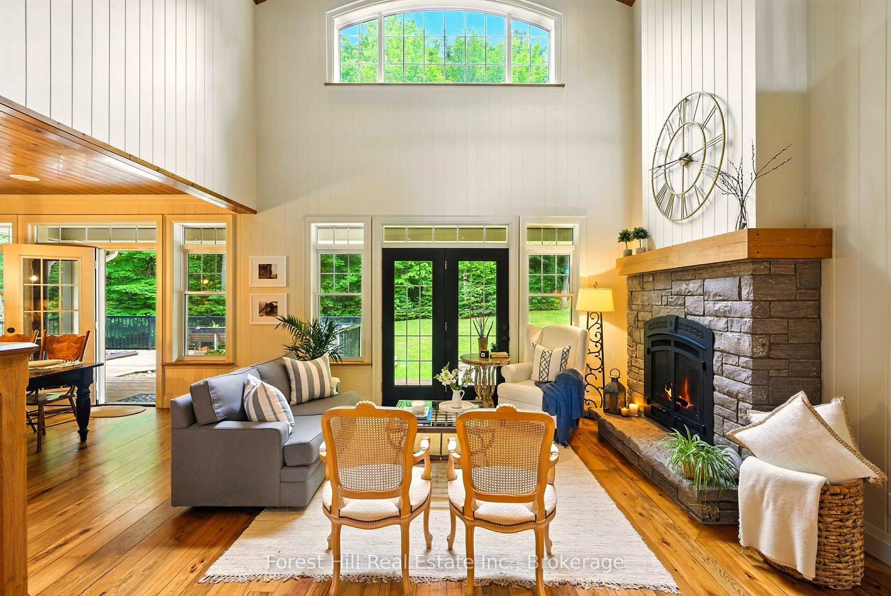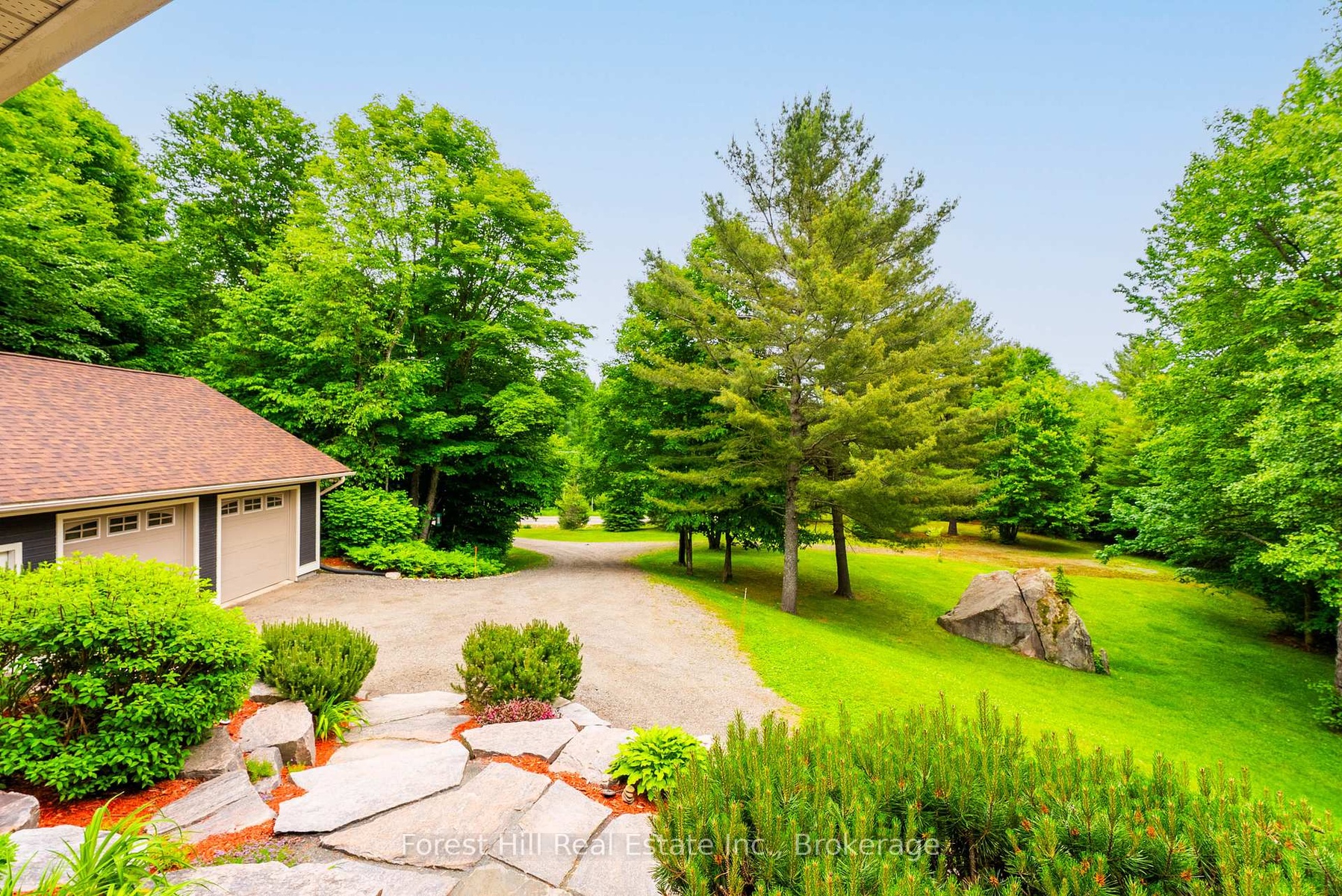 Escape to the Country! To a blissful haven in the woods. Ensconce yourselves in the wonders of a cozy retreat in nature, far from all stresses external. Peaceful, home sweet home. It's said there's no place like home - and really, there's no place like this one! A custom construction of this caliber is a rarity. Thoughtfully designed; incredibly well-built by a true craftsman, then stylishly updated by the current owners to make it even better! Meander up the gentle driveway of this pretty 4+ acres woodsy property - just 10 mins from fun, happening Huntsville - to be greeted by a stunning rock: sanctuary to a resident, cute groundhog. As you reach the heated 2+ garage, majestic landscaping, complete with lighting, draws your eye up to this gorgeous, classic country home. "Wow! This is nice" you think. The striking wood doors get you next. Wait till you open them: Warm, reclaimed elm floors; soaring great room; stone, propane fireplace; chef's kitchen + dining space with views of the gardens, saltwater pool and healing enchanted forest.You'll adore the main-floor master retreat with forest-view ensuite, as sounds of a waterfall lull you to slumber! Then a fragrant Cedar Muskoka room leads out to bubbly hot tub for festive fall dips n lux winter soaks. The backyard is an entertainer's paradise for all the friends and fam. The low maint. pool even has a heater for 3-season fun! Lofty, airy, yet cozy spaces, wired for comfort, light and sound, invite you to relax. An auto home generator says you can. The walk-out, fab entertainment level below has efficient wood stove, home gym + lovely private bed n bath for your guests. So if you're ready to say "seee-yaa!" to the city - for a place to reconnect to yourselves and one another - well, life is SO much better in Muskoka. This spot has room for you n your furry friends to roam and invisible fence to keep 'em safe! A wholesome space to live, work, or retire. Don't miss this unique home: Your fun, peaceful life awaits!