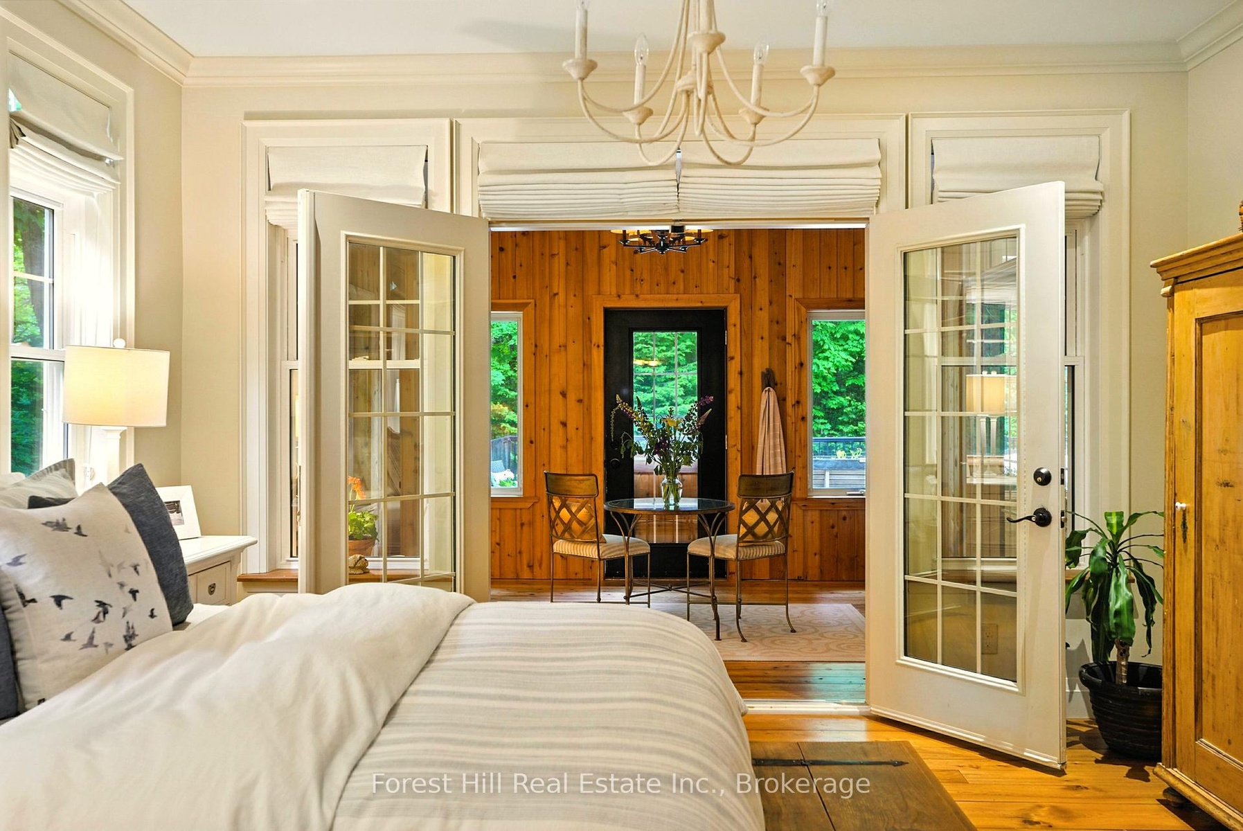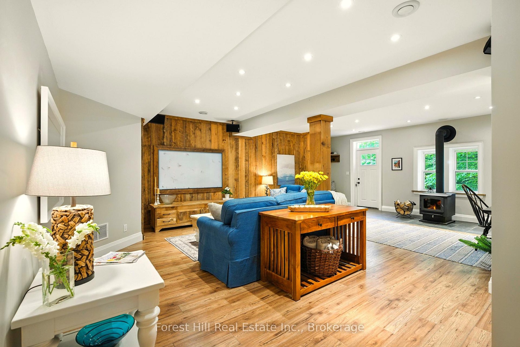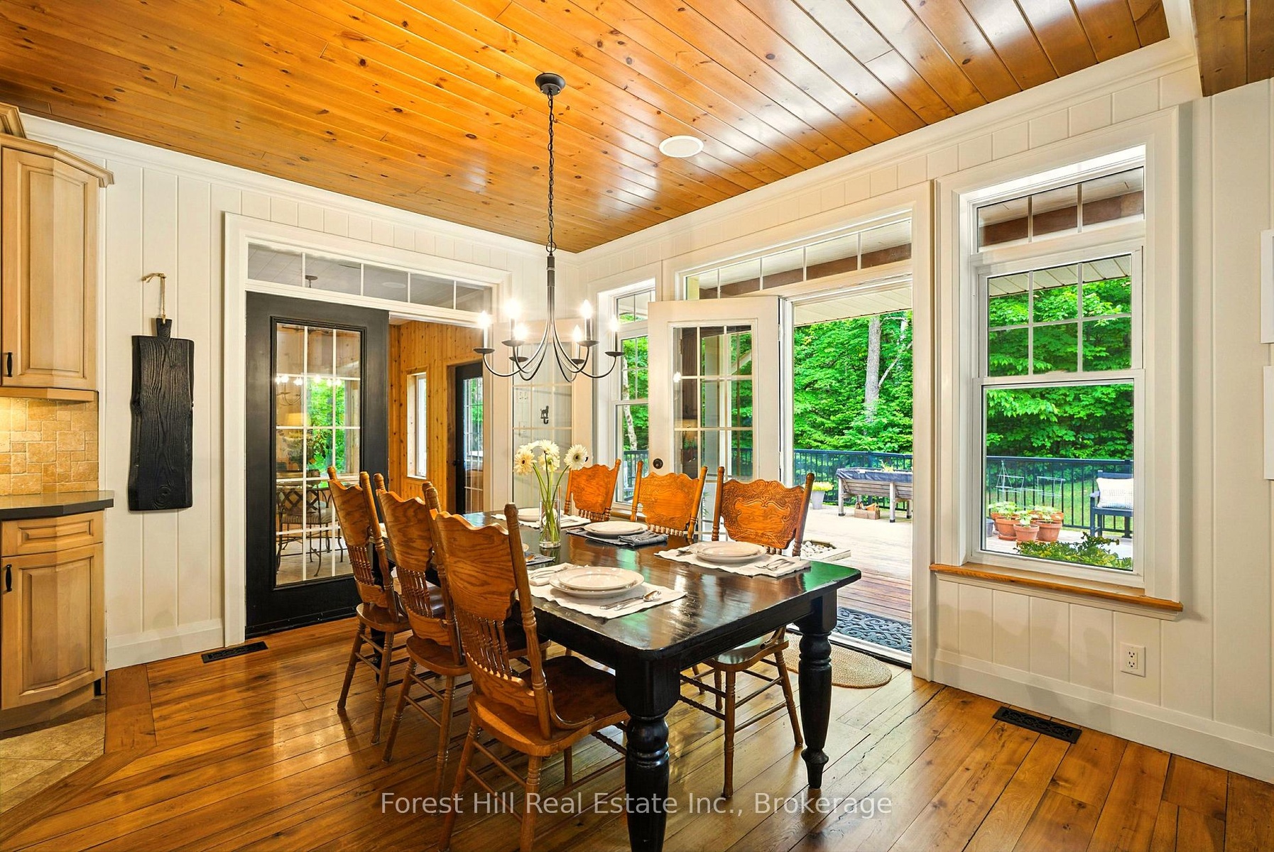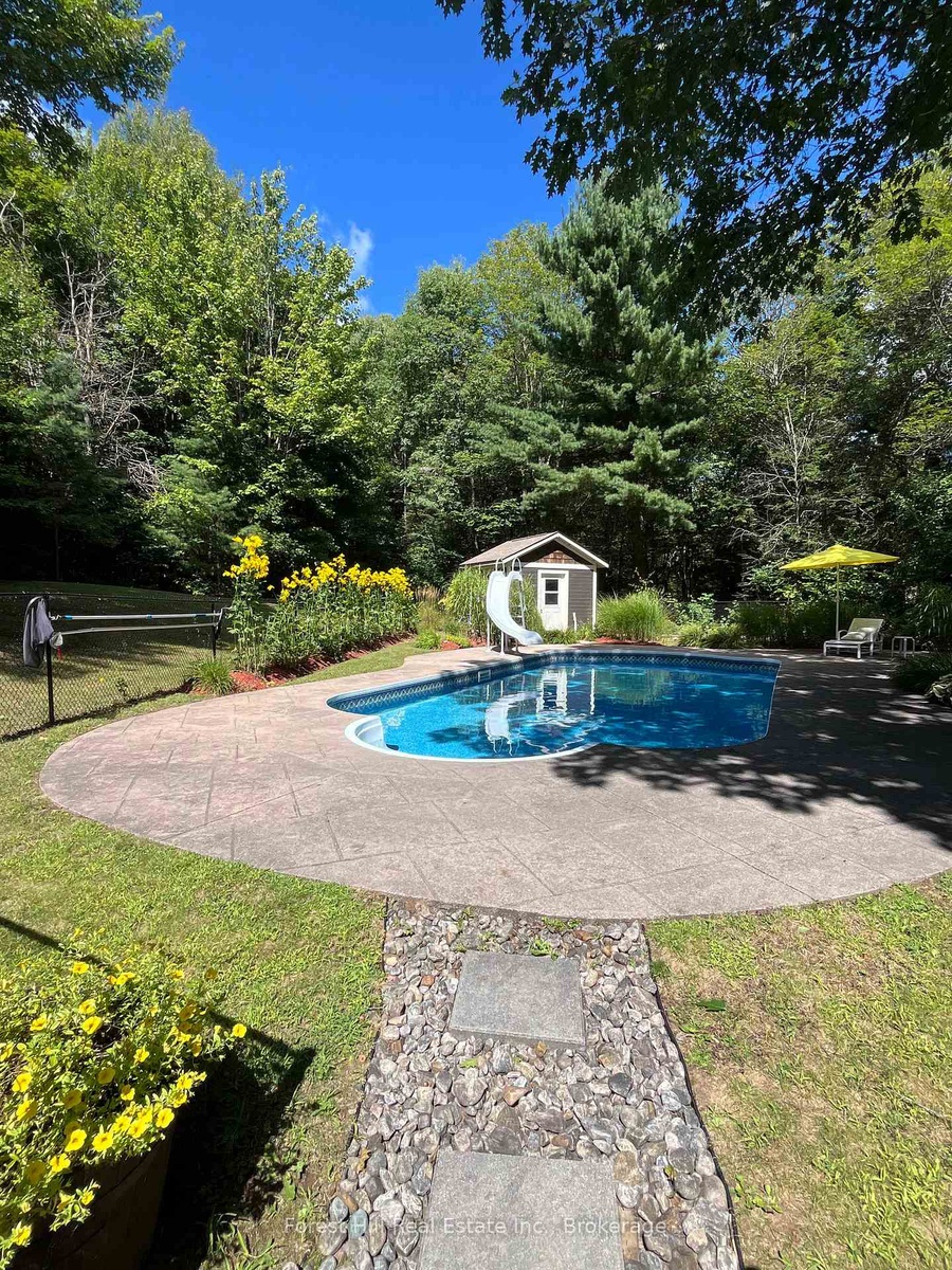 Escape to the Country! To a blissful haven in the woods. Ensconce yourselves in the wonders of a cozy retreat in nature, far from all stresses external. Peaceful, home sweet home. It's said there's no place like home - and really, there's no place like this one! A custom construction of this caliber is a rarity. Thoughtfully designed; incredibly well-built by a true craftsman, then stylishly updated by the current owners to make it even better! Meander up the gentle driveway of this pretty 4+ acres woodsy property - just 10 mins from fun, happening Huntsville - to be greeted by a stunning rock: sanctuary to a resident, cute groundhog. As you reach the heated 2+ garage, majestic landscaping, complete with lighting, draws your eye up to this gorgeous, classic country home. "Wow! This is nice" you think. The striking wood doors get you next. Wait till you open them: Warm, reclaimed elm floors; soaring great room; stone, propane fireplace; chef's kitchen + dining space with views of the gardens, saltwater pool and healing enchanted forest.You'll adore the main-floor master retreat with forest-view ensuite, as sounds of a waterfall lull you to slumber! Then a fragrant Cedar Muskoka room leads out to bubbly hot tub for festive fall dips n lux winter soaks. The backyard is an entertainer's paradise for all the friends and fam. The low maint. pool even has a heater for 3-season fun! Lofty, airy, yet cozy spaces, wired for comfort, light and sound, invite you to relax. An auto home generator says you can. The walk-out, fab entertainment level below has efficient wood stove, home gym + lovely private bed n bath for your guests. So if you're ready to say "seee-yaa!" to the city - for a place to reconnect to yourselves and one another - well, life is SO much better in Muskoka. This spot has room for you n your furry friends to roam and invisible fence to keep 'em safe! A wholesome space to live, work, or retire. Don't miss this unique home: Your fun, peaceful life awaits!