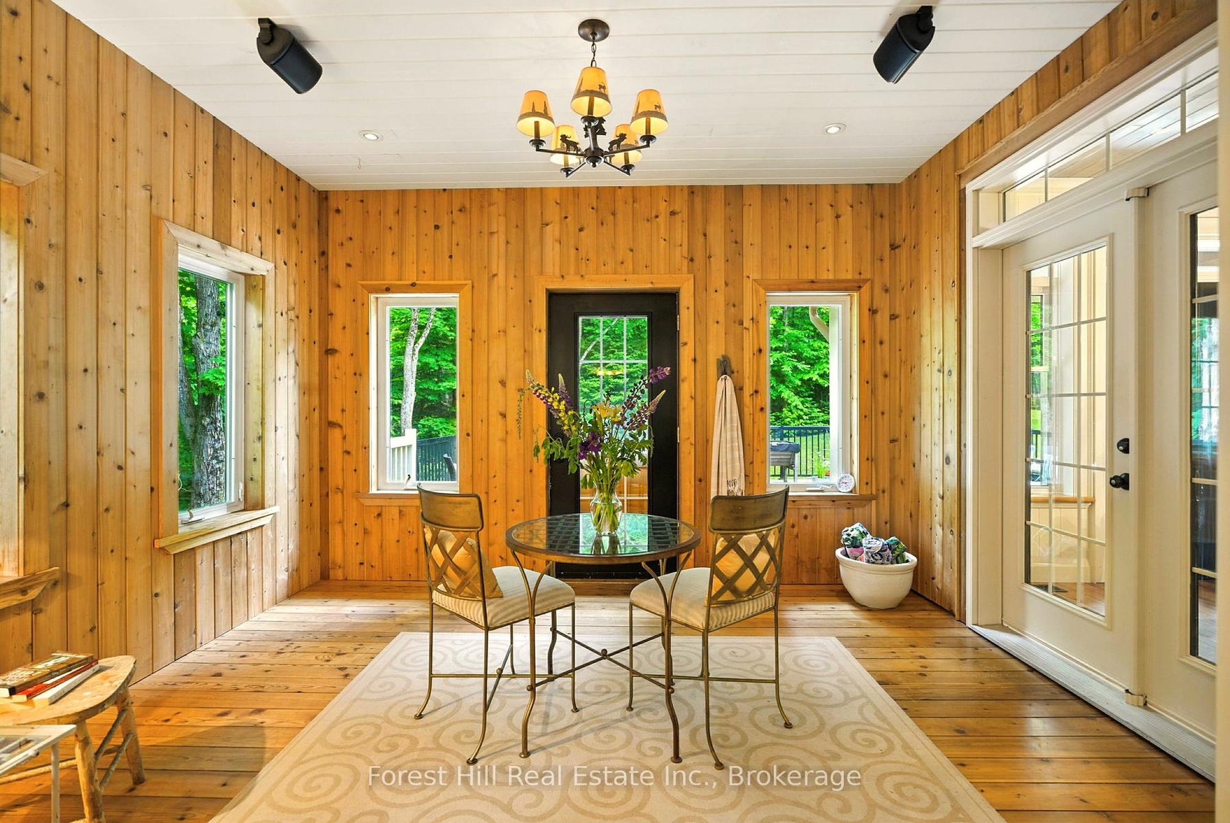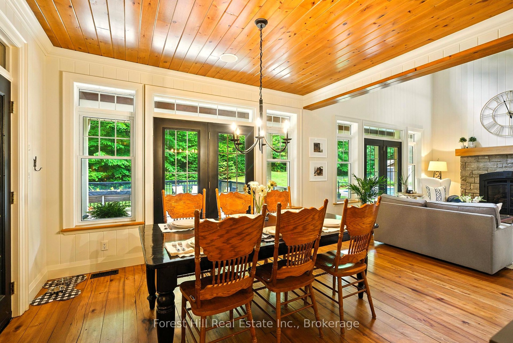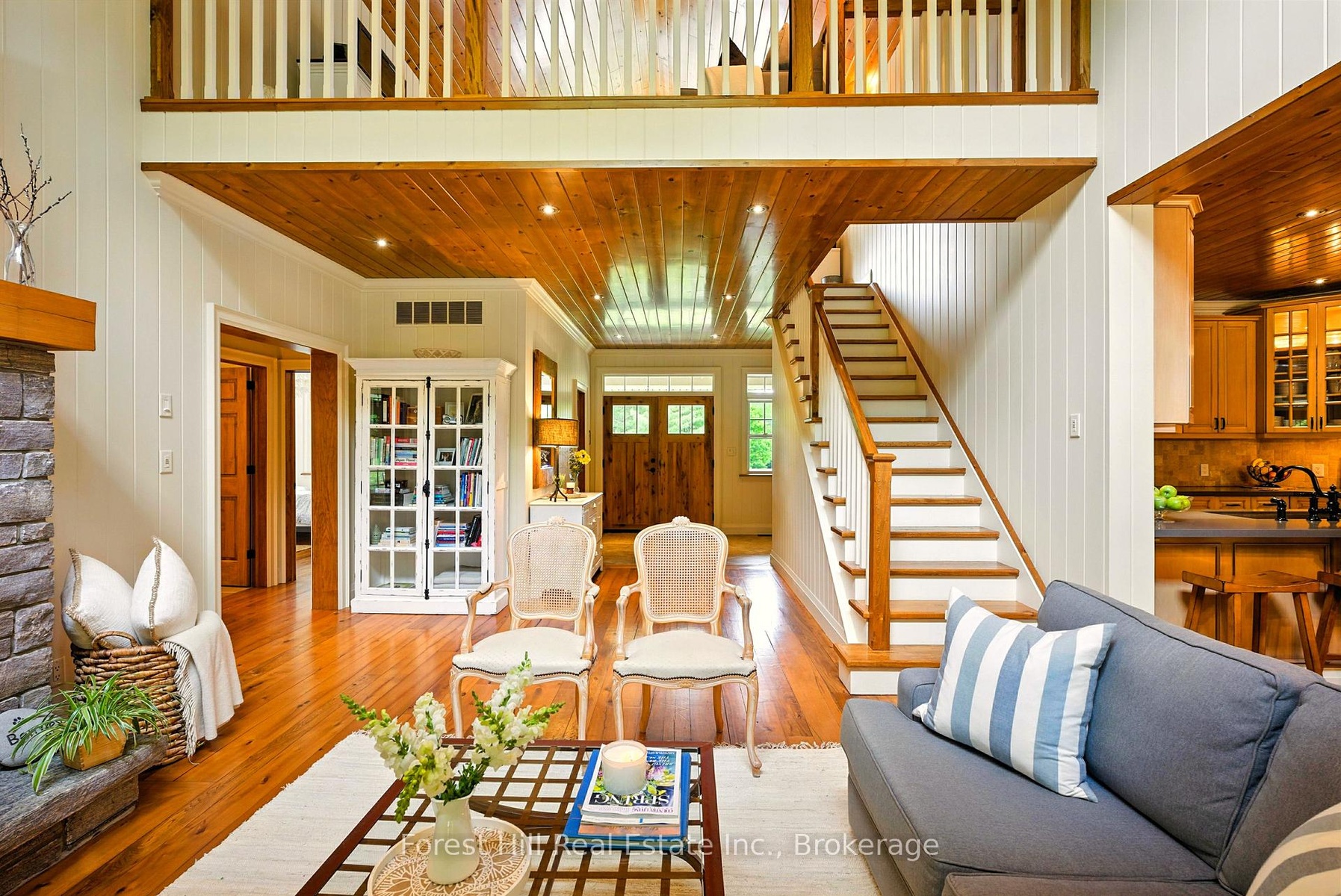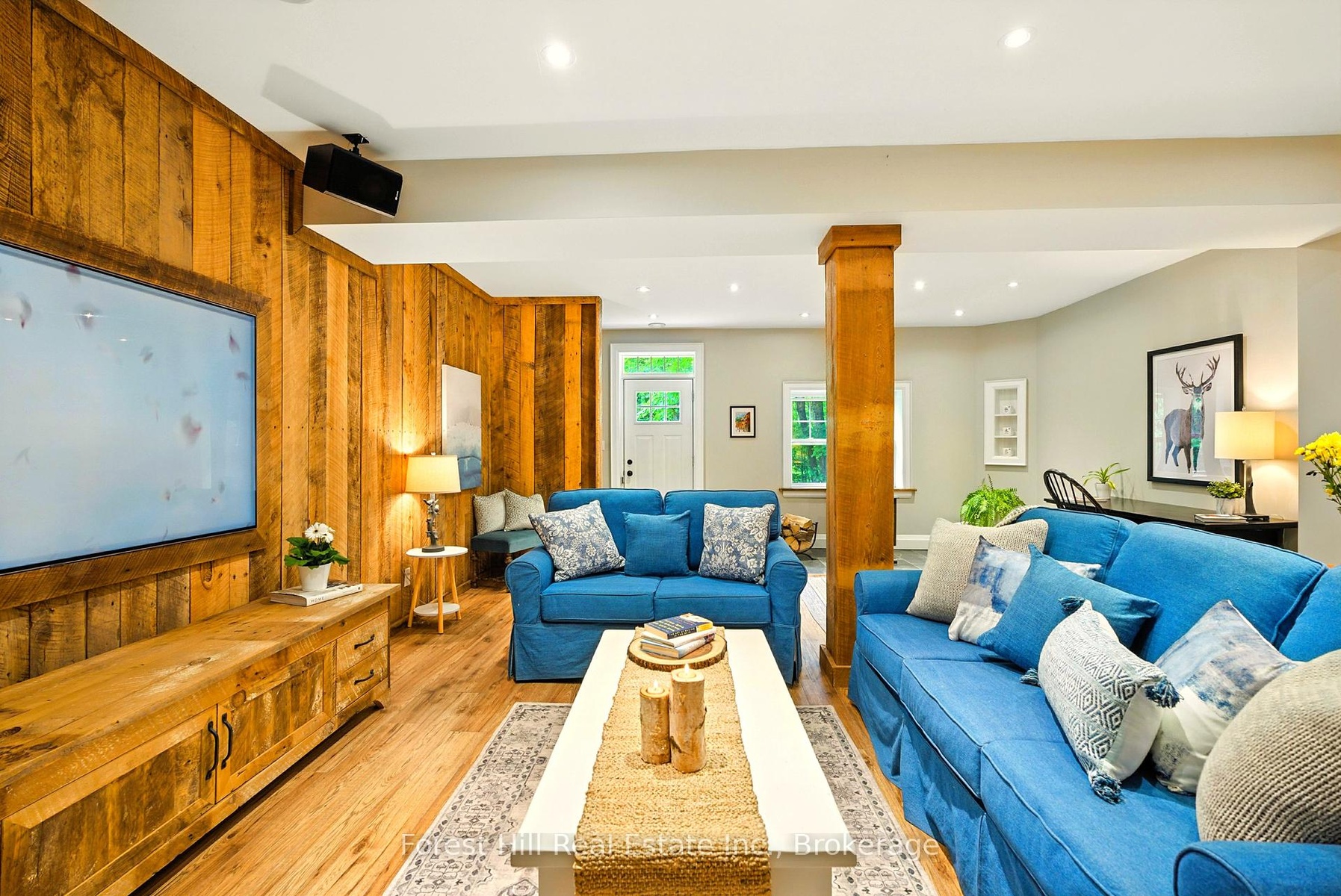 Escape to the Country! To a blissful haven in the woods. Ensconce yourselves in the wonders of a cozy retreat in nature, far from all stresses external. Peaceful, home sweet home. It's said there's no place like home - and really, there's no place like this one! A custom construction of this caliber is a rarity. Thoughtfully designed; incredibly well-built by a true craftsman, then stylishly updated by the current owners to make it even better! Meander up the gentle driveway of this pretty 4+ acres woodsy property - just 10 mins from fun, happening Huntsville - to be greeted by a stunning rock: sanctuary to a resident, cute groundhog. As you reach the heated 2+ garage, majestic landscaping, complete with lighting, draws your eye up to this gorgeous, classic country home. "Wow! This is nice" you think. The striking wood doors get you next. Wait till you open them: Warm, reclaimed elm floors; soaring great room; stone, propane fireplace; chef's kitchen + dining space with views of the gardens, saltwater pool and healing enchanted forest.You'll adore the main-floor master retreat with forest-view ensuite, as sounds of a waterfall lull you to slumber! Then a fragrant Cedar Muskoka room leads out to bubbly hot tub for festive fall dips n lux winter soaks. The backyard is an entertainer's paradise for all the friends and fam. The low maint. pool even has a heater for 3-season fun! Lofty, airy, yet cozy spaces, wired for comfort, light and sound, invite you to relax. An auto home generator says you can. The walk-out, fab entertainment level below has efficient wood stove, home gym + lovely private bed n bath for your guests. So if you're ready to say "seee-yaa!" to the city - for a place to reconnect to yourselves and one another - well, life is SO much better in Muskoka. This spot has room for you n your furry friends to roam and invisible fence to keep 'em safe! A wholesome space to live, work, or retire. Don't miss this unique home: Your fun, peaceful life awaits!