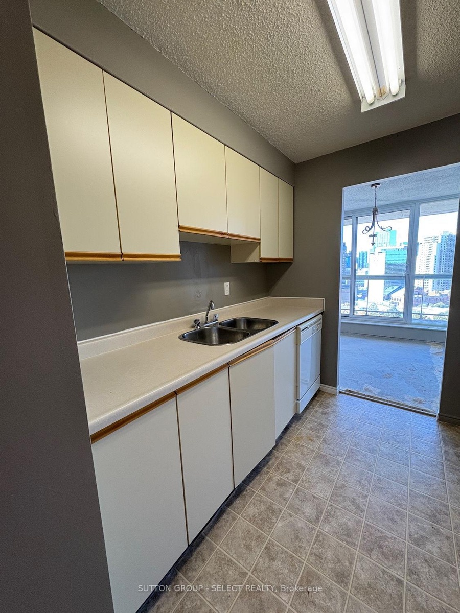 17th floor, 1-bed condo facing west overlooking the downtown area! Beautiful sunset views! Price reflects its need for upgrades. Great layout featuring in-suite laundry, big storage room which many use as a little office, forced air heating & air conditioning, spacious bedroom w/ walk-in closet, balcony & 1 underground parking space. Add value by removing the wall between the kitchen & living room to make for a totally open concept design. Condo fee is $581/mth which includes water. Amenities include: tennis court, heated indoor pool & hot tub (with dedicated times for adults), his/hers sauna, spacious fitness room w/ loads of natural light, party room, bike storage room, common area BBQ'S, party room & guest suite. Approx. 35 free onsite visitor parking spaces. Property tax is $1773/yr.