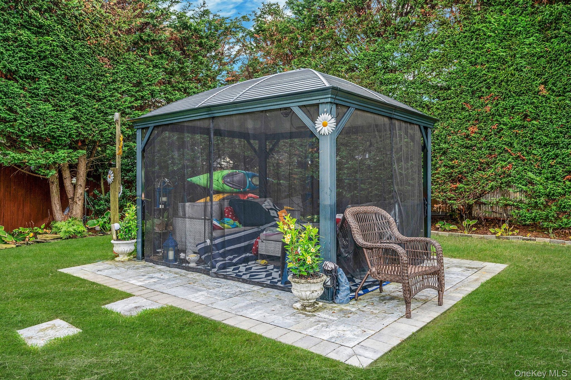 - Fenced backyard with a patio, a gazebo, a playground, and a fire pit