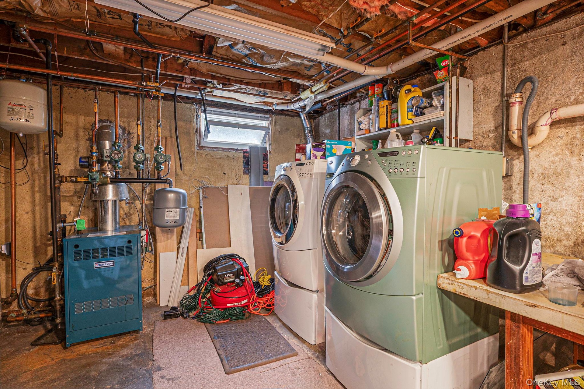 - Below grade area with stairs, freestanding refrigerator, and washer / clothes dryer