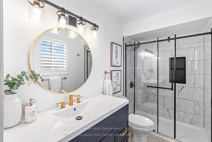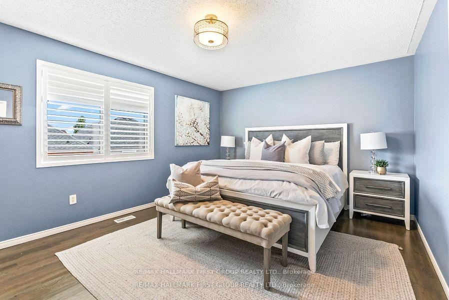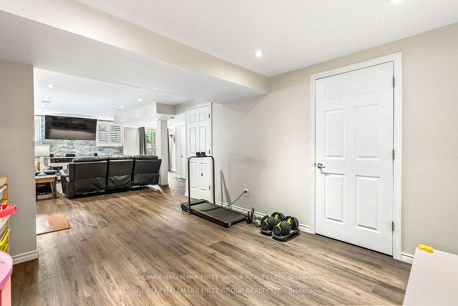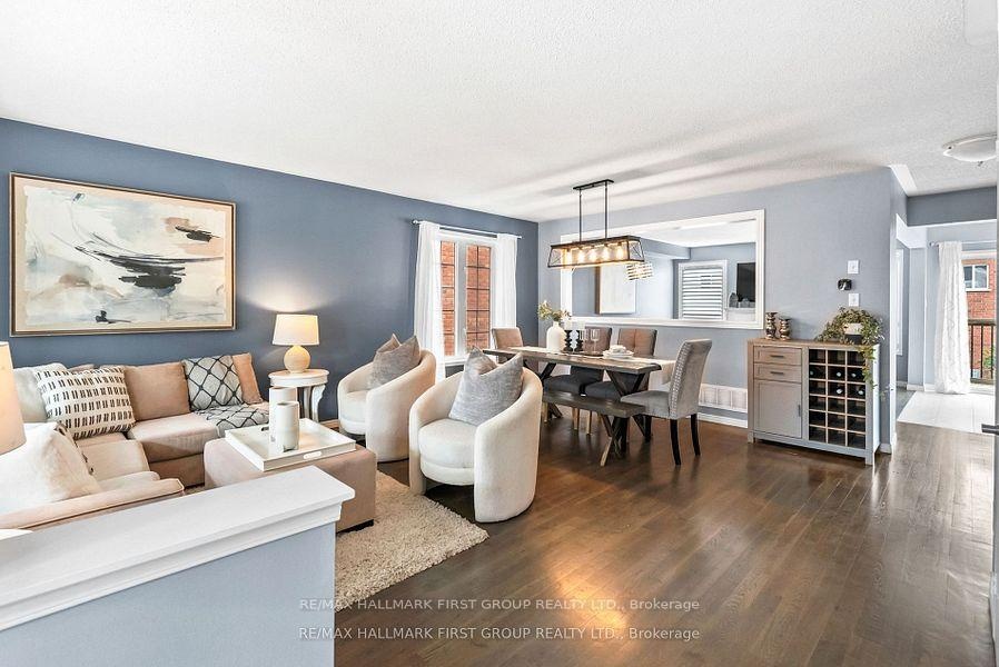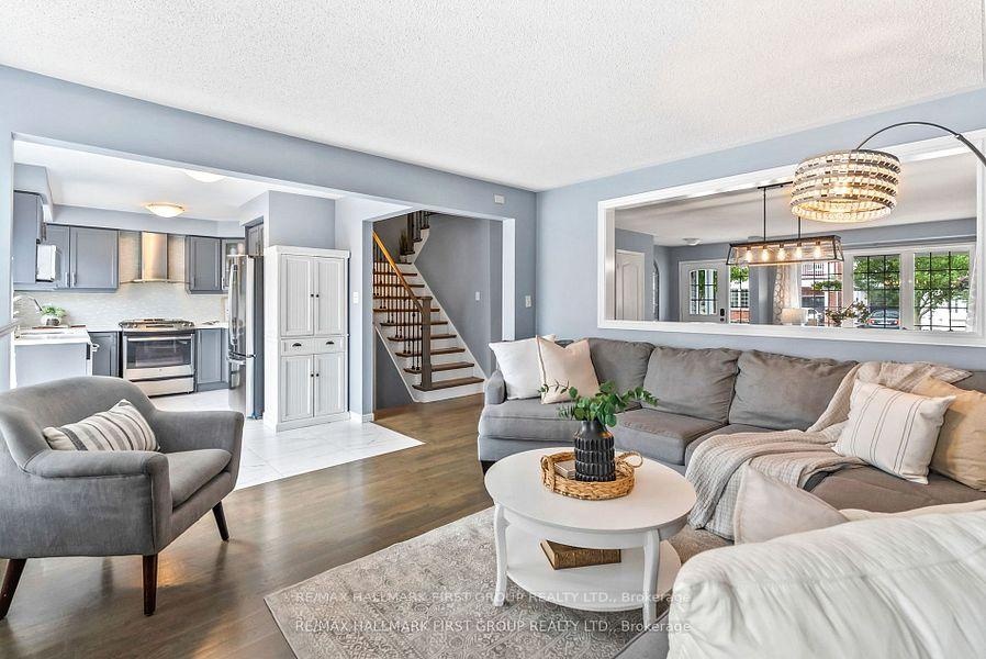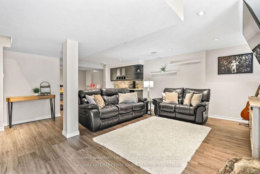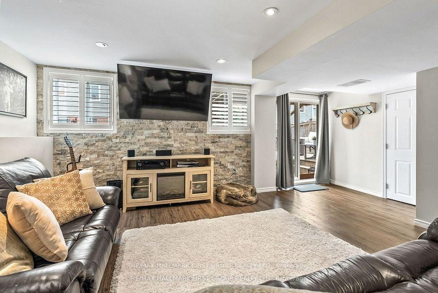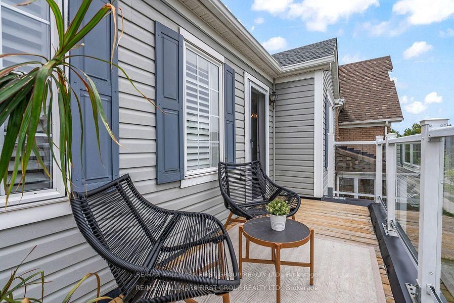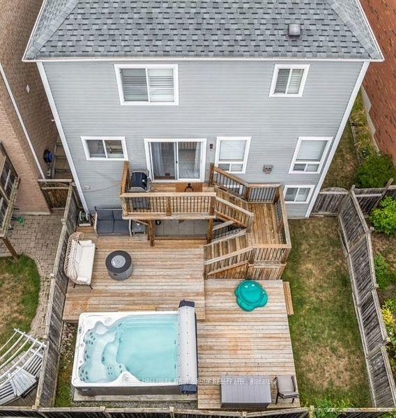 Welcome to this spacious 4-bedroom, 3-bath detached home offering 2,242 sq.ft. of finished living space including a walkout basement, set in a very quiet, family-oriented crescent in Ajax's desirable South Lakeside community. Just a few blocks from Lake Ontario, playgrounds, parks, and trails, this Cape Cod Style home blends modern upgrades with family functionality. Inside, the open-concept main floor offers ideal flow for entertaining or family life. The living, dining, and family rooms connect seamlessly, while the updated, south facing, kitchen opens to the family room with a cozy gas fireplace keeping everyone together during meals or movie nights. Engineered hardwood flooring, California shutters, and fresh paint create a warm, elegant finish throughout. Upstairs, all four bedrooms are on one level, including a spacious primary suite with a beautifully renovated ensuite bath. The finished walkout basement extends your living space with a wet bar, surround sound speakers, and direct access to the backyard making it an ideal space for family movie nights or summer bbq's. This move in ready home boasts three different outdoor living spaces; a covered front porch, an upper deck off 4th bedroom, and large lower deck in your back yard featuring your own swim spa. Recent updates include front deck posts, new gas furnace, water softener, kitchen tiles, bar fridge, extended lower deck, concrete pad & swim spa, ensuite bath, and fresh paint. Located in the sought-after Carruthers Creek Public School catchment, various churches & with easy access to Hwy 401 and GO Transit, this home is ready to welcome your family with comfort, a safe community, and convenience.