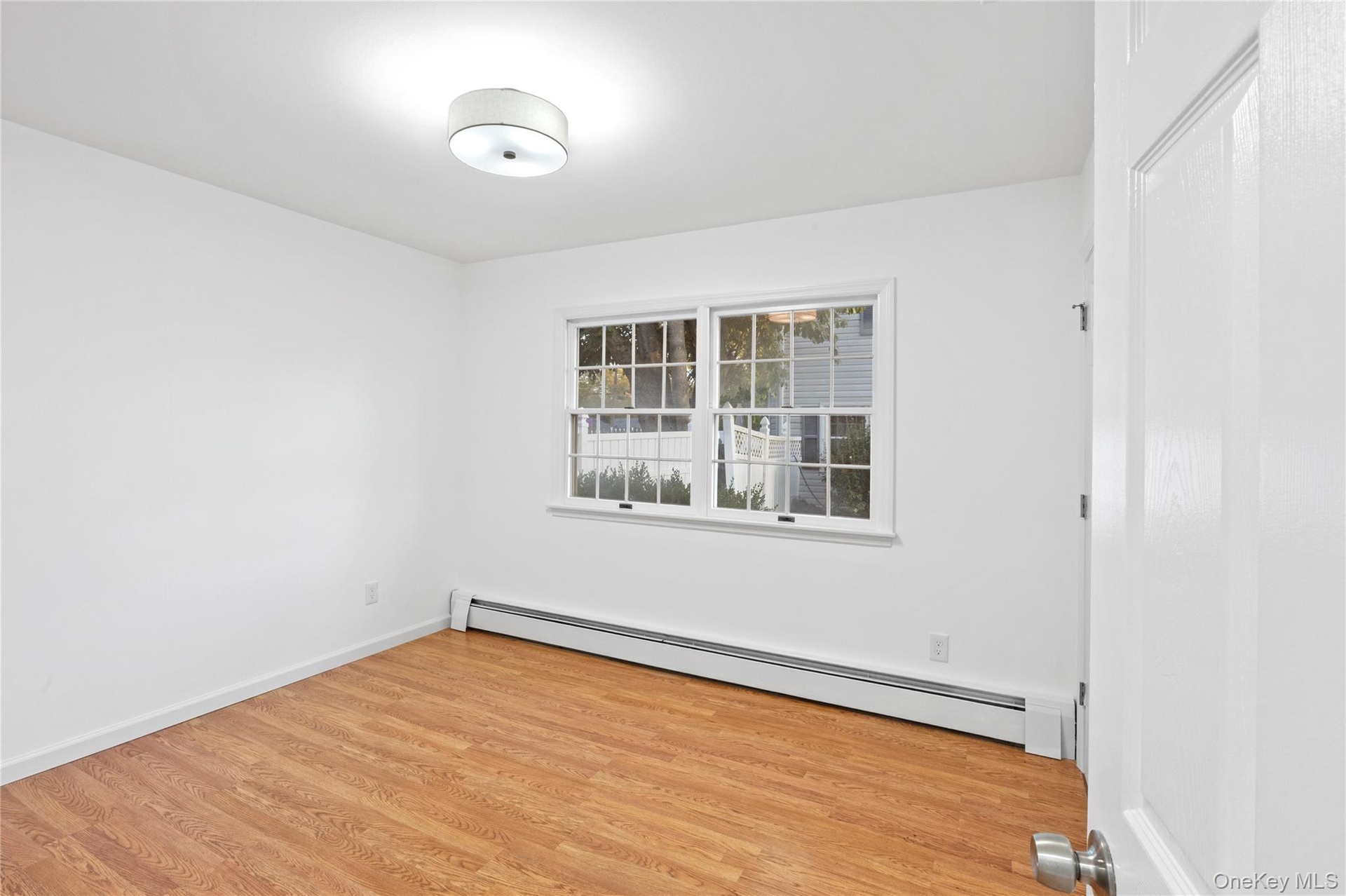 - Spare room featuring baseboard heating and light wood-type flooring