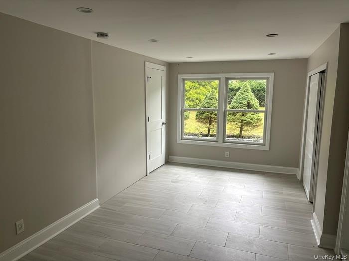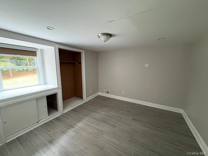 - Unfurnished bedroom featuring a closet and wood tiled floors