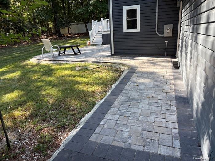 This beautifully updated home features a new roof, central air conditioning, siding, gutters, doors, and garage door, along with a brand new deck, paver patio, and driveway.